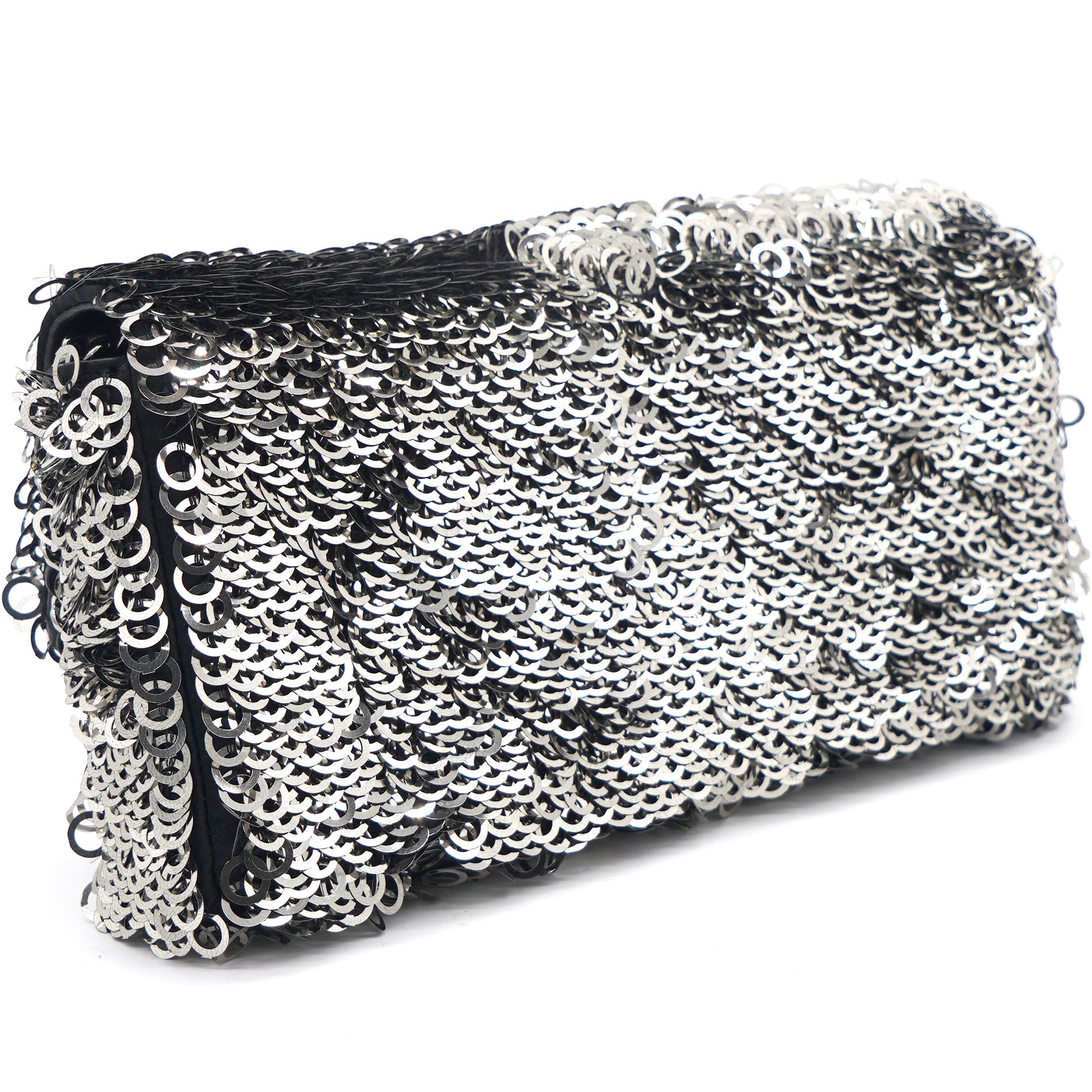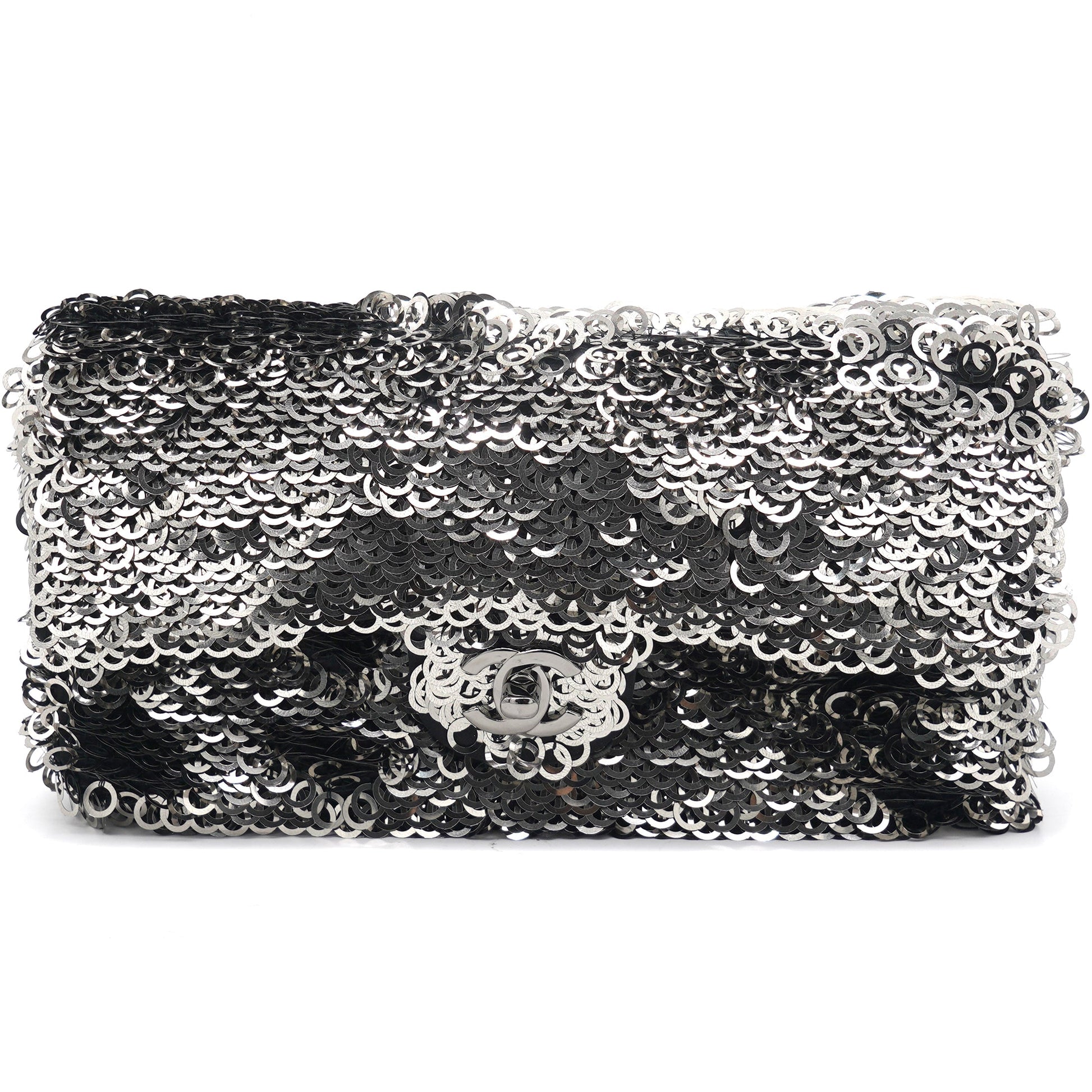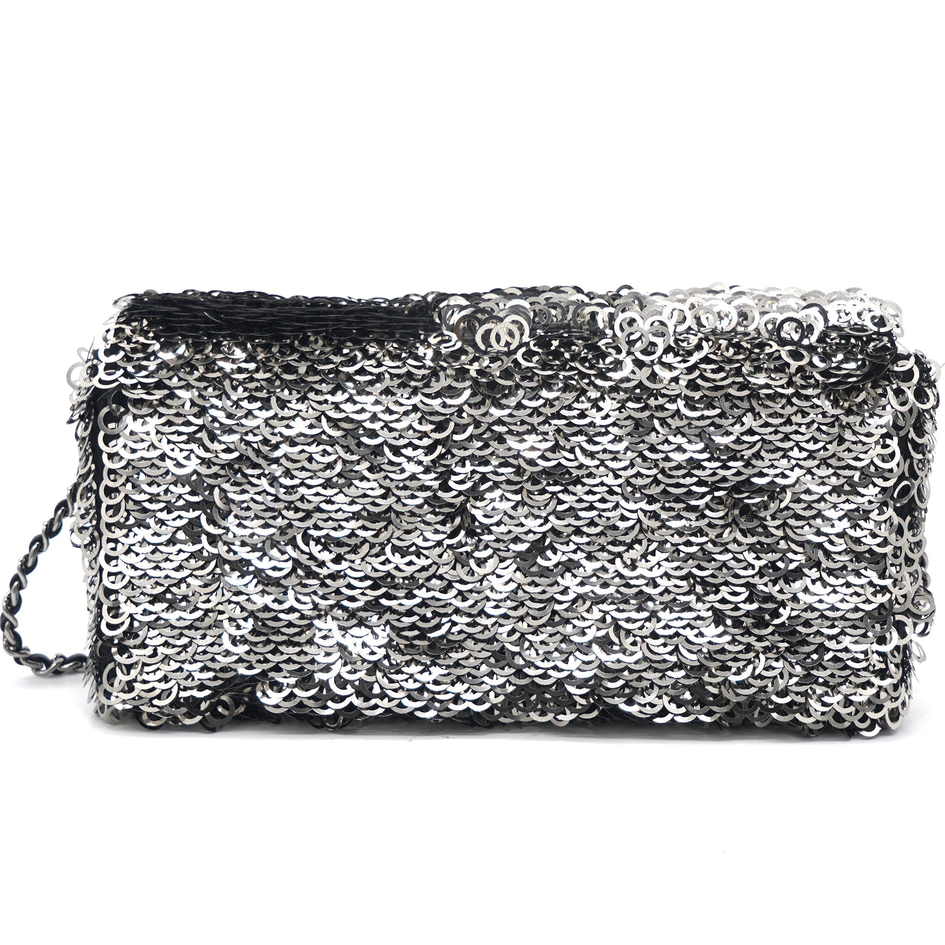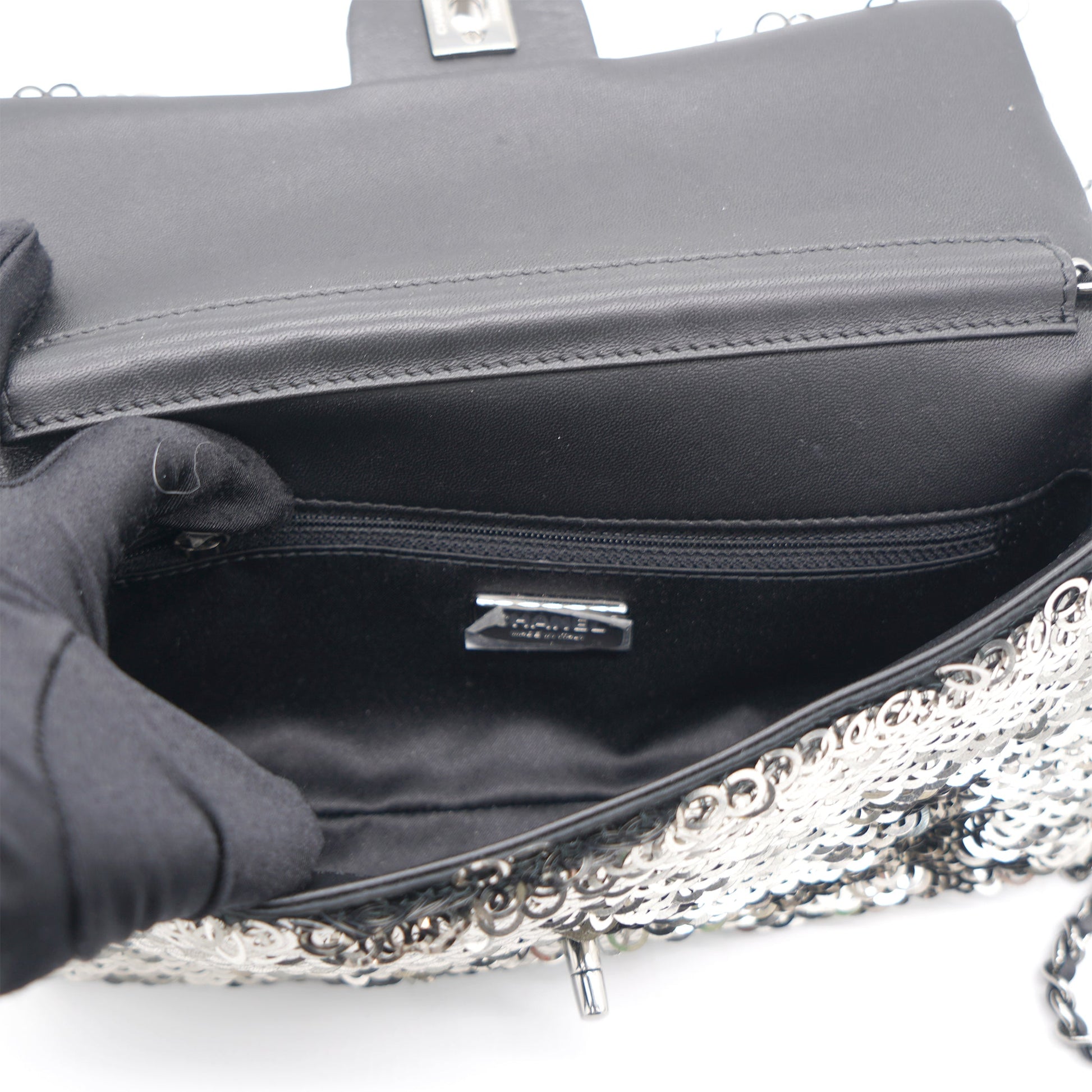 | This is an CHANEL Sequin Small Single Flap in Black and White. This chic shoulder bag is crafted of white and black circular Chanel logo sequins. The bag features black leather threaded silver chain-link shoulder straps with a silver Chanel CC turn lock on the front flap. This opens to a black satin fabric interior with a zipper pocket. This is a sensational shoulder bag for evening from Chanel! | Material: Leather; Sequins Lining: Leather Hardware: Silver color fininsh metal Accessories:Box; Dust Bag; Receipt; Card Serial Number: 28977135 Production Year: 2019 | ![]() |