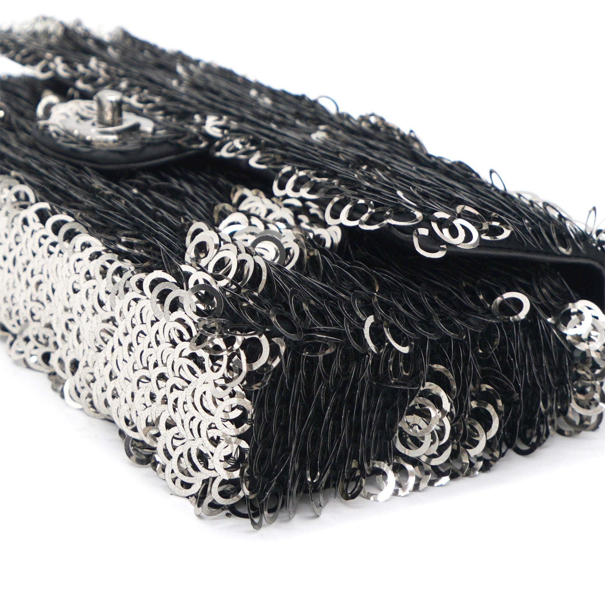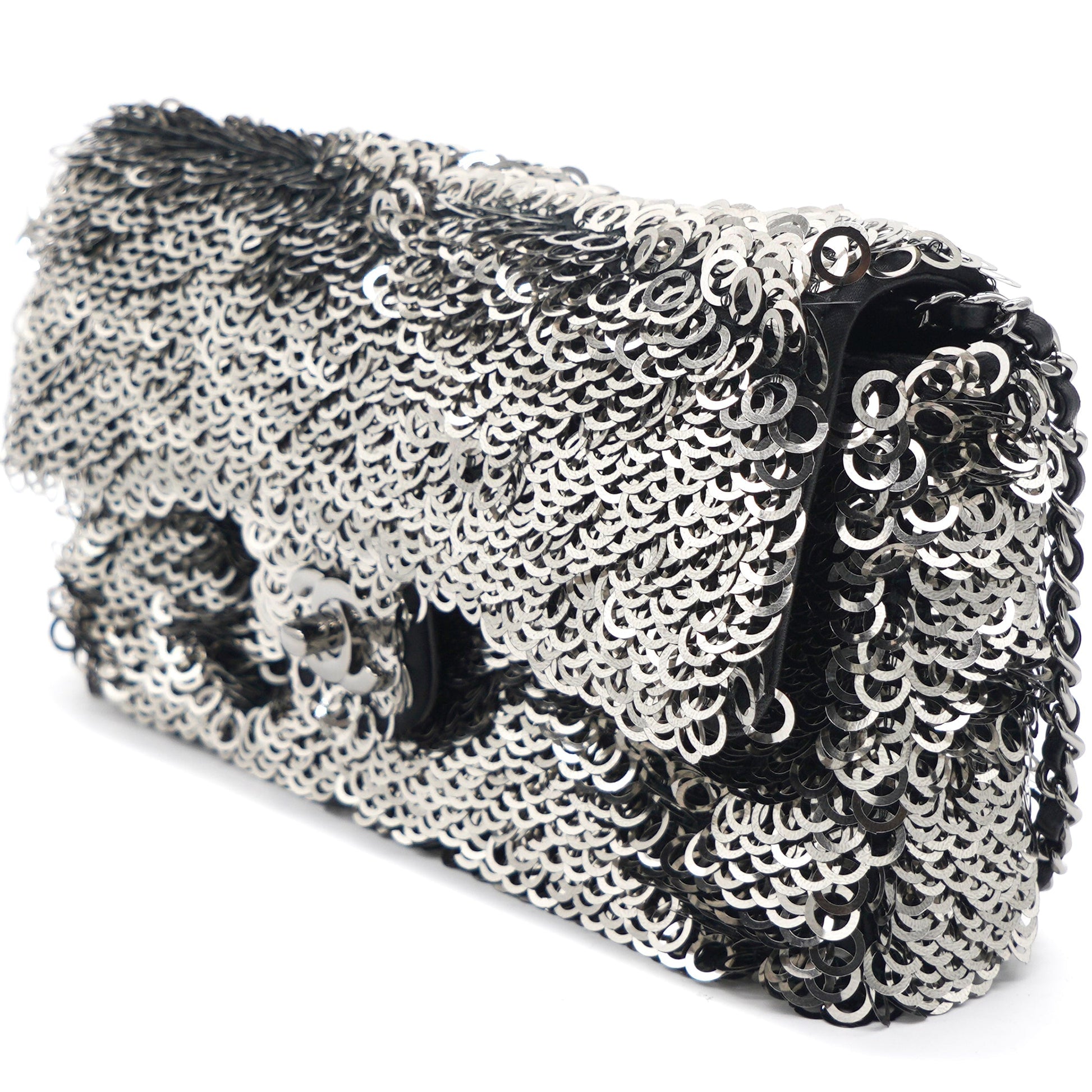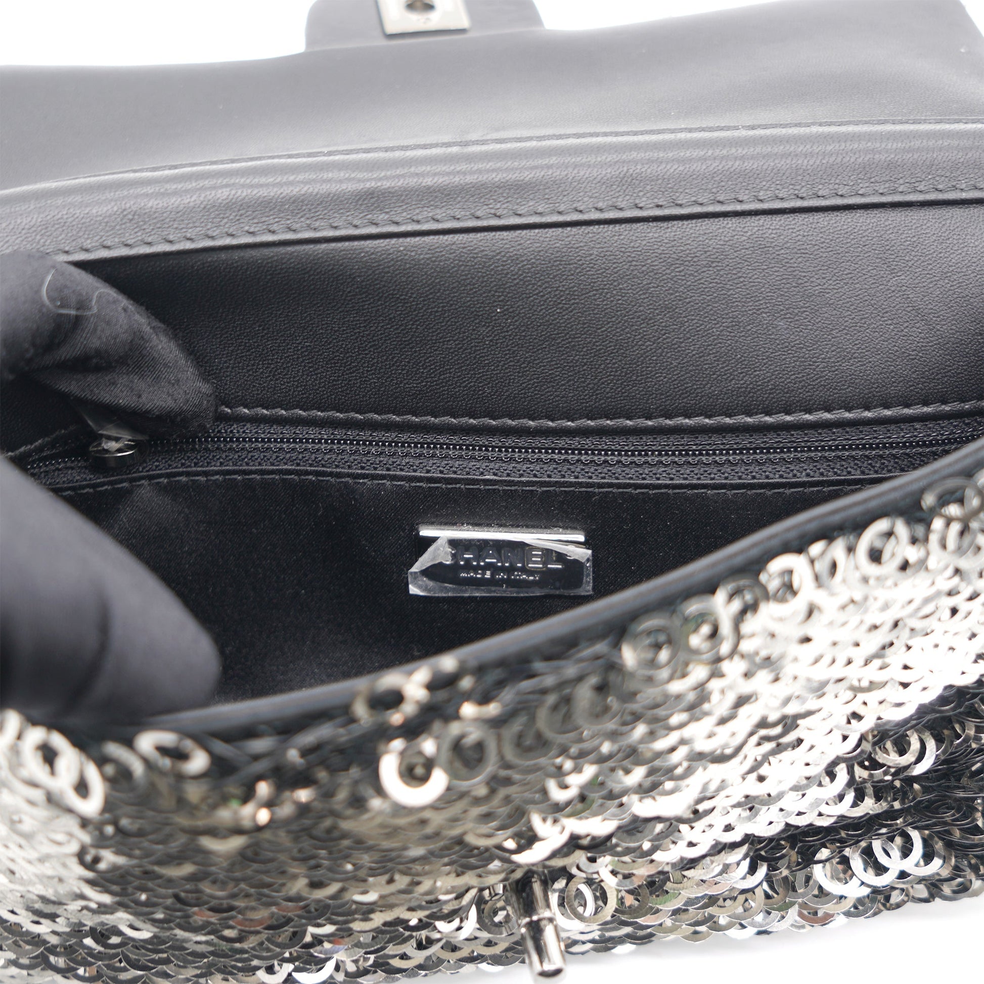 | This is an CHANEL Sequin Small Single Flap in Black and White. This chic shoulder bag is crafted of white and black circular Chanel logo sequins. The bag features black leather threaded silver chain-link shoulder straps with a silver Chanel CC turn lock on the front flap. This opens to a black satin fabric interior with a zipper pocket. This is a sensational shoulder bag for evening from Chanel! | Material: Leather; Sequins Lining: Leather Hardware: Silver color fininsh metal Accessories:Box; Dust Bag; Receipt; Card Serial Number: 28977135 Production Year: 2019 | ![]() |
