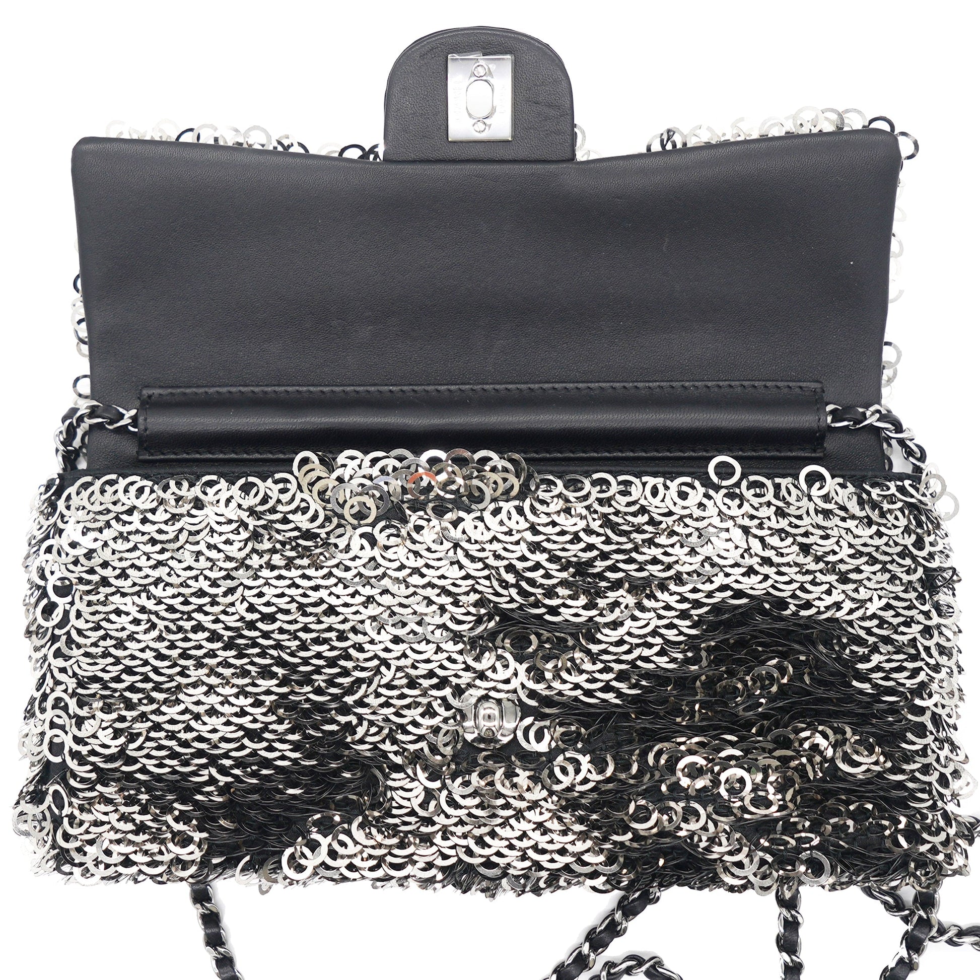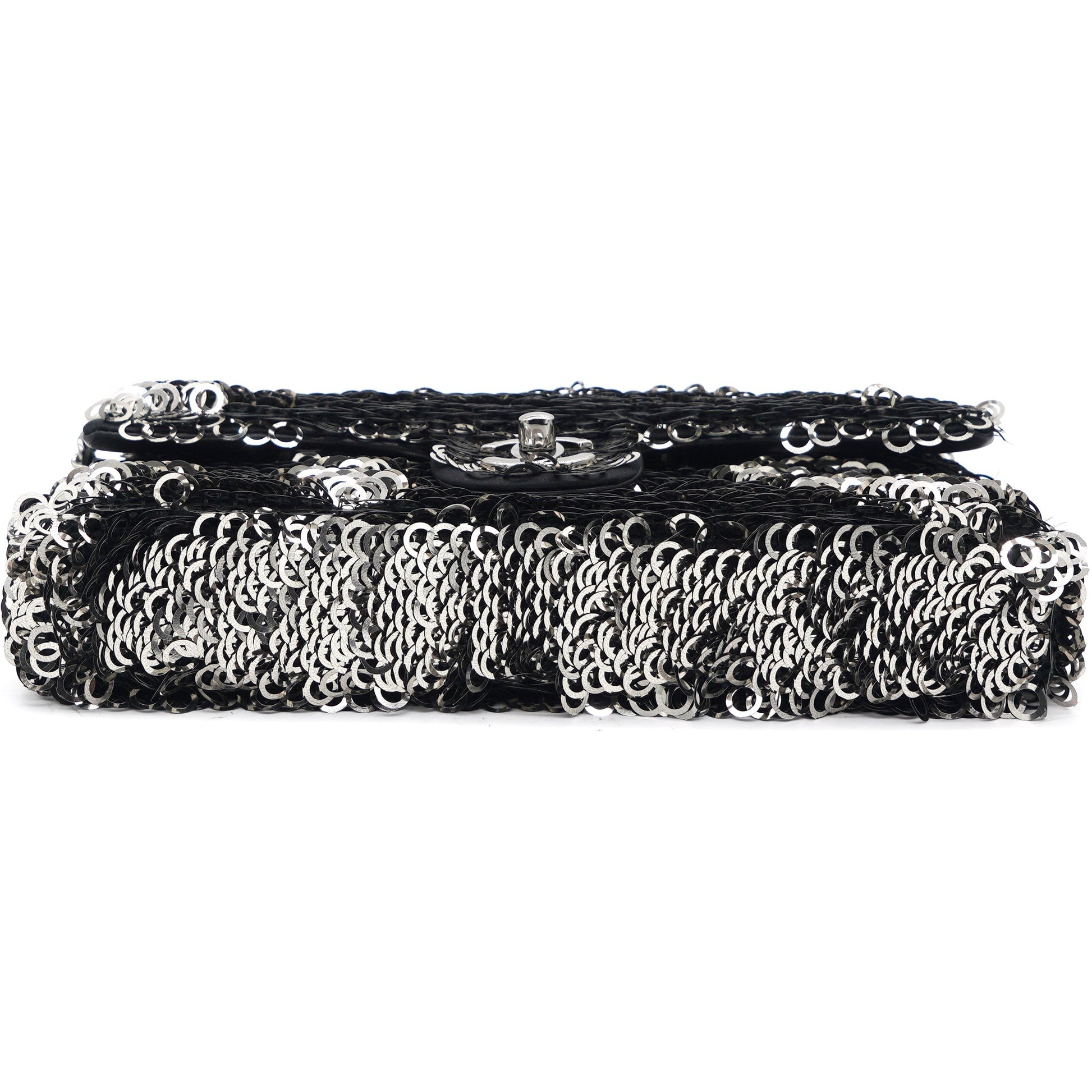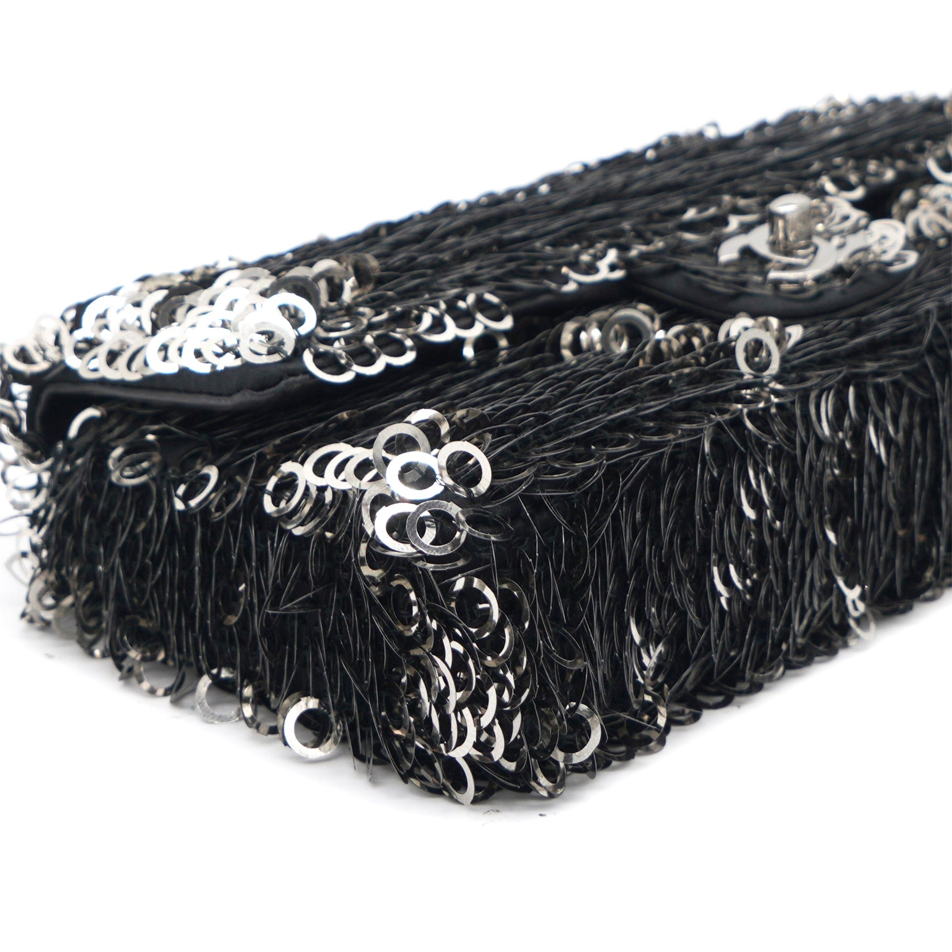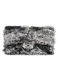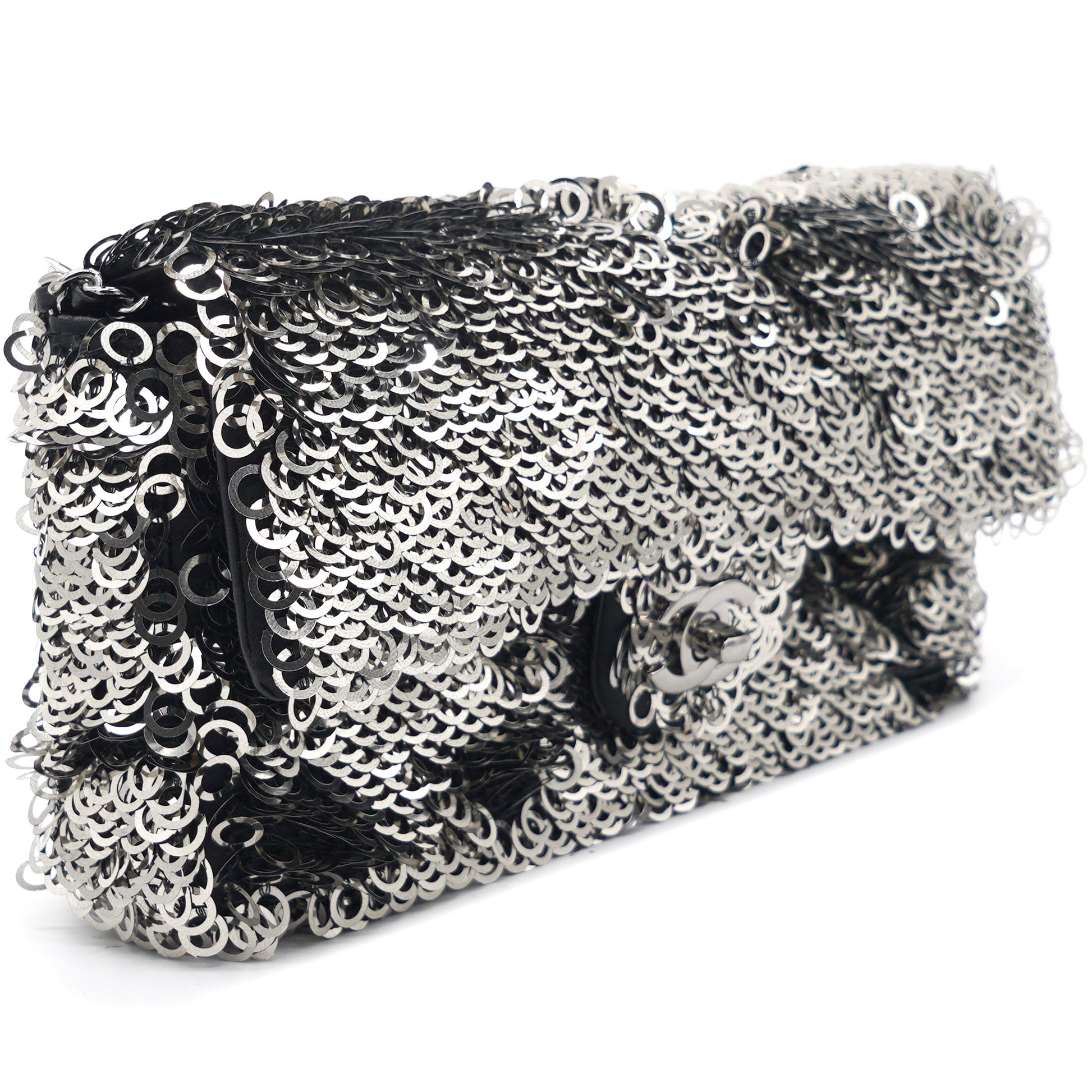 | This is an CHANEL Sequin Small Single Flap in Black and White. This chic shoulder bag is crafted of white and black circular Chanel logo sequins. The bag features black leather threaded silver chain-link shoulder straps with a silver Chanel CC turn lock on the front flap. This opens to a black satin fabric interior with a zipper pocket. This is a sensational shoulder bag for evening from Chanel! | Material: Leather; Sequins Lining: Leather Hardware: Silver color fininsh metal Accessories:Box; Dust Bag; Receipt; Card Serial Number: 28977135 Production Year: 2019 | ![]() |
