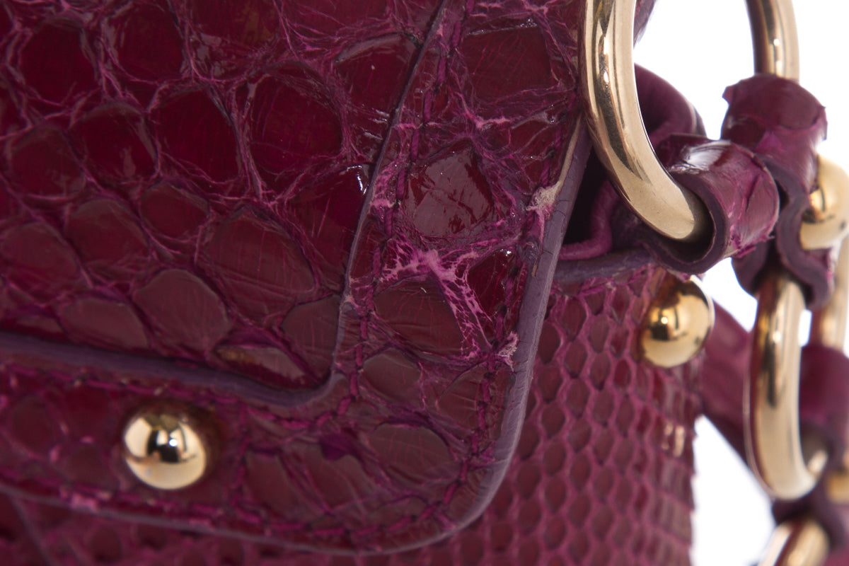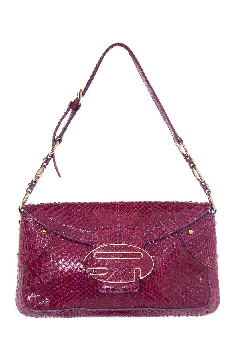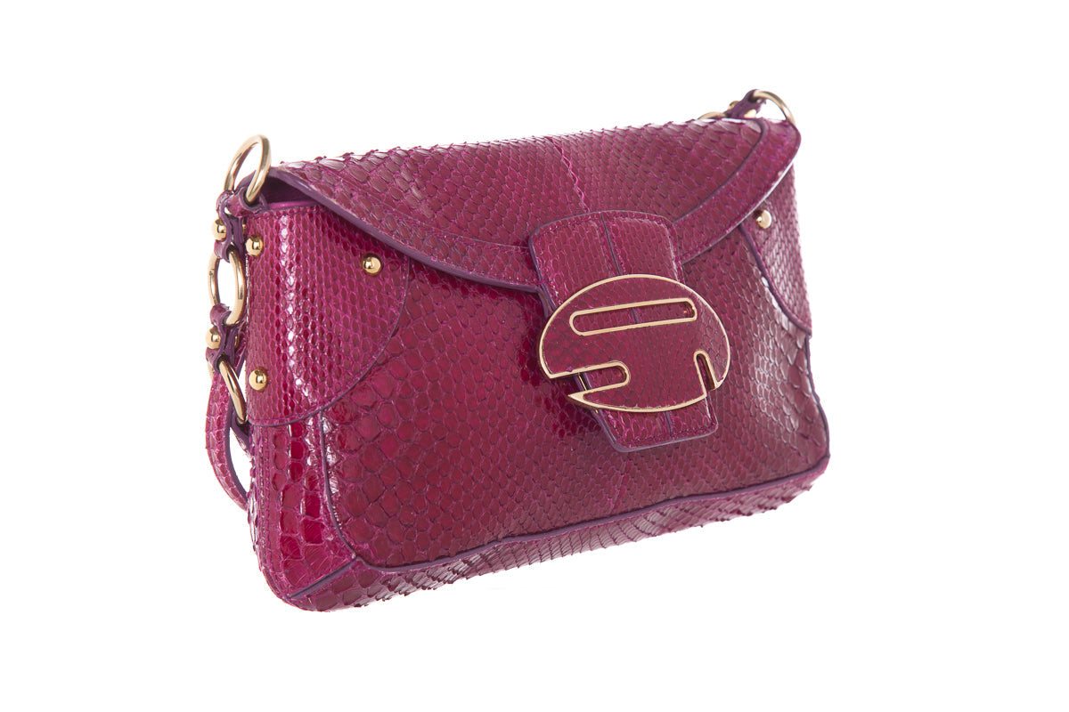 Sergio Rossi Magenta Lizard Skin Shoulder Bag