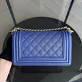 *Series 30* Caviar Boy Small Quilted Grained Calfskin Leboy Dark Blue Golden Hardware Series 30