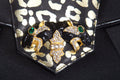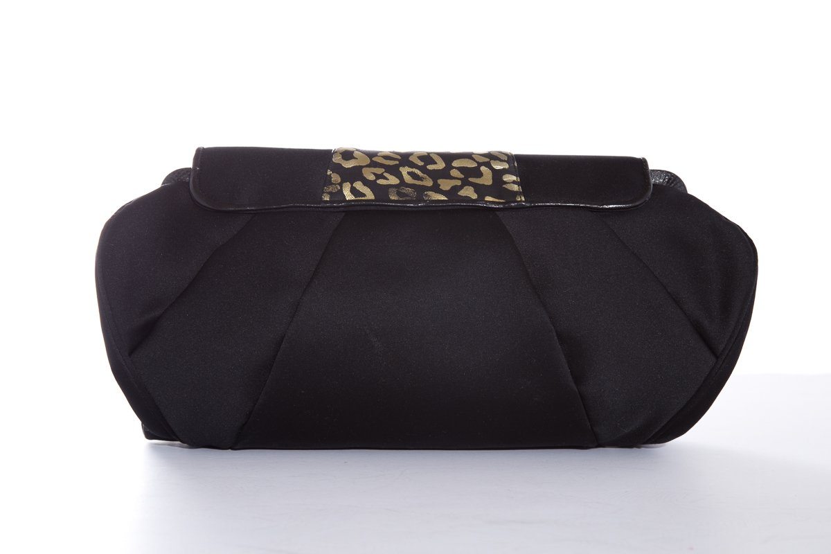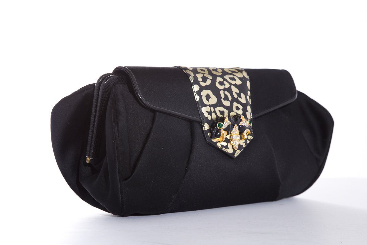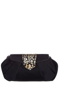 Sharif Black Satin Leopard Rhinestone Evening Clutch