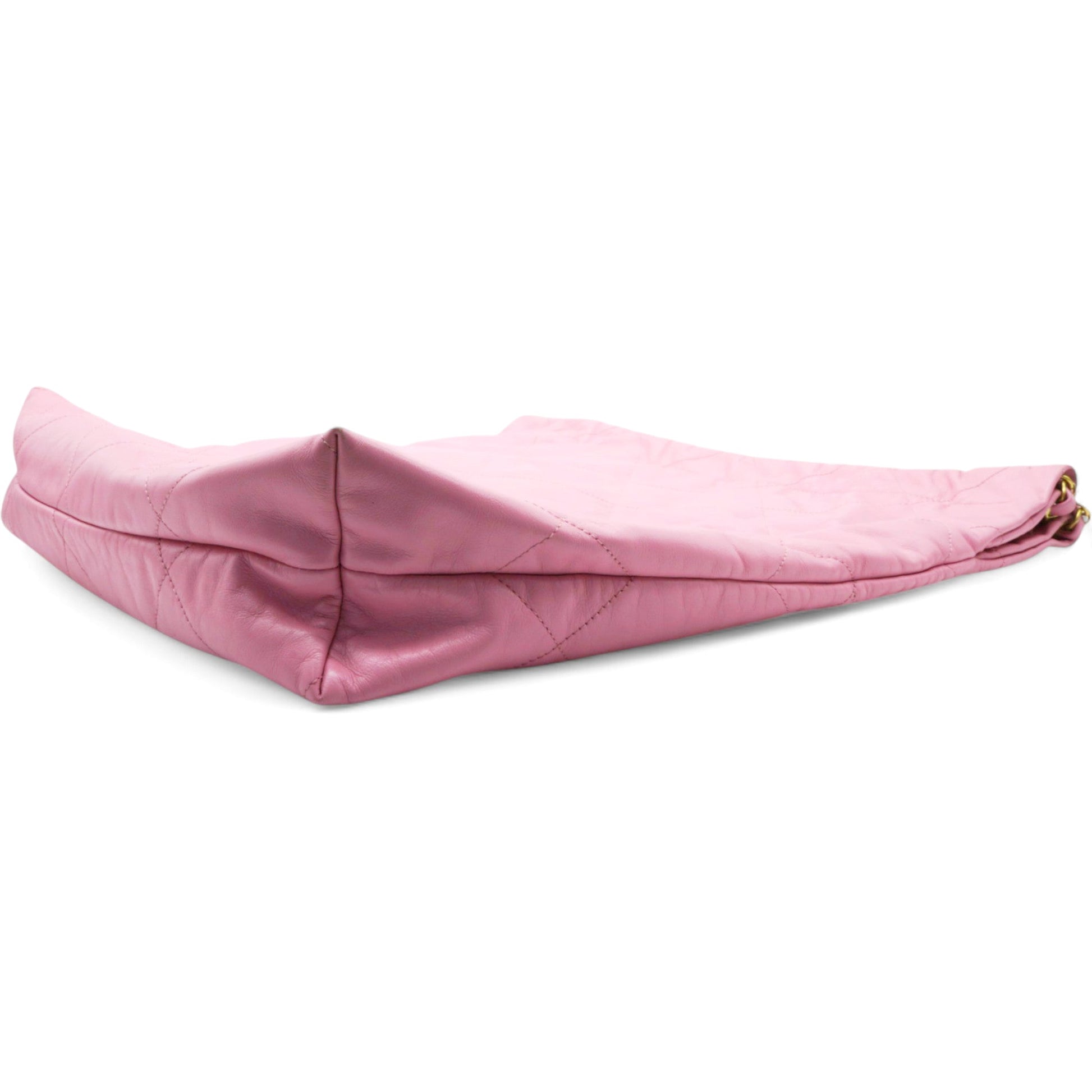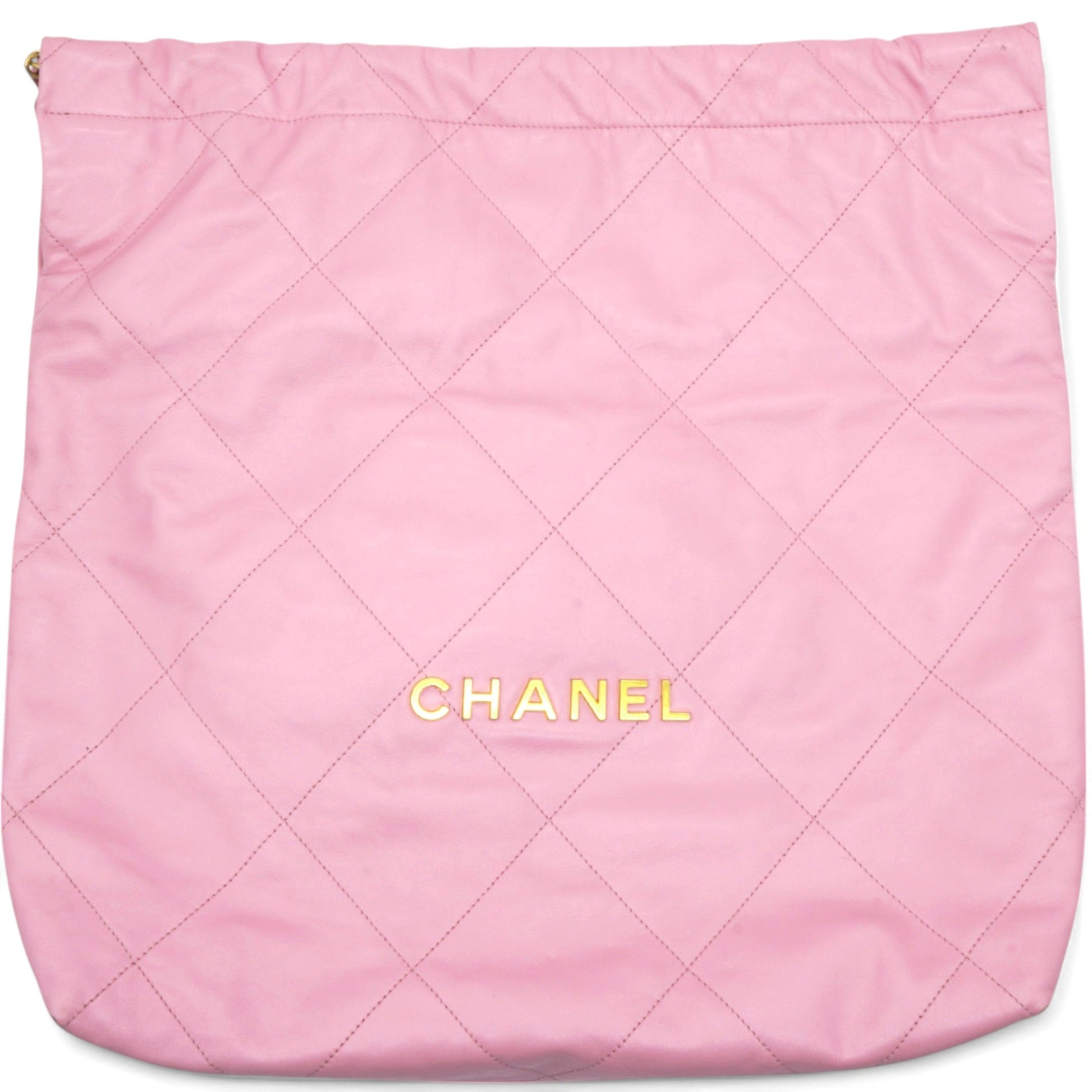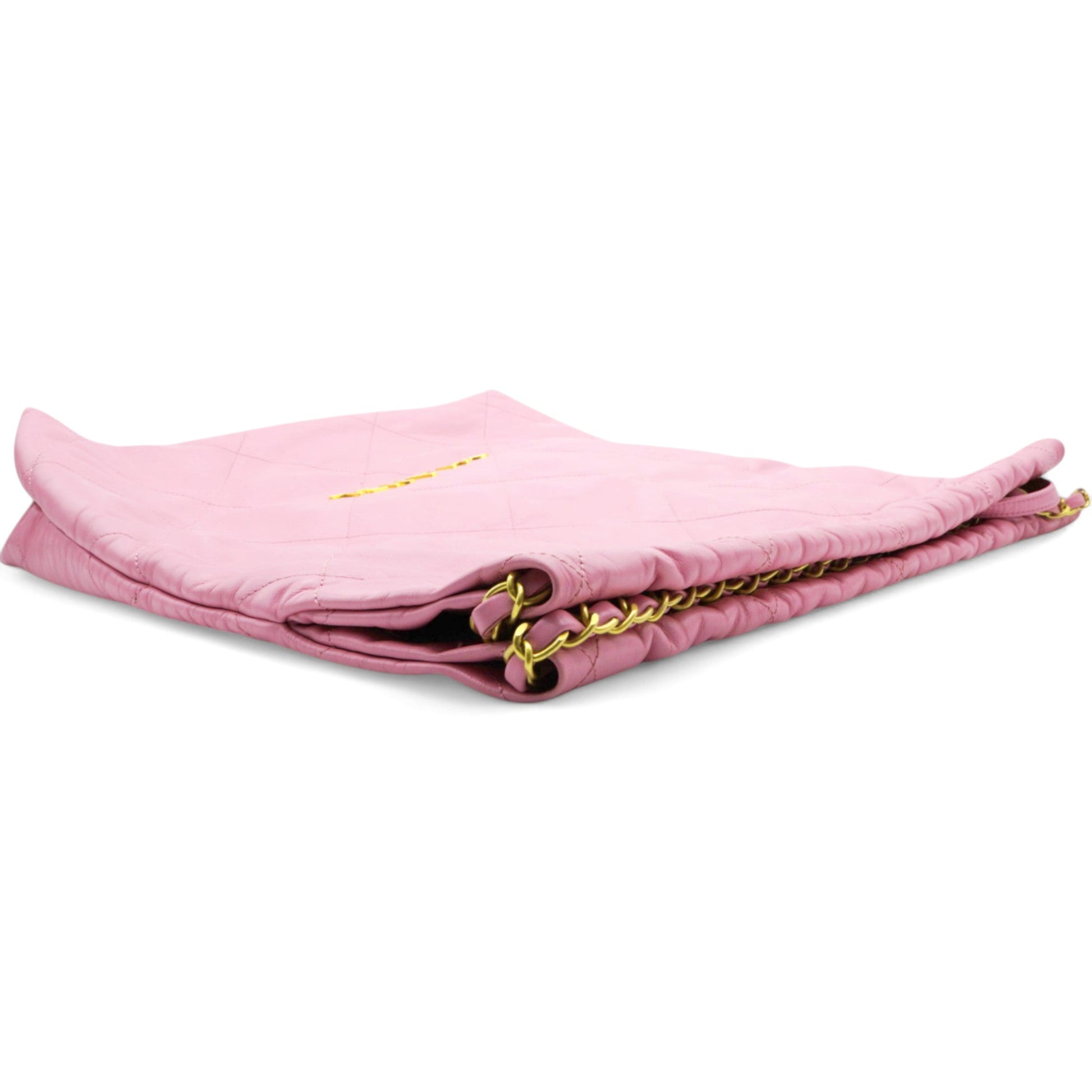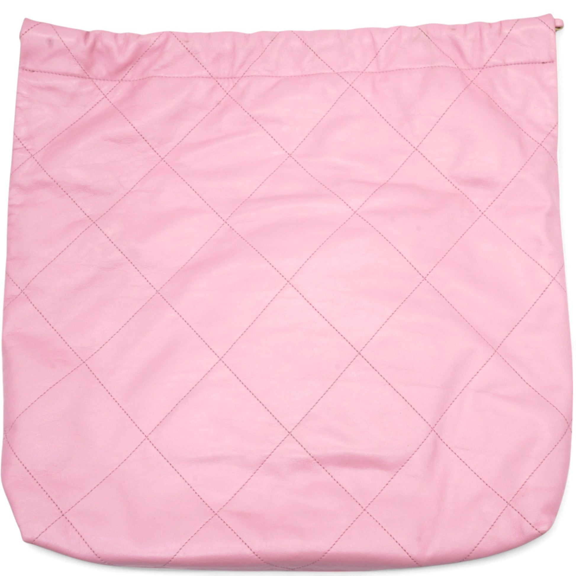 Chanel Shiny Quilted Chanel 22 Drawstring Bag Pink Large