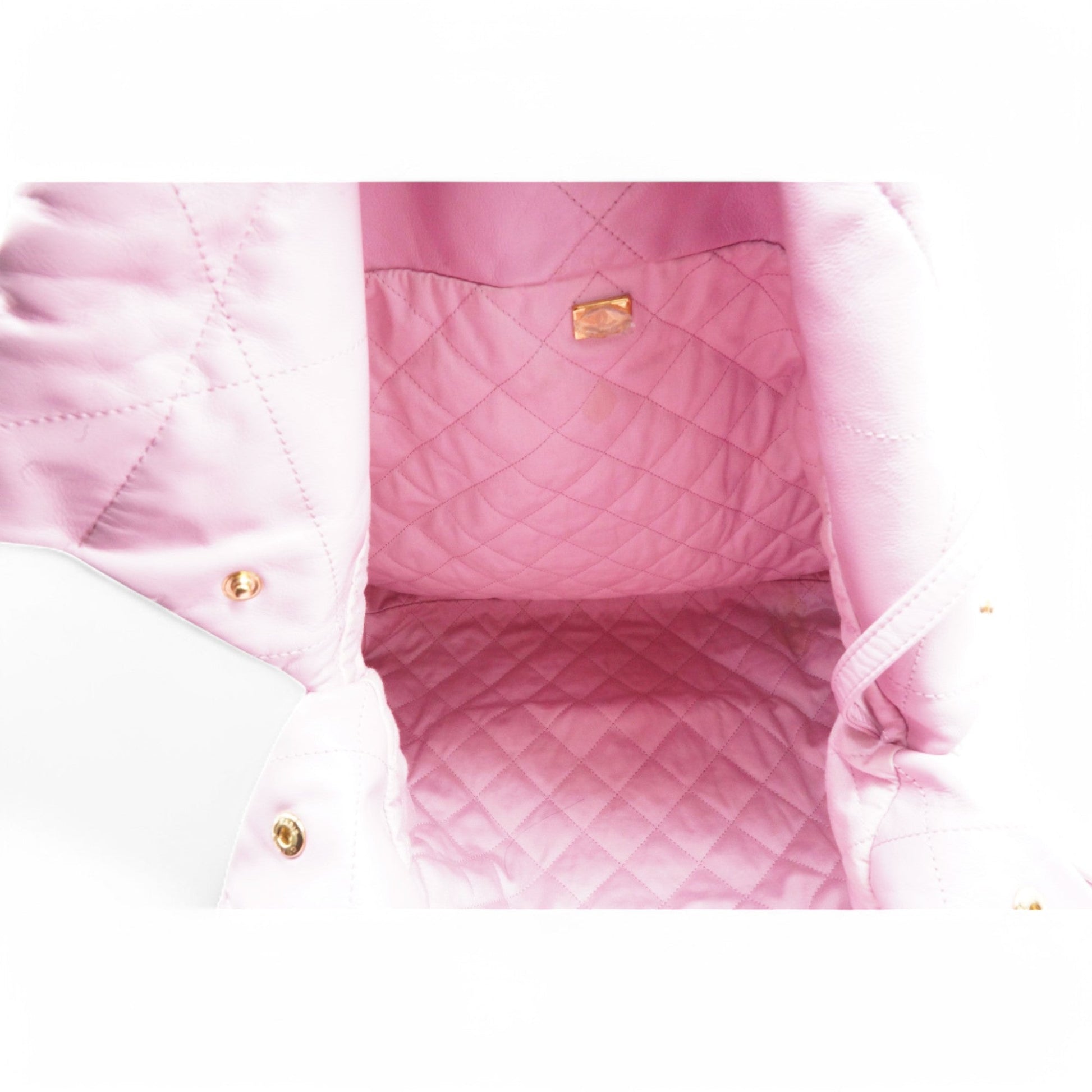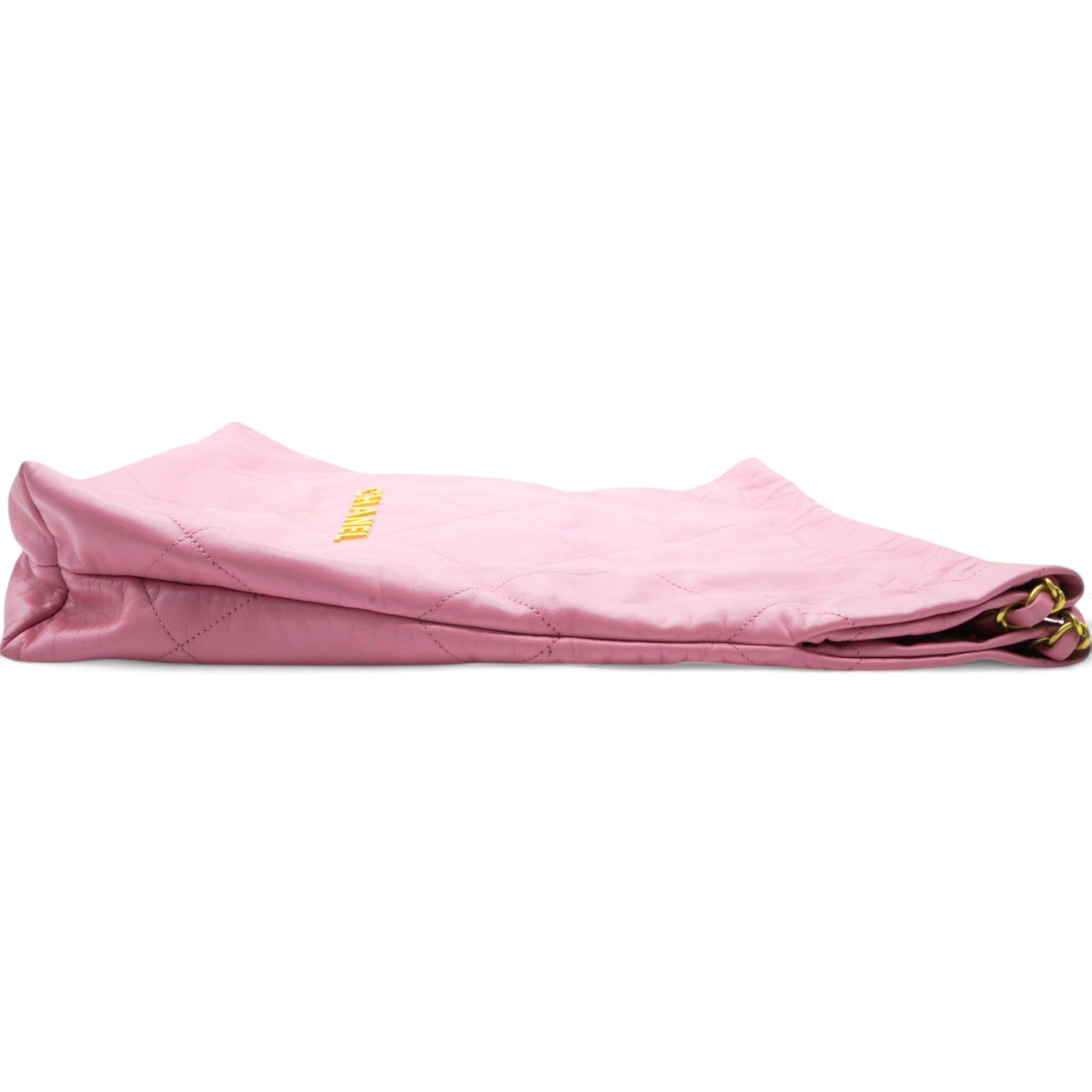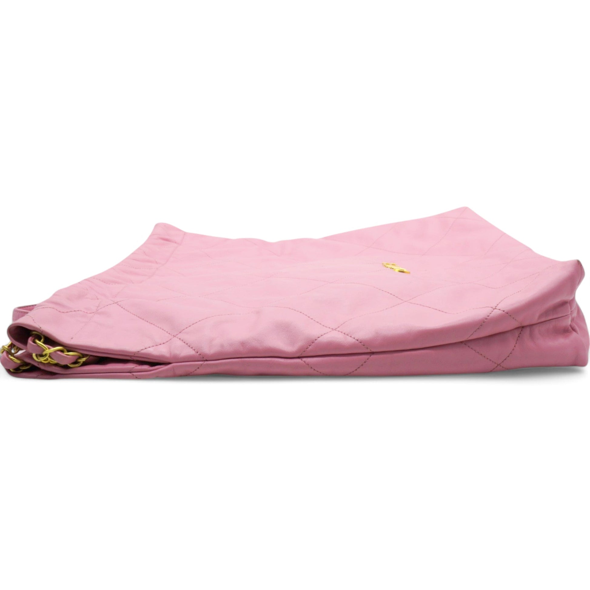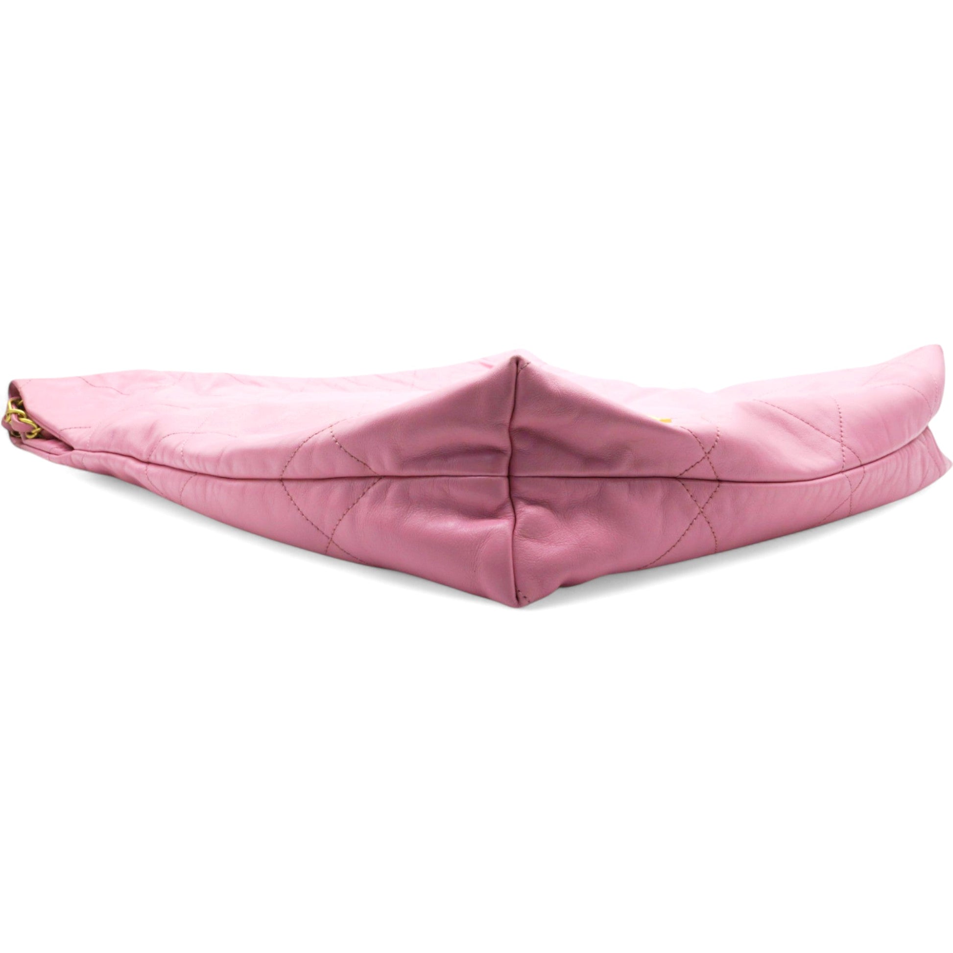 Chanel Shiny Quilted Chanel 22 Drawstring Bag Pink Large