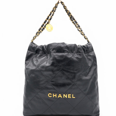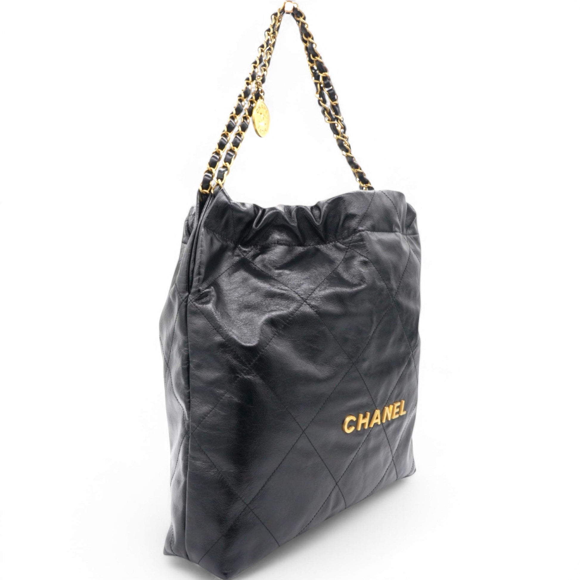 Chanel Shiny Quilted Medium Chanel 22 Black