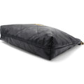 | The bag features leather threaded gold chain shoulder straps and a gold Chanel logo on the front. The open top with magnetic closure leads to a black fabric interior with a zipper pocket and a removable pouch. | Material: Leather Lining: Textile Hardware: Gold color finish metal Accessories: Serial Number: X9C7L138 | ![]() |