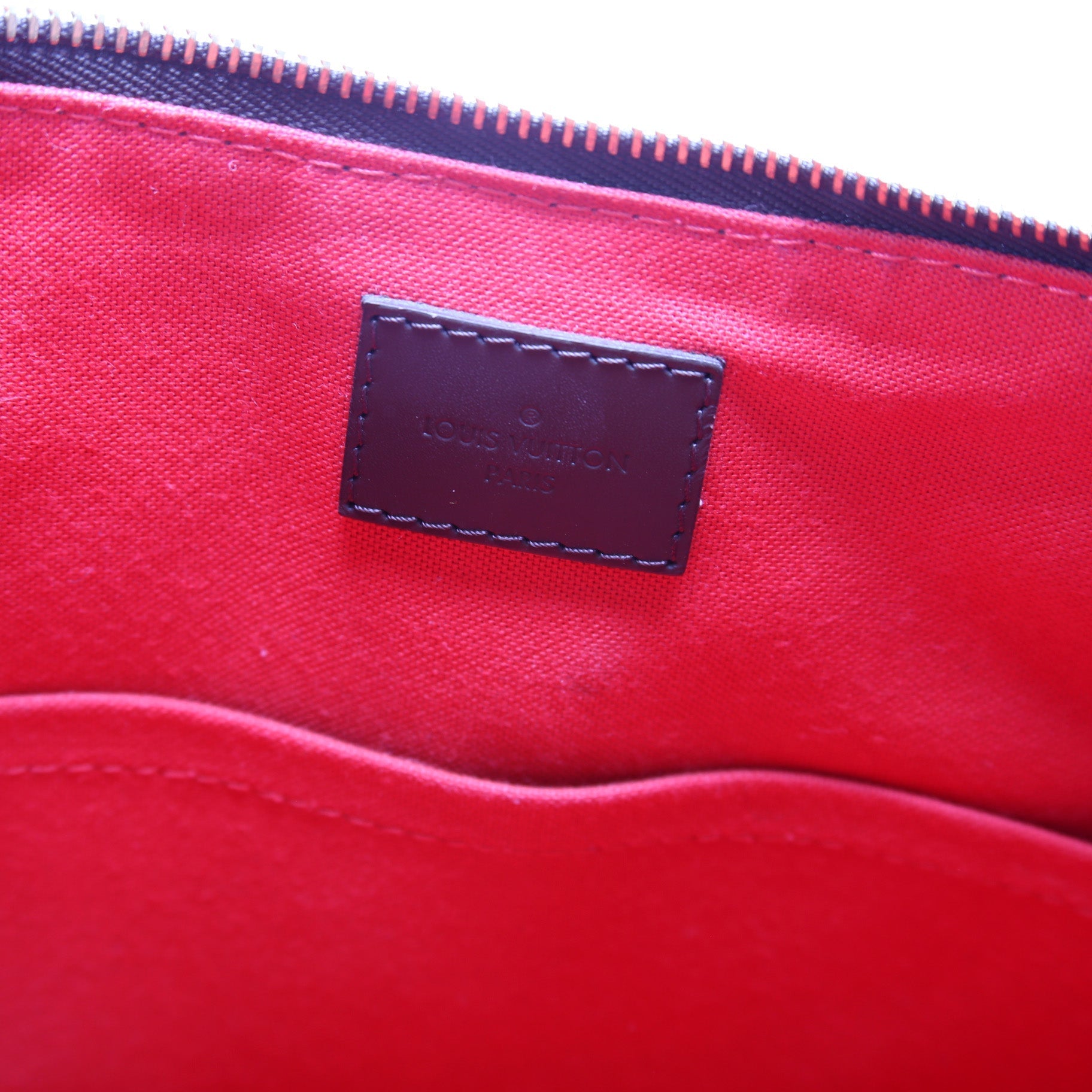 This Louis Vuitton Siena MMis eye catching bag. The exterior is in the classic Louis Vuitton Damier Ebene coated canvas.