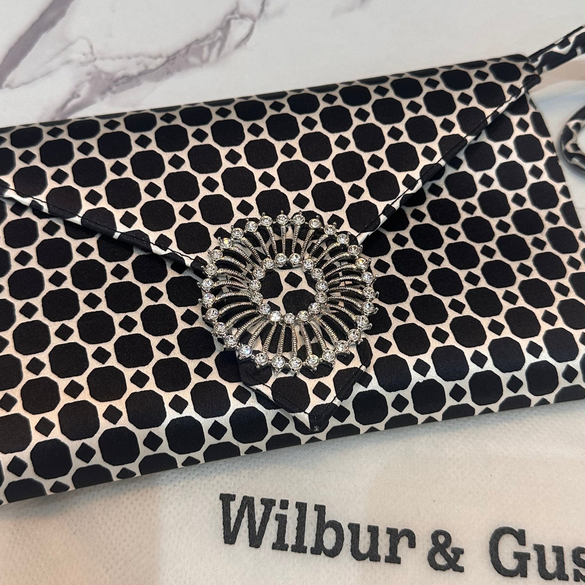 | Silk Wilbur Gussie Clutch This lovely silk clutch comes with the shiny gem set brooch on the front which makes it sparkle in any lighting. The perfect gift. This item is so may show signs of wear. All items undergo Elite HNW quality checks. |