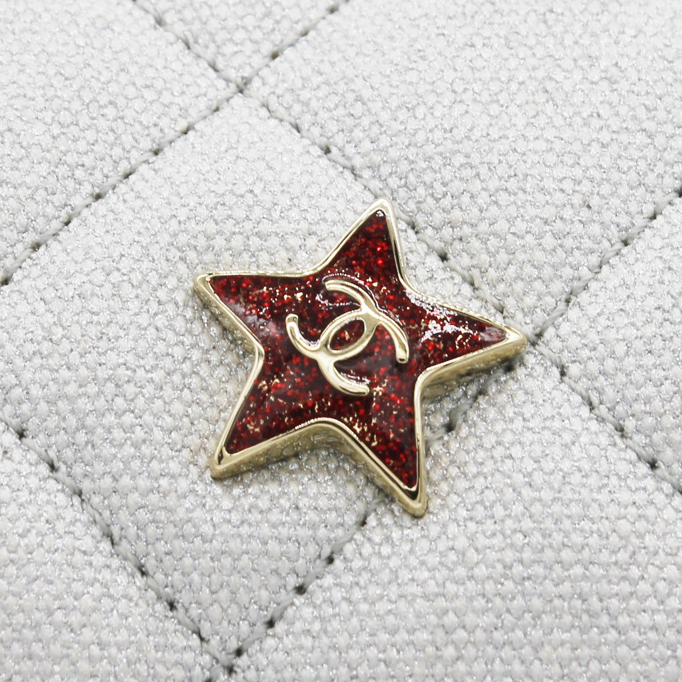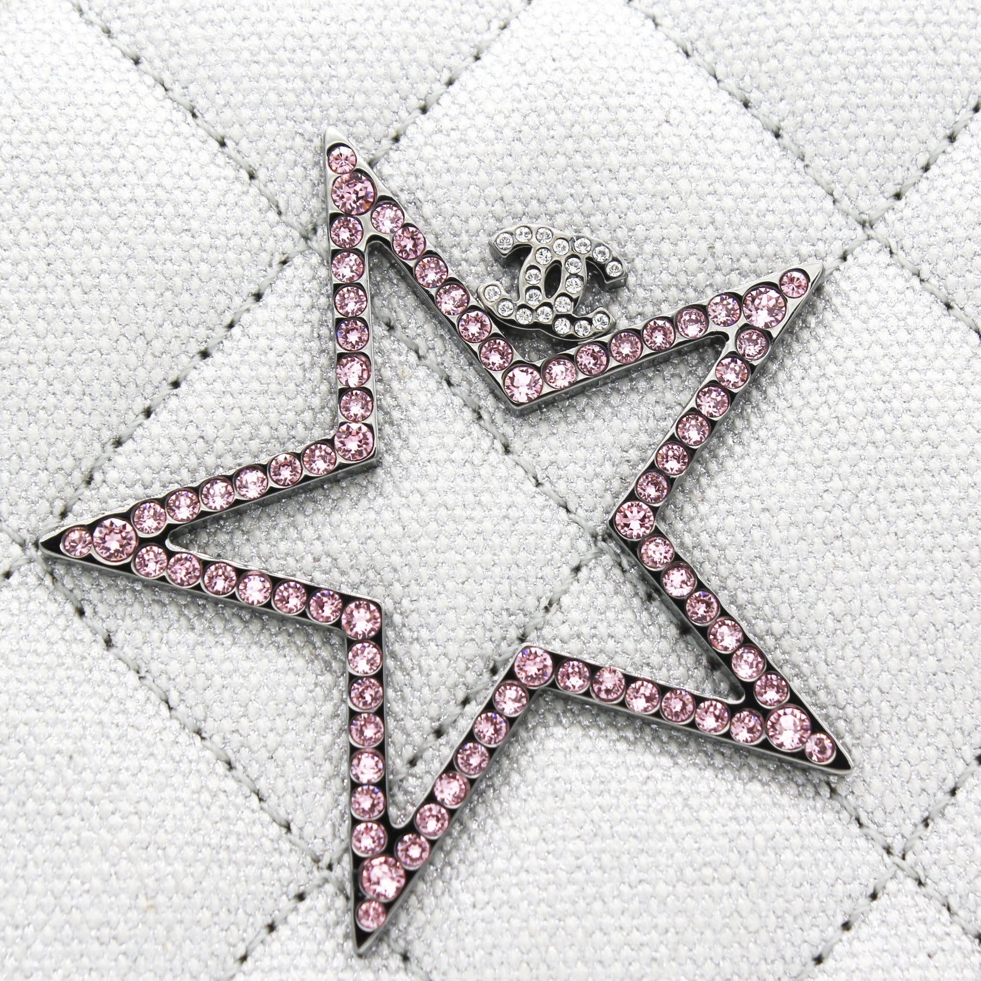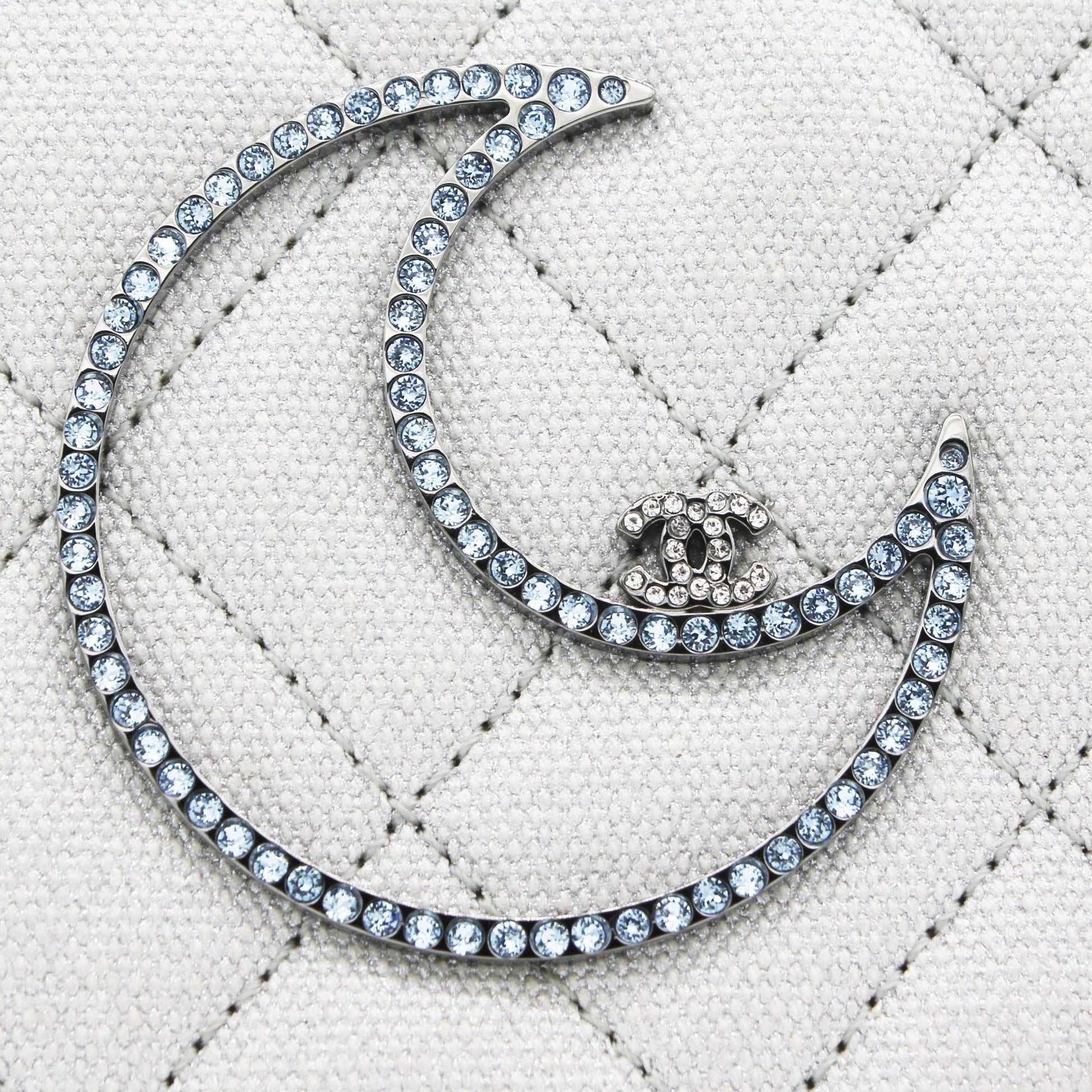 | Go glam with this gorgeous Limited Edition Chanel 2.55 Reissue Quilted Canvas 227 Space Charms Flap Bag. It is made of durable canvas and features a mademoiselle turnlock closure and double flap interior. The versatile chain strap can be worn on the shoulder or lengthened to wear with a longer drop. This particular Reissue bag has multicolor crystal Space Charms throughout for an elegant and timeless piece to add to any collection. | Exterior Material: ?Silver canvas exterior with multicolour crystal space charms embellishments and silver chain shoulder strap. Interior Material: Silver leather lining with one main compartment and slip pockets. Accessories: Dust Bag Serial Number: 25026935 Bought Year: 2018 | ![]() |