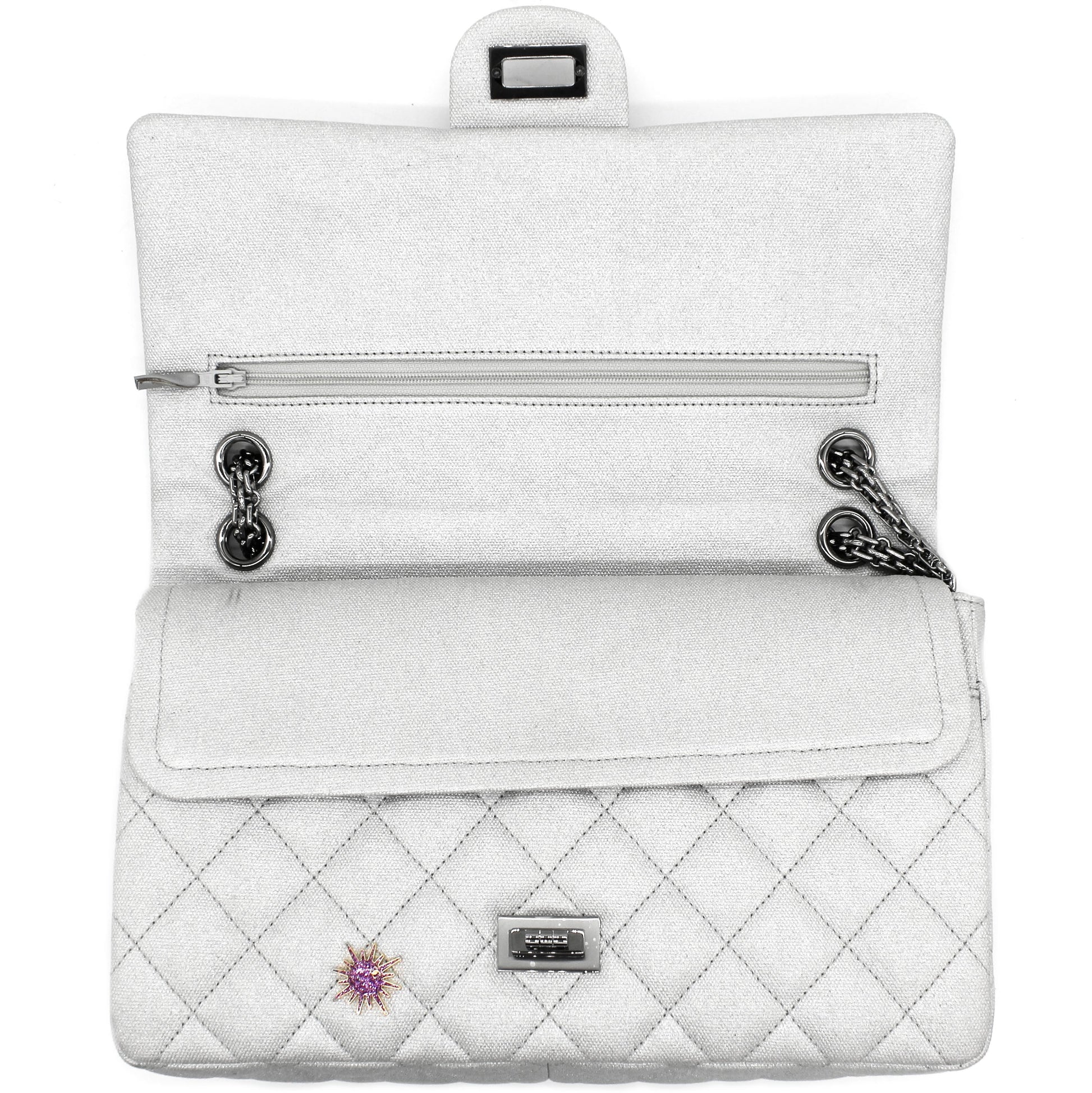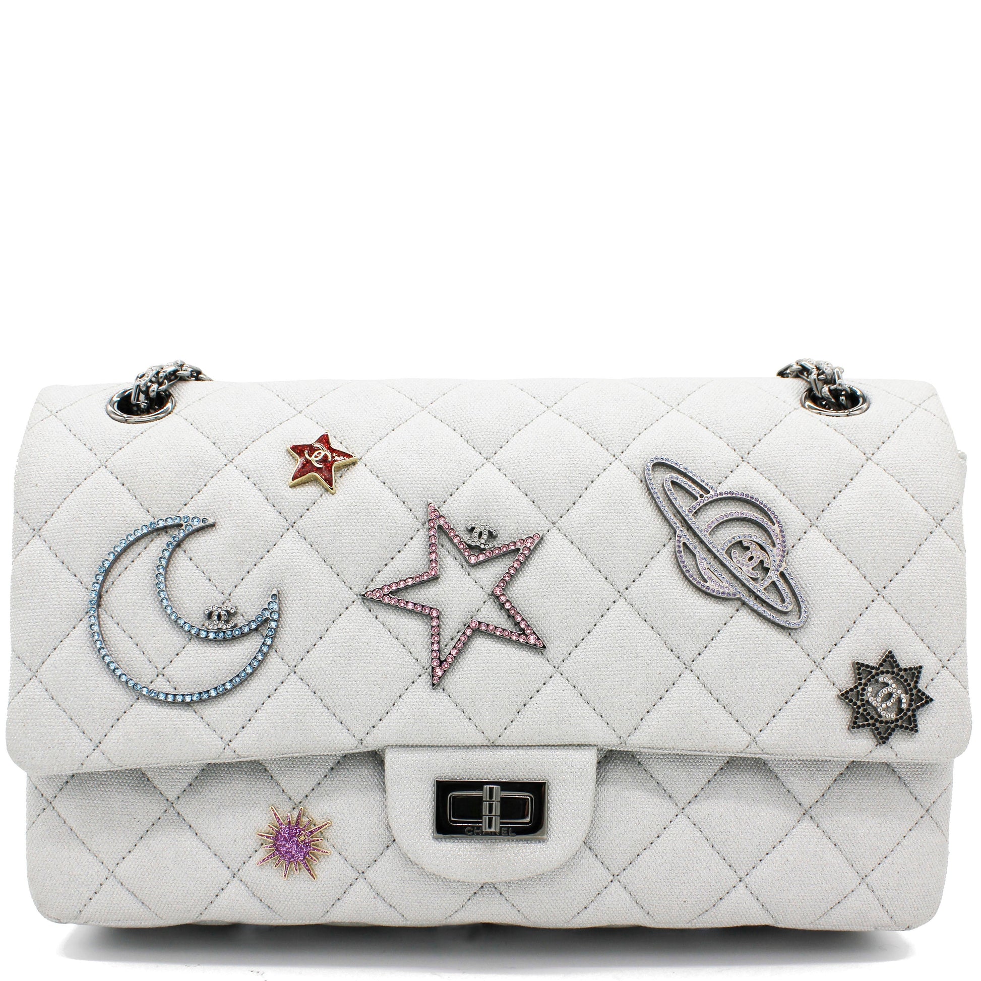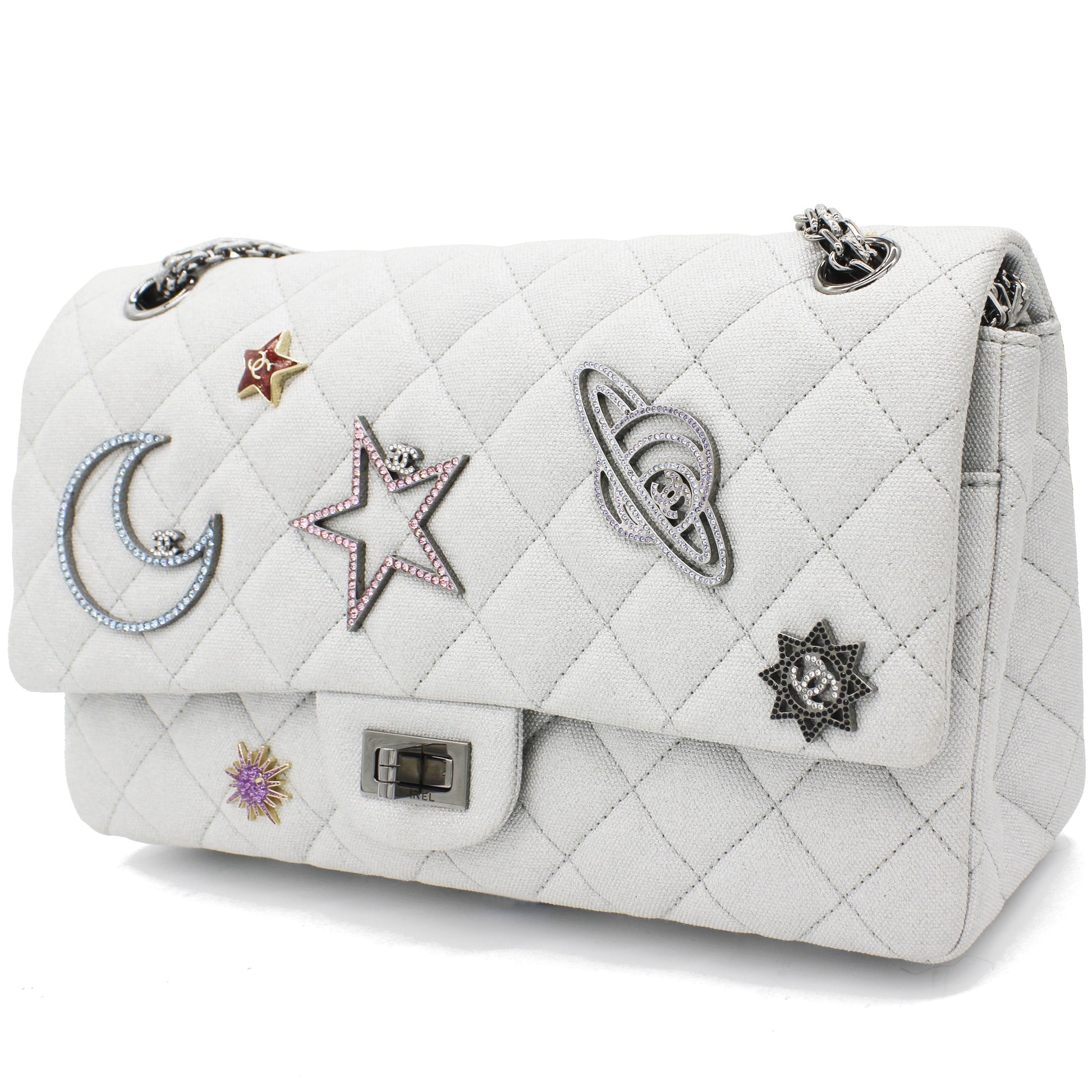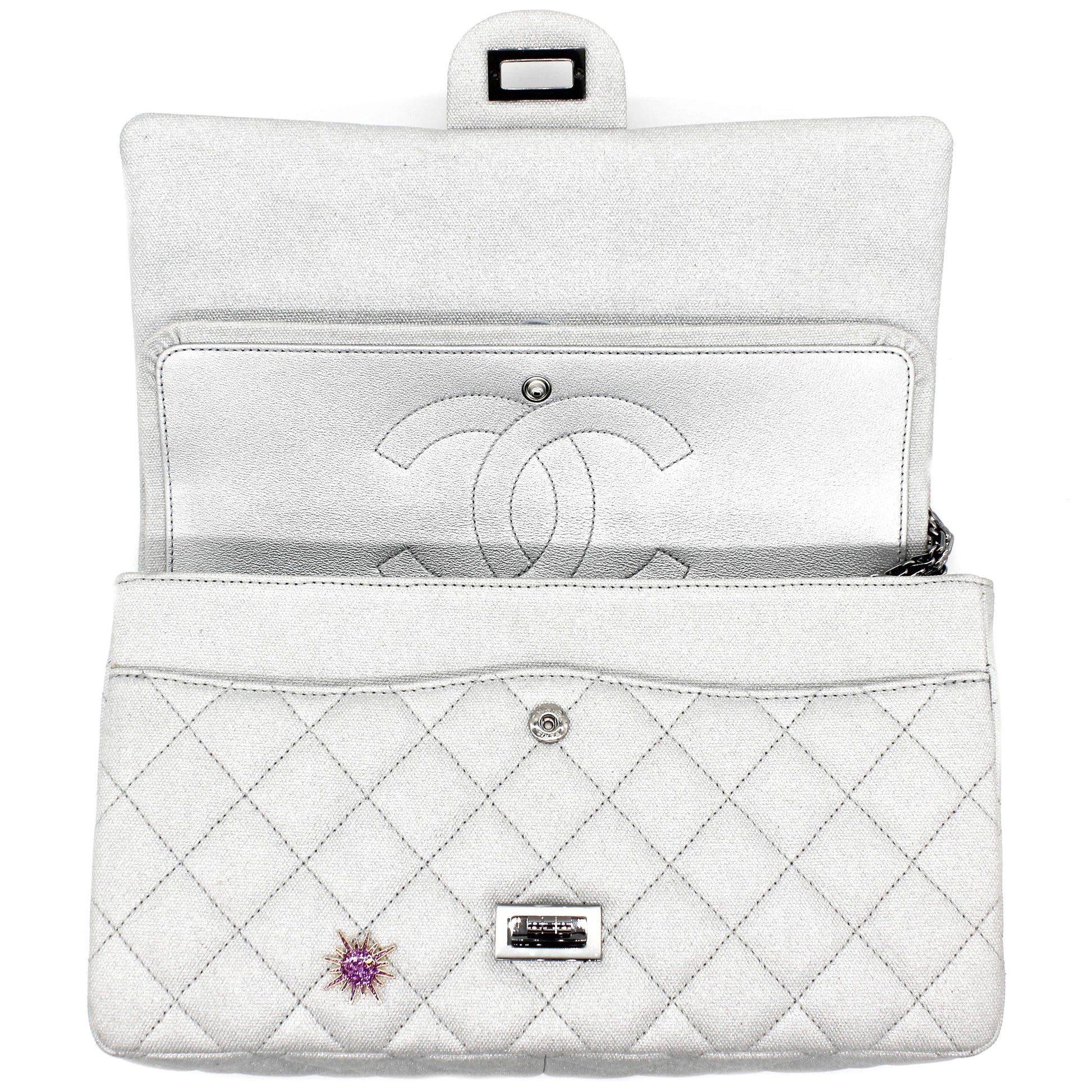 Chanel Silver 2.55 Canvas Reissue Space Charms 227 Flap Bag