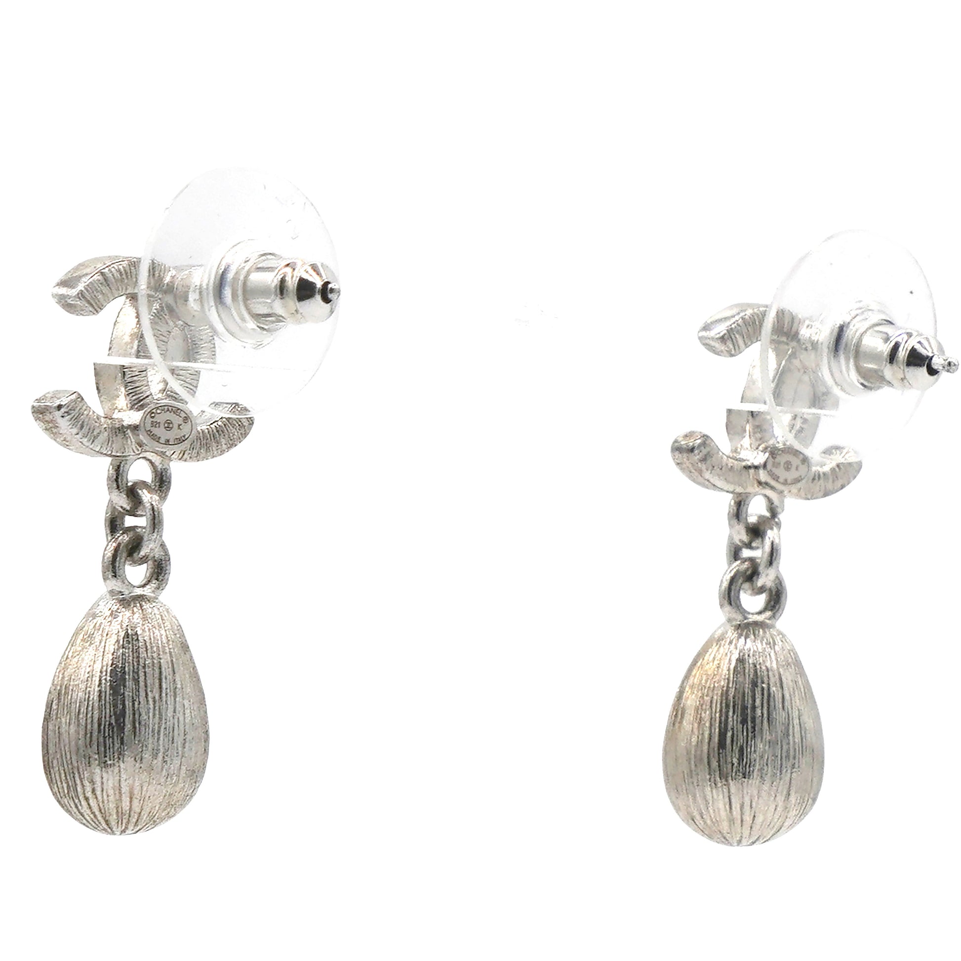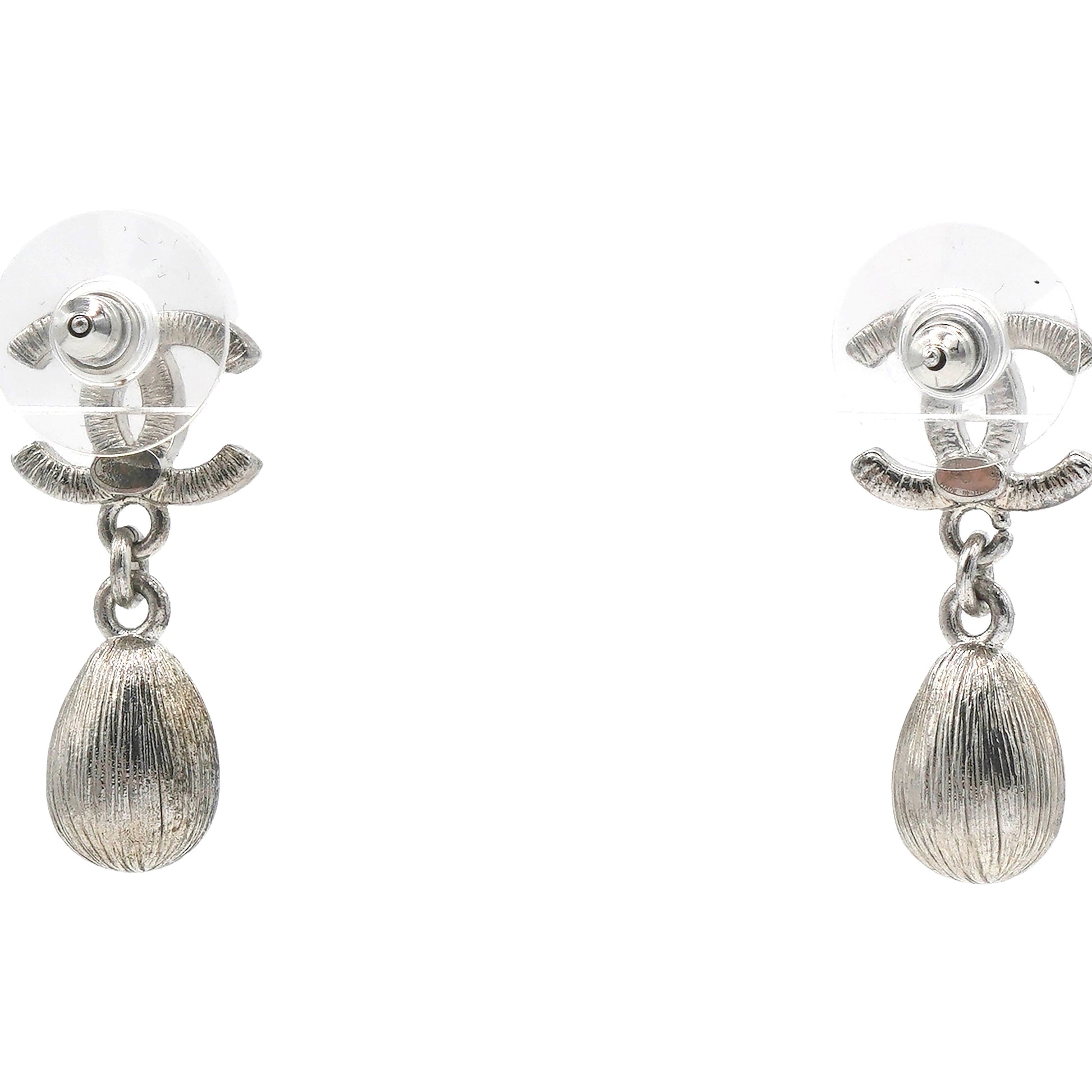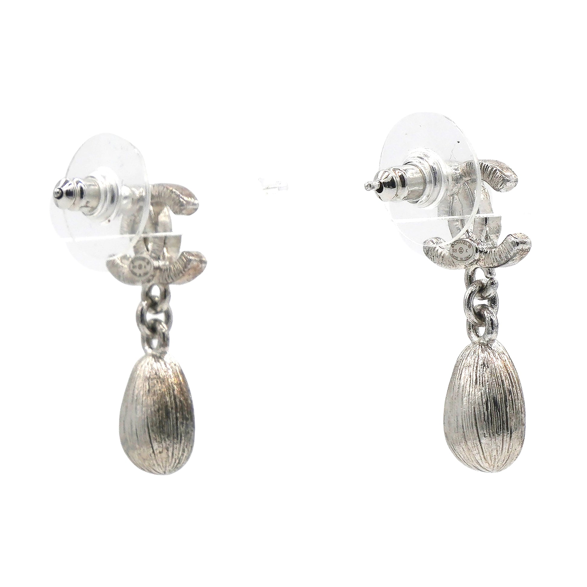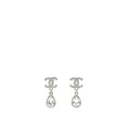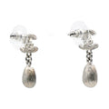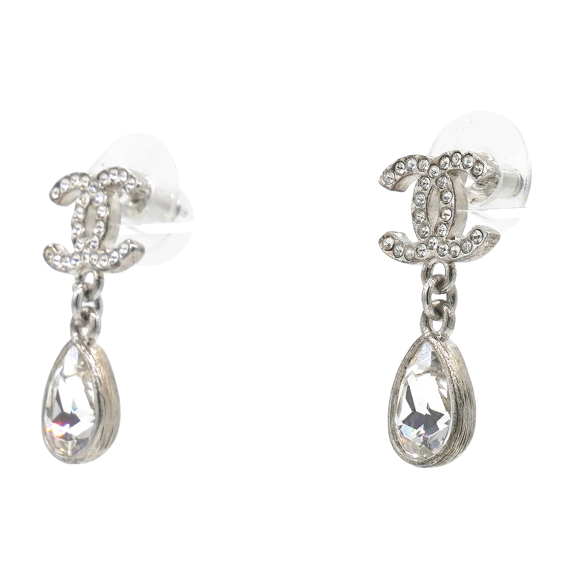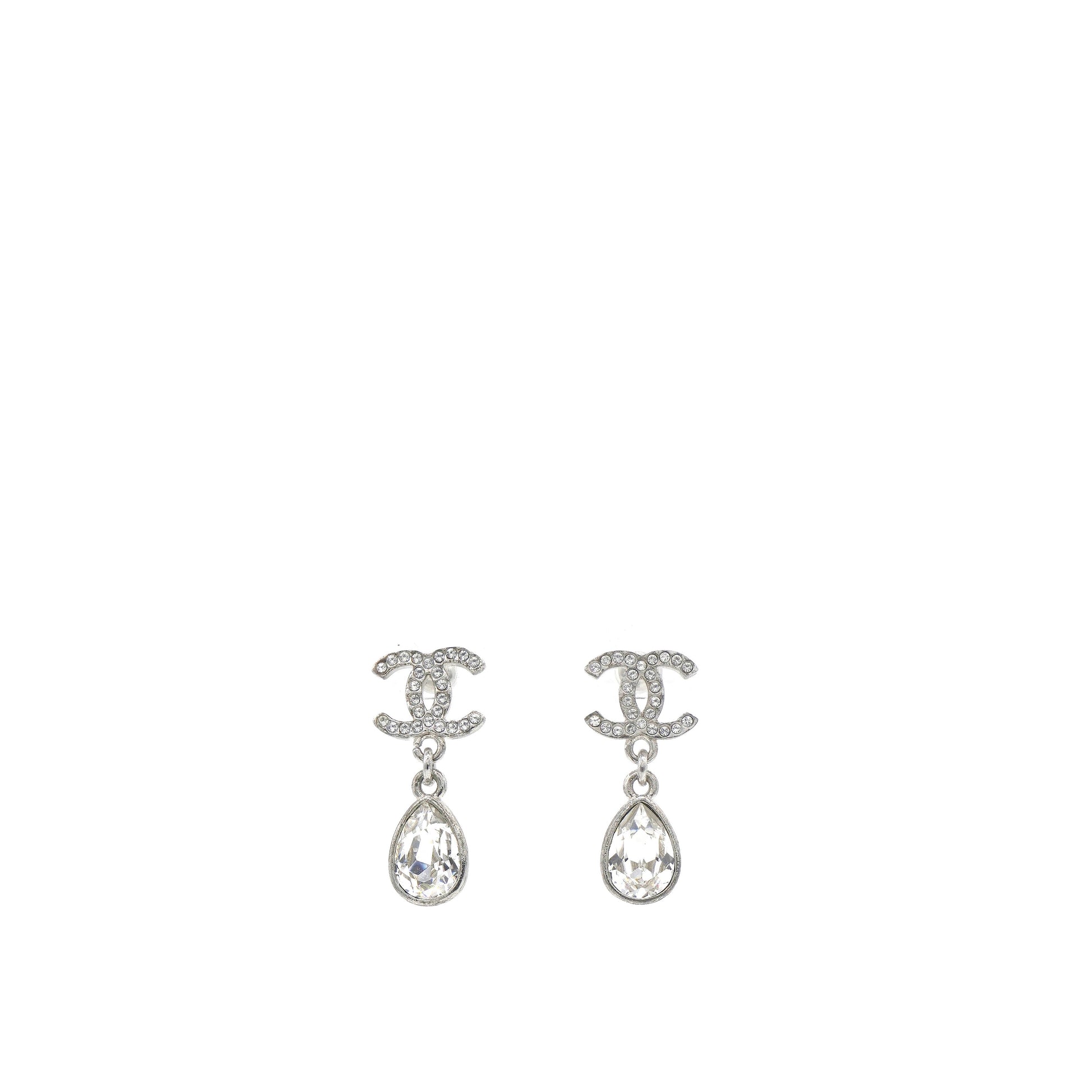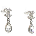 Chanel Silver Metal and Crystal CC Teardrop Earrings