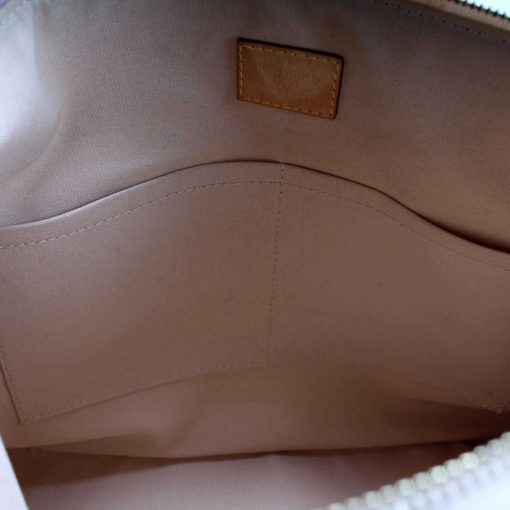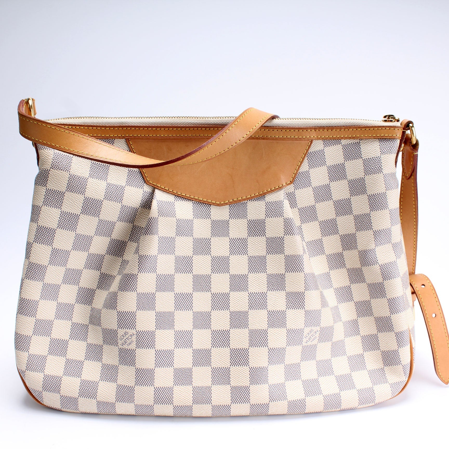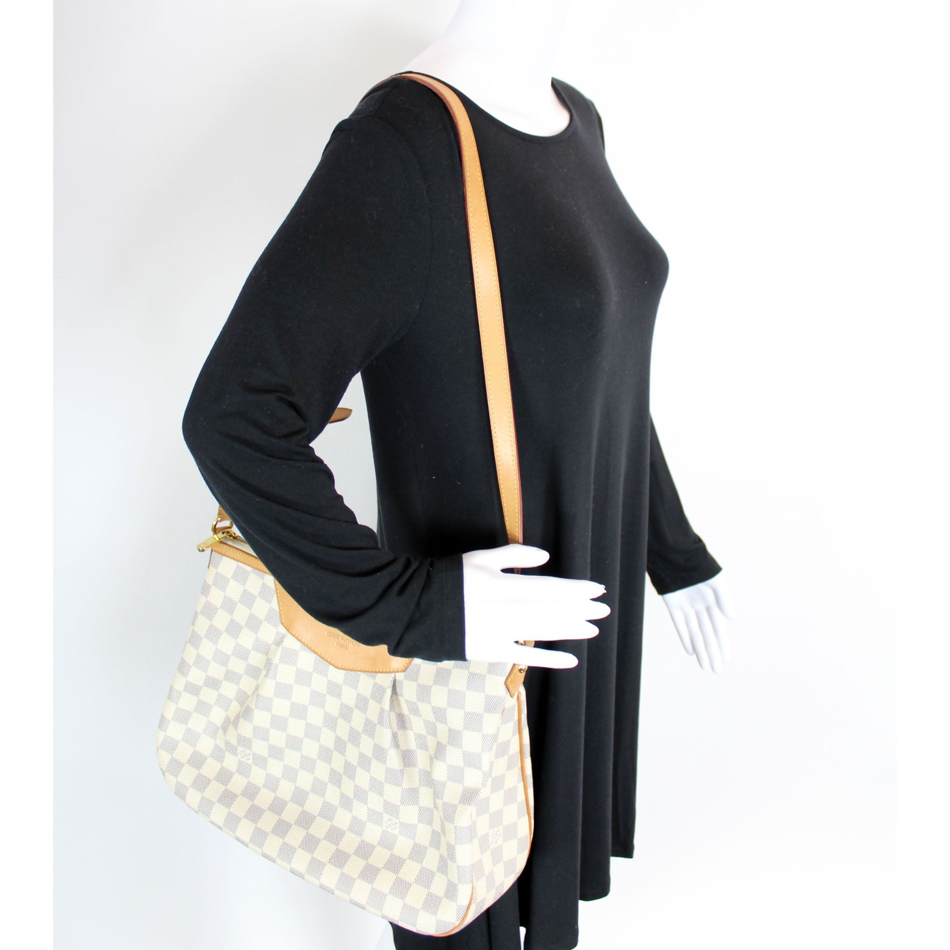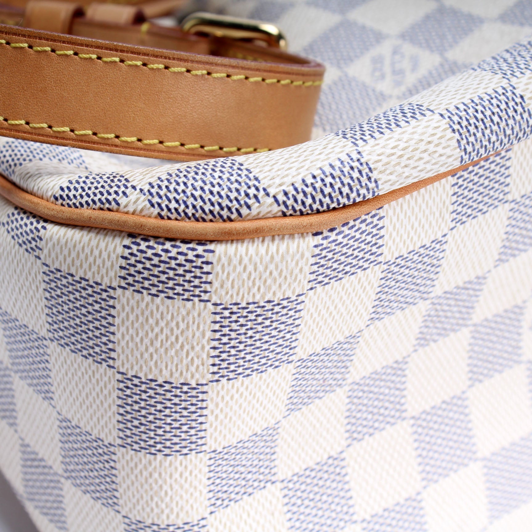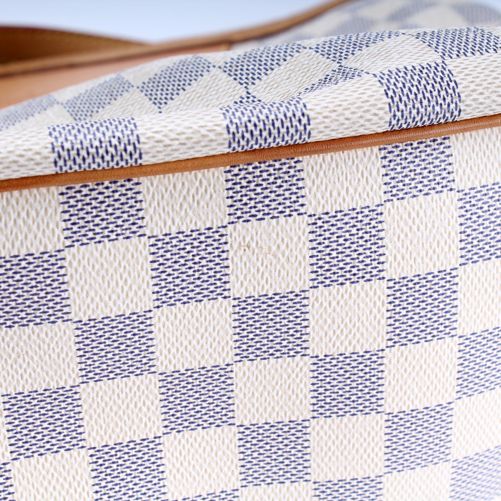 This Louis Vuitton Siracusa MM is guaranteed 100% authentic. The exterior is in the classic Louis Vuitton Damier Azur coated canvas.