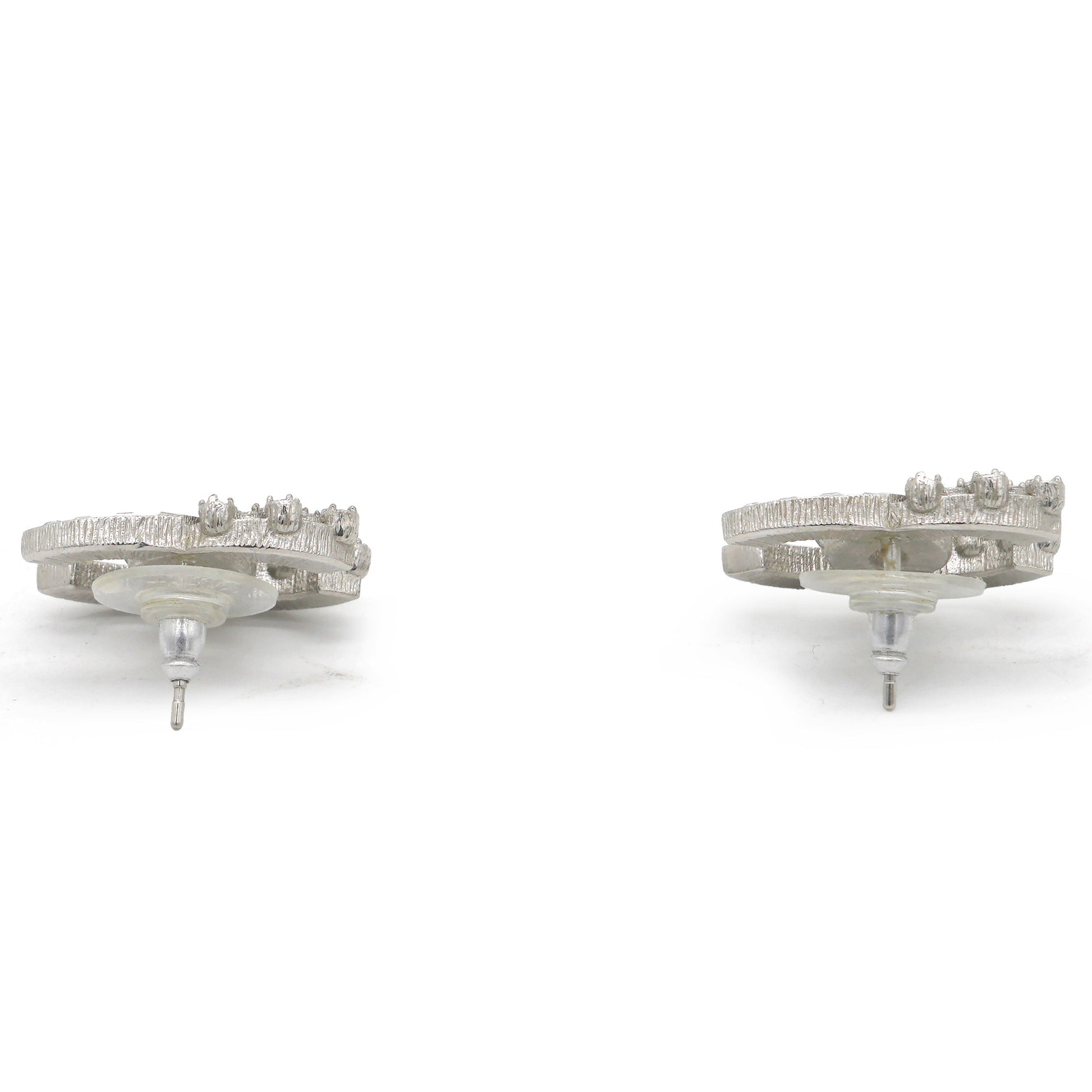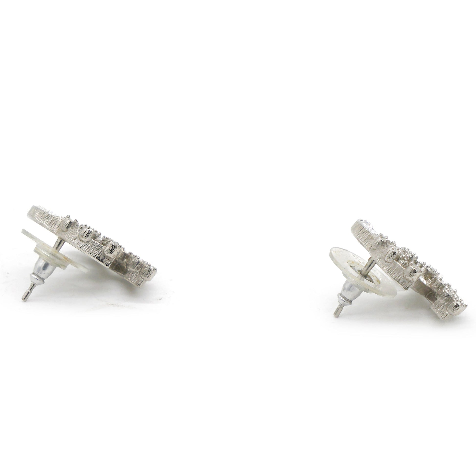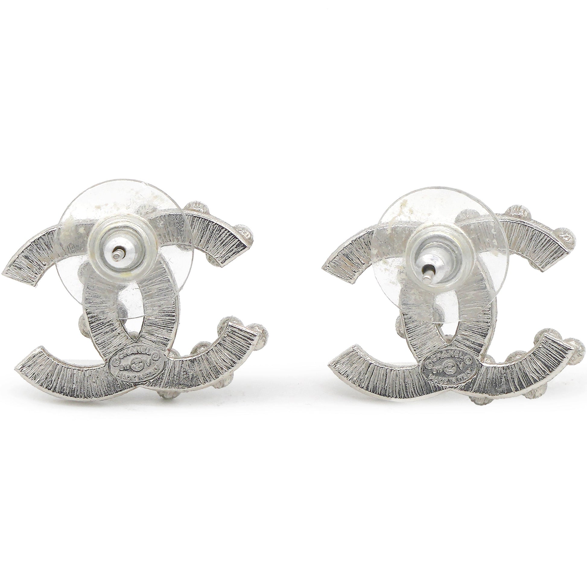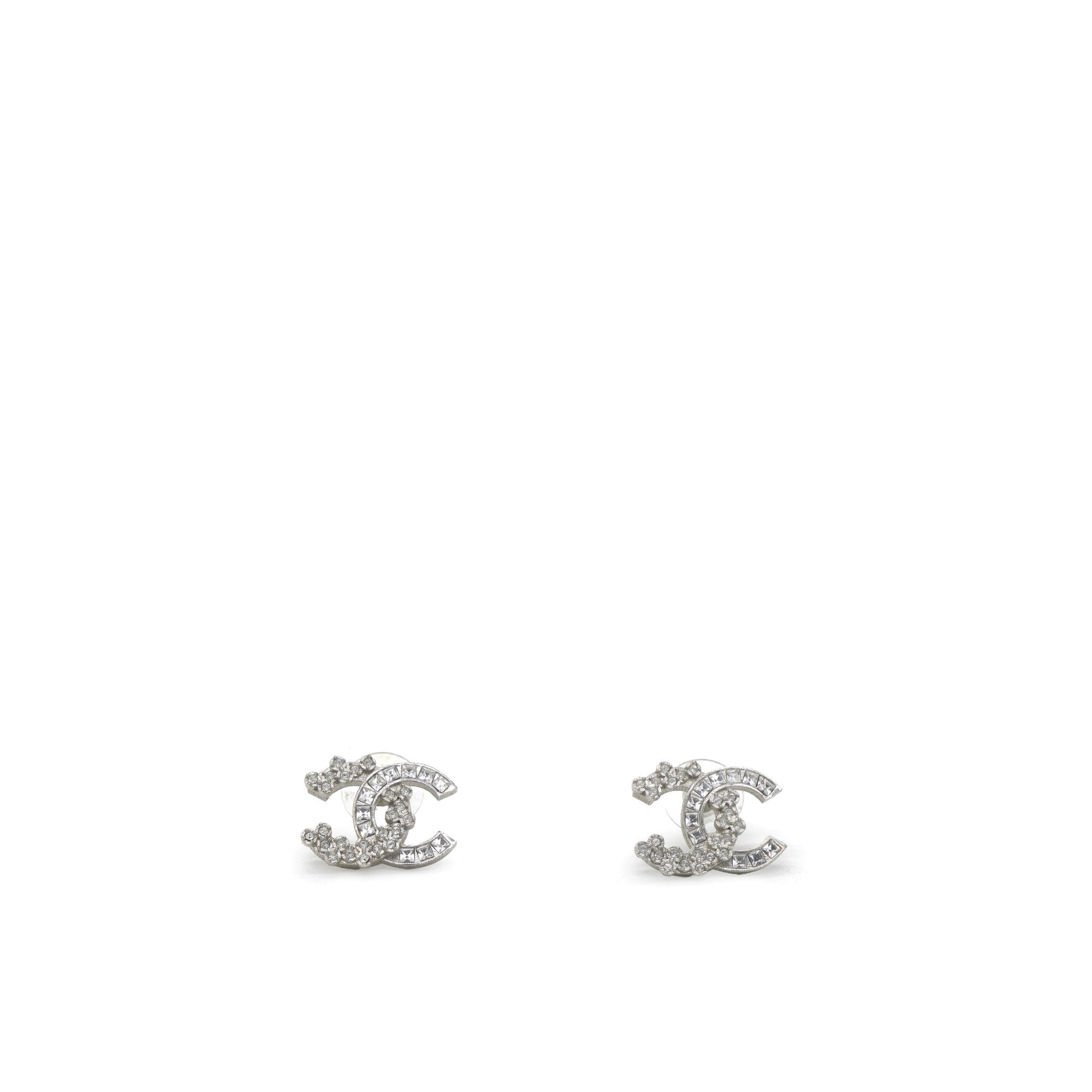 | These stylish pierced stud earrings are in a silver-tone and feature Chanel CC logos set with crystals. | Material: Crystal?Silver Tone Metal Measurement: W 2.3 cm H 1.5 cm D 0.2 cm Accessories: Serial Number: B19 Production Year: 2019 | ![]() |