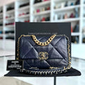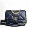 This Small 19 Bag in luxurious dark blue goatskin with two-tone hardware is a rare find from the coveted Series 29. Its exquisite craftsmanship and timeless design make it a must-have for any Chanel enthusiast. Elevate your collection with this iconic piece at an irresistible price of 4780 SGD.