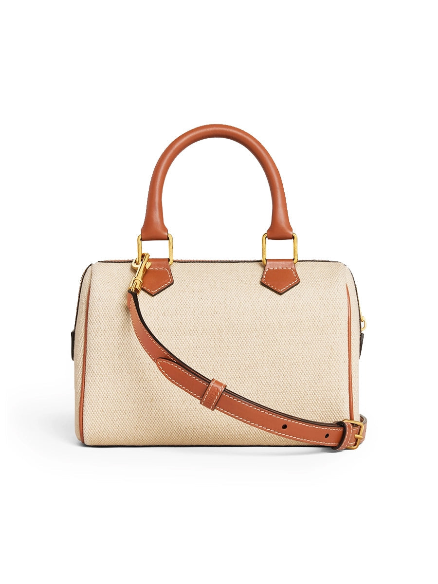 Small Boston Cuir Triomphe In Textile And Calfskin Natural/Tan