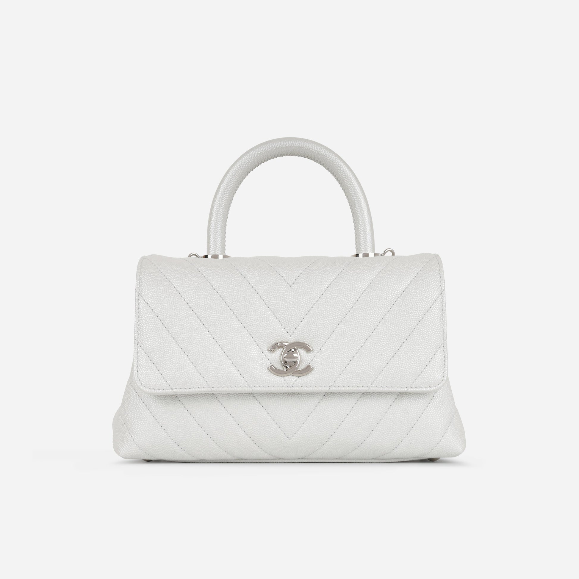 This exquisite piece, rendered in a delightful light chevron caviar leather, embodies the perfect blend of classic design and modern sophistication. A must-have for any fashion connoisseur, the Small Coco Handle bag is as versatile as it is chic, making it a standout addition to any collection.