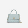 This exquisite piece, rendered in a delightful light blue caviar leather, embodies the perfect blend of classic design and modern sophistication. A must-have for any fashion connoisseur, the Small Coco Handle bag is as versatile as it is chic, making it a standout addition to any collection.