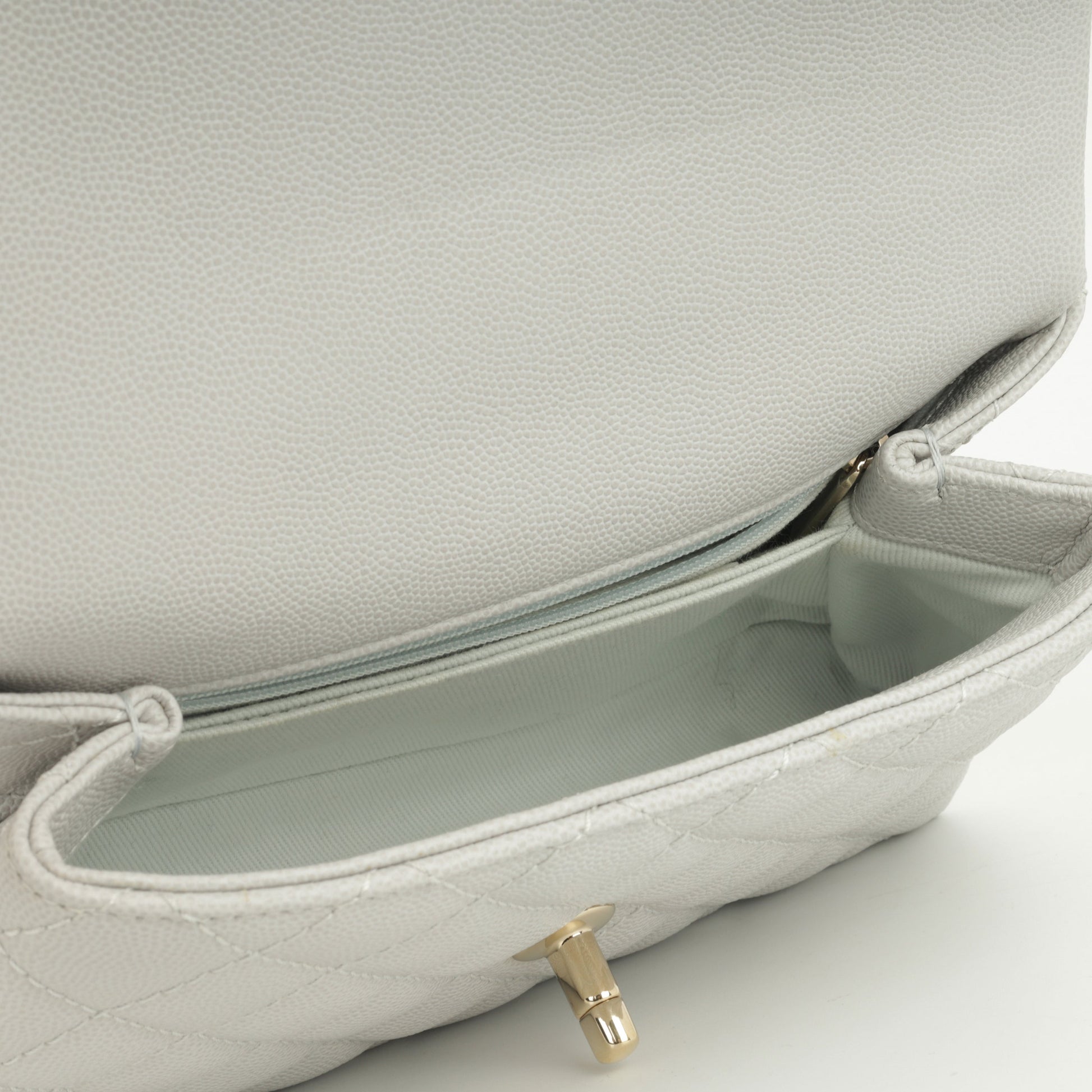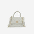 The Small Coco Handle comes with practicality and style and is the smallest size in this collection. This bag comes with the Chanel classic flap and twist lock system. Designed for hand held use or for wearing over your shoulder with the very convenient removable strap.