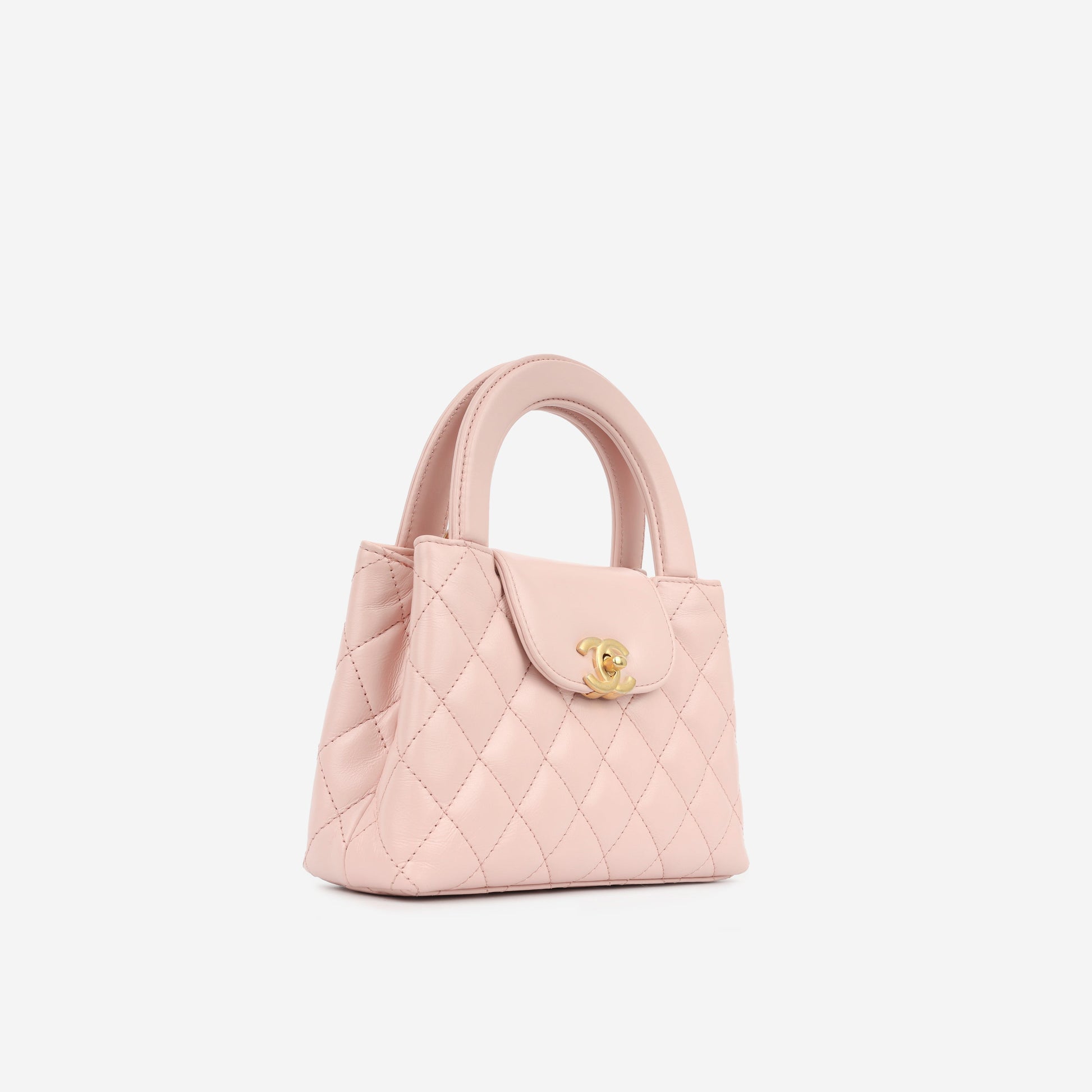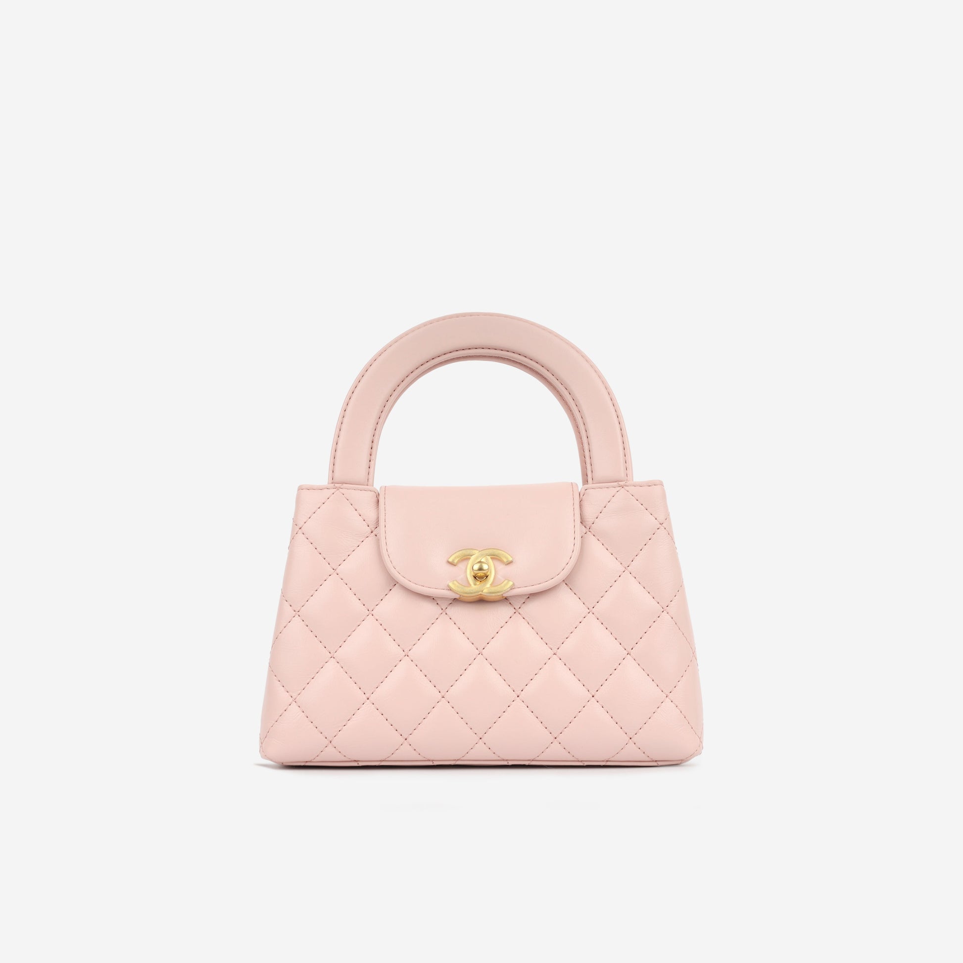 - Light pastel pink aged quilted calfskin