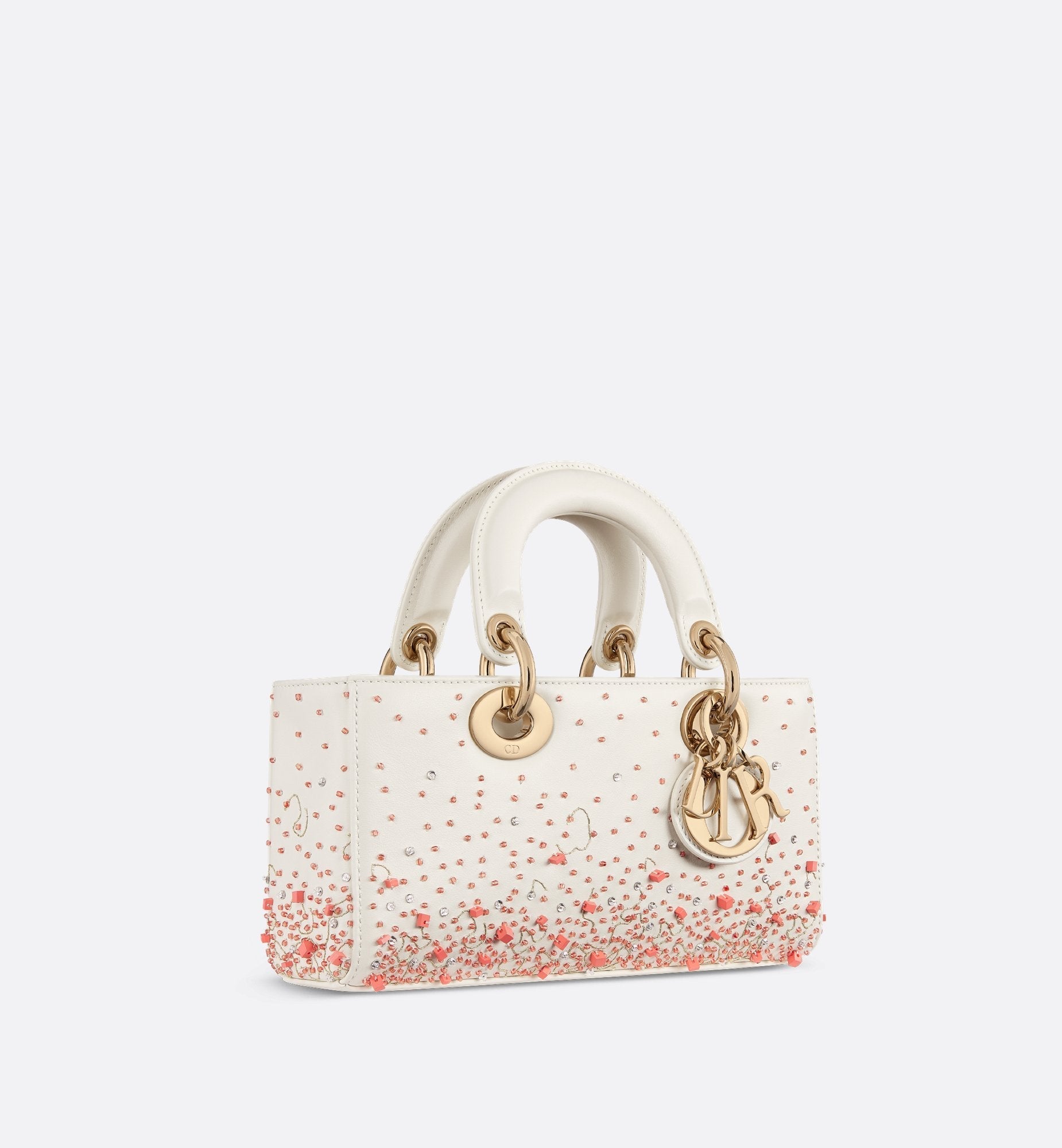Small Lady D-Joy Bag Calfskin With Coral Embroidery Gradient