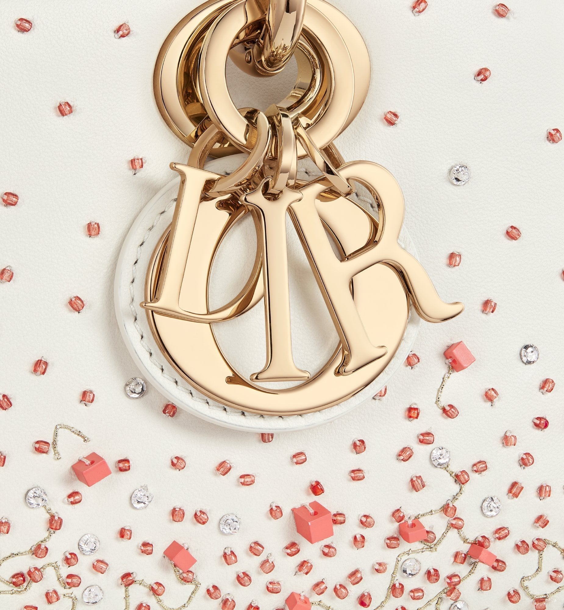 The Lady D-Joy bag captures the House's vision of elegance and beauty by showcasing the streamlined aesthetic of the iconic Lady Dior line. Demonstrating the House's exceptional savoir-faire, the calfskin style has a coral embroidered gradient. The timeless design is enhanced by pale gold-finish metal D.I.O.R. charms that adorn and illuminate its silhouette. Featuring one removable chain strap and another adjustable and removable leather strap, the small Lady D-Joy bag can be carried by hand, worn over the shoulder or crossbody as a daily companion.