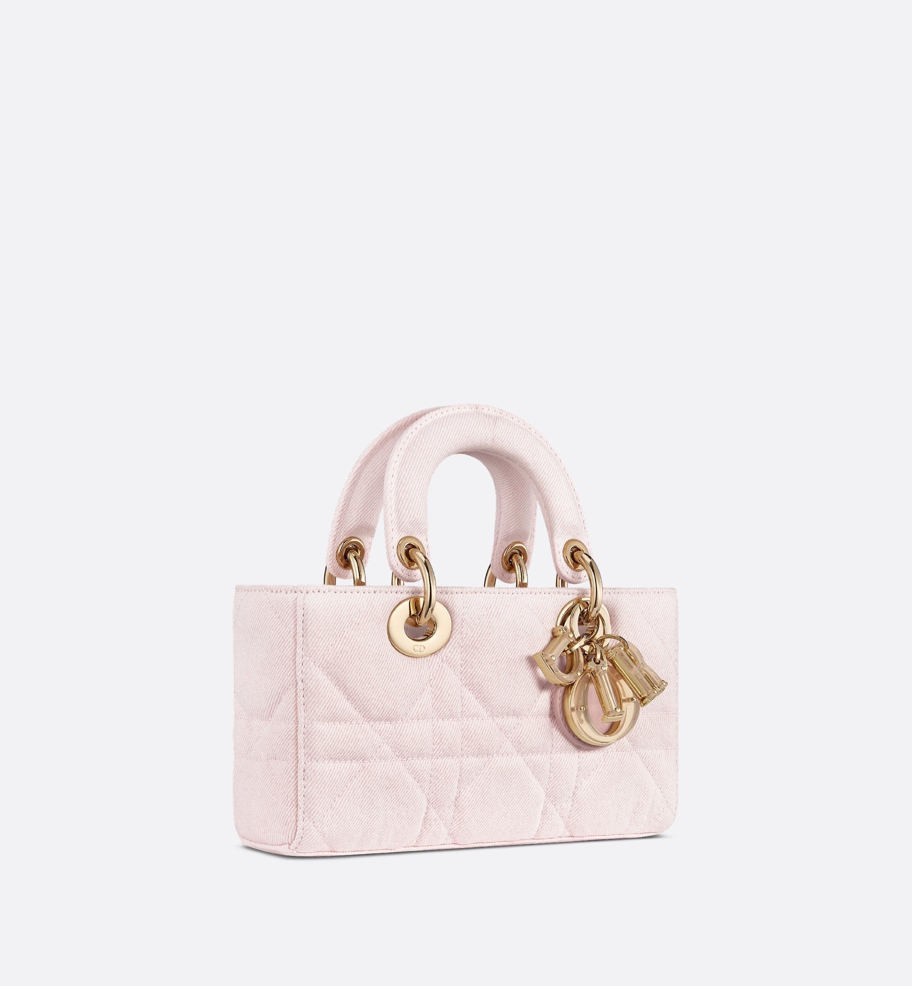 Small Lady D-Joy Bag Pink Macrocannage Denim