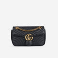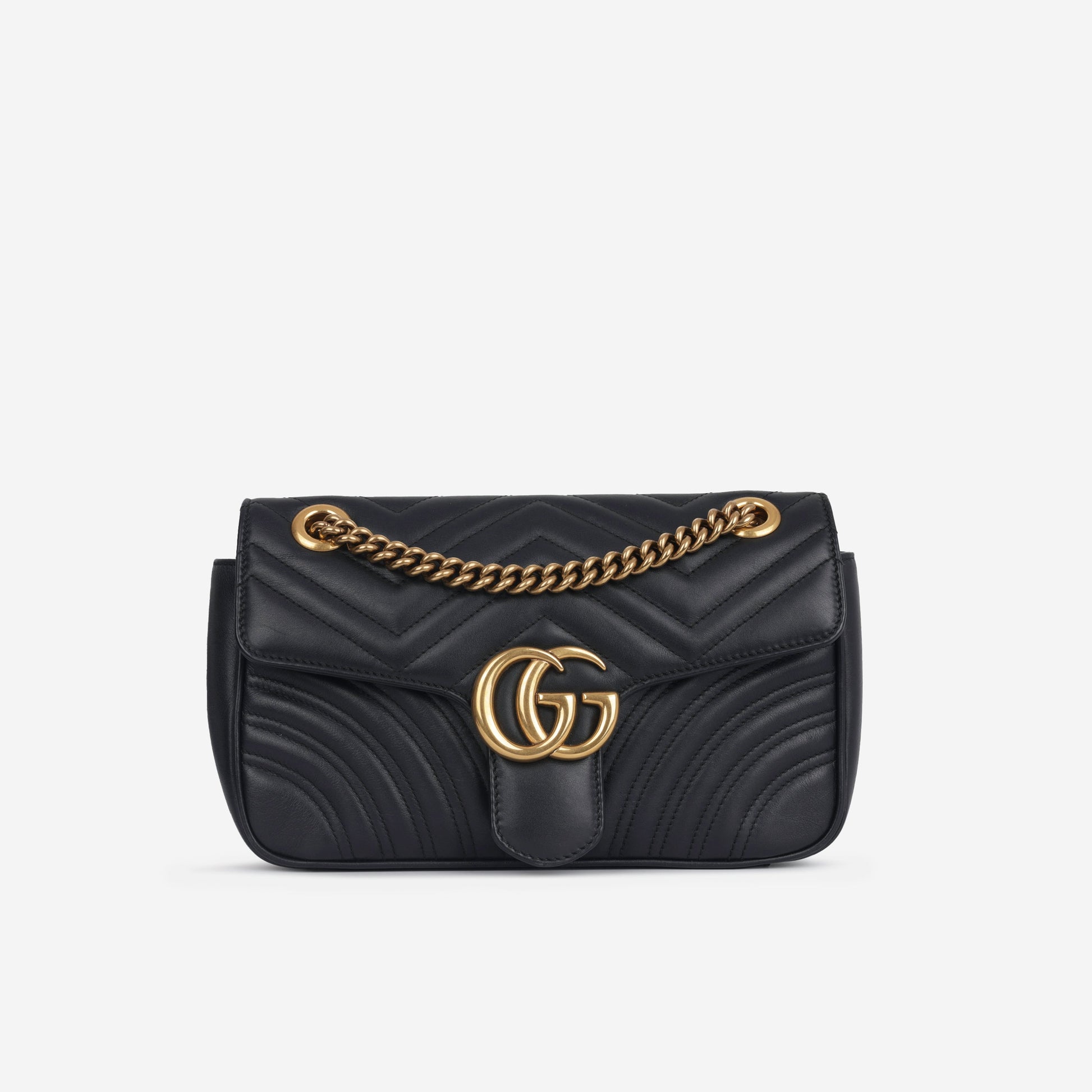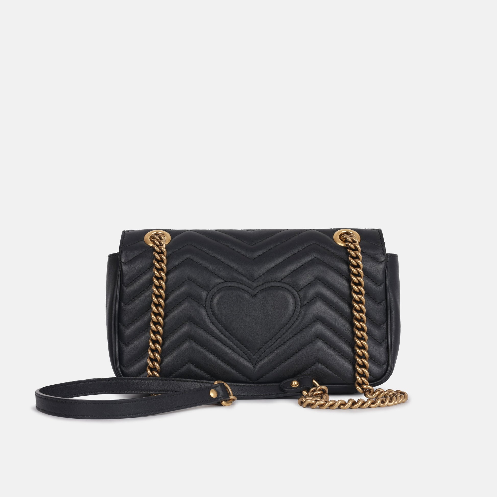 The Gucci Marmont Marmont bag is a perfect compact bag to use day or night. The unique logo plaque has been revived from their archives of the 70’s era for the brand, and the chevron stitching brings the bag back to modern day and adds a little bit of interest to the eye.