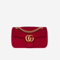 The Gucci Marmont Marmont bag is a perfect compact bag to use day or night. The unique logo plaque has been revived from their archives of the 70’s era for the brand, and the chevron stitching brings the bag back to modern day and adds a little bit of interest to the eye.