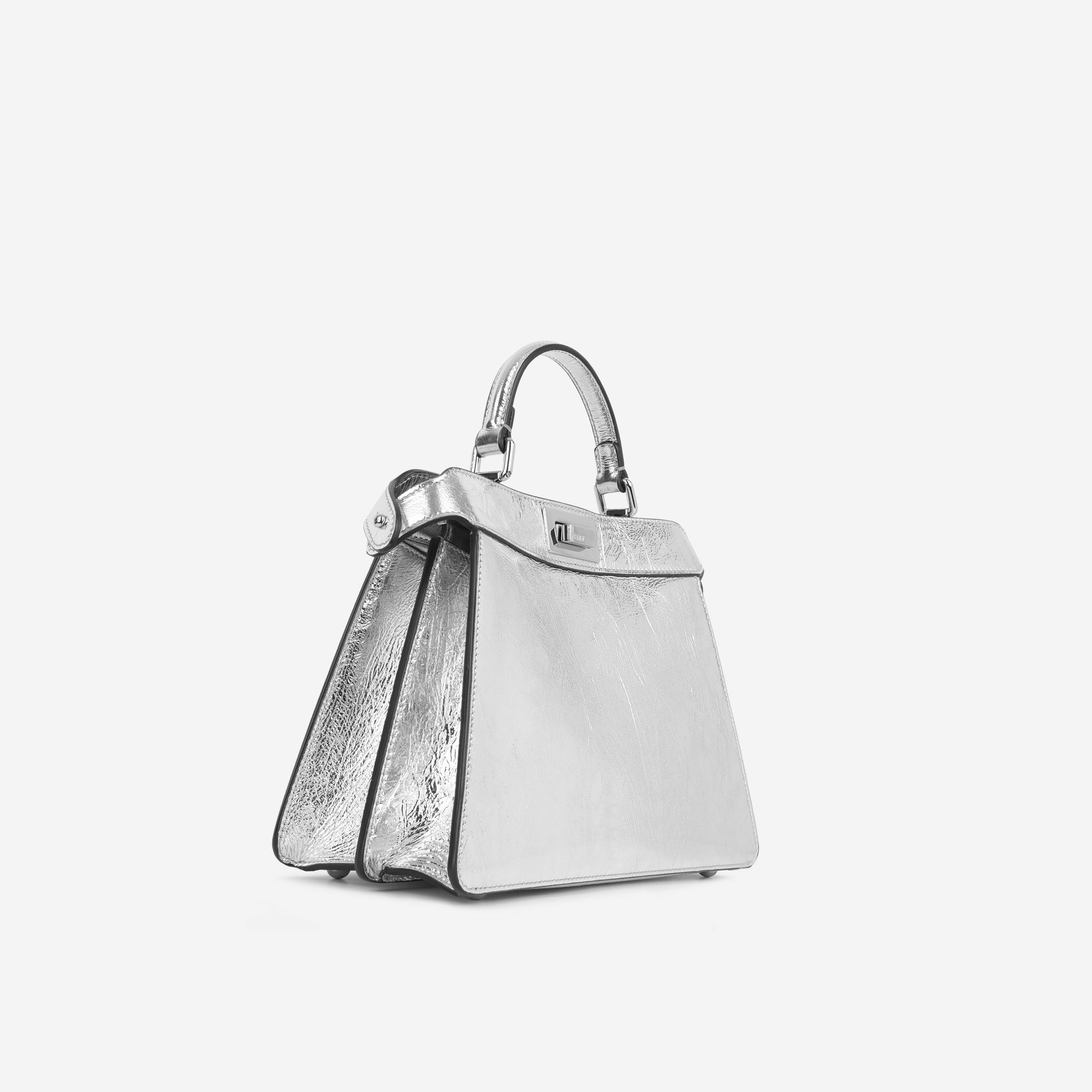 Fendi Rock Millennium Laminata Small Peekaboo ISeeU Silver Calfskin