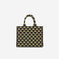 Inspired by the brand's iconic triangle motif. Originating from trunks designed by Mario Prada himself, the triangle symbolises uniqueness and modernity, reinvented in a fresh interpretation each season. This sleek tote bag showcases a sophisticated yet modernist pattern, meticulously crafted to play with contrasting colors and geometric shapes. The minimalist design exudes a contemporary charm, making it a versatile accessory for any occasion. Crafted from the finest materials, including the brand's iconic Saffiano leather, this tote bag boasts durability and luxury in equal measure. The addition of a detachable shoulder strap offers versatility, allowing you to wear it in different ways to suit your style.