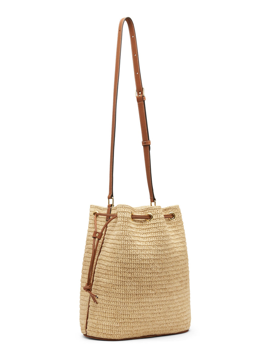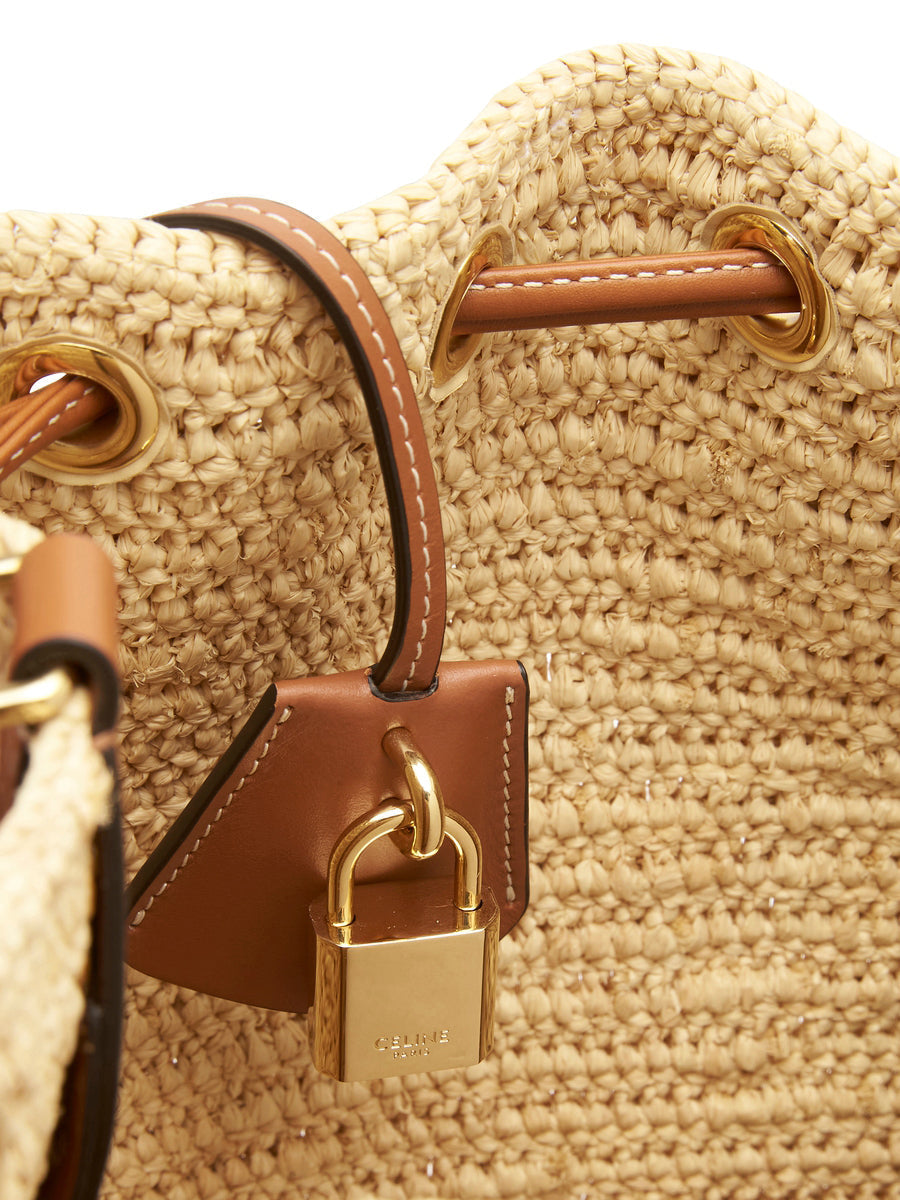 Small Triomphe Bucket Bag in Raffia and Calfskin