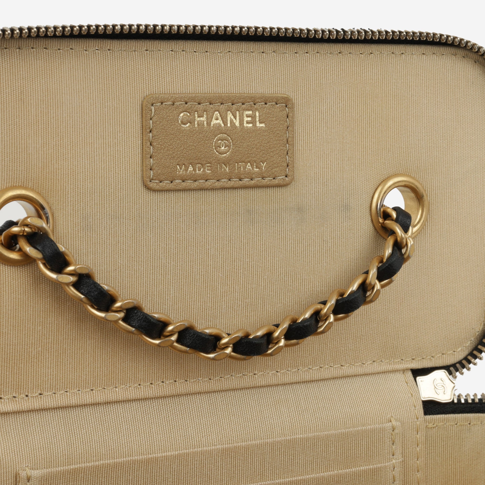 Chanel Small Vanity on Chain Pearl Crush Black Lambskin Antique Gold Hardware