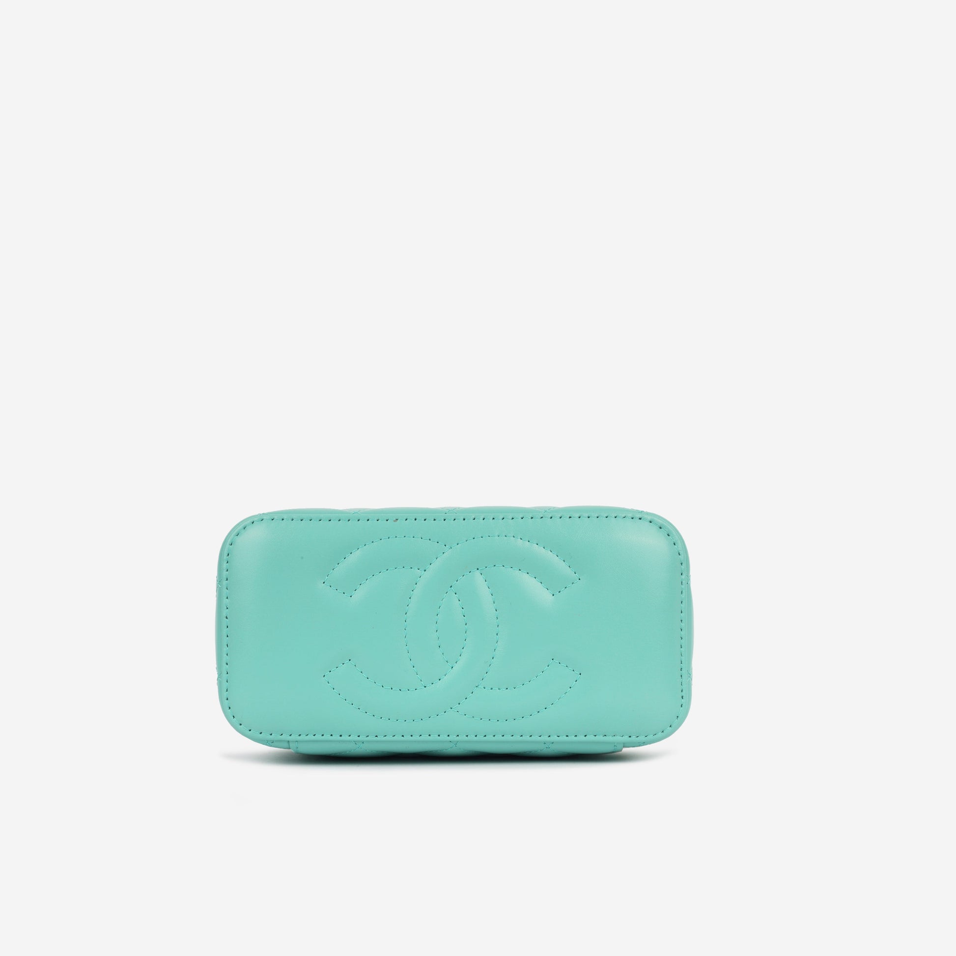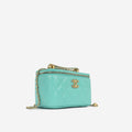 Primarily developed for storing your tiny beauty essentials and other small necessities, the vanity case has come a rather long way since its birth. With the “mini bag” remaining at the forefront of fashion accessory trends, this petite piece is the farthest thing from just a functional case. This beautiful vanity on chain is crafted in ivory lambskin leather and complimented with gold-tone hardware.