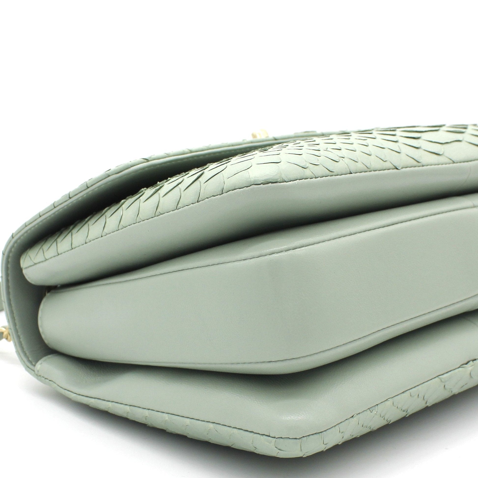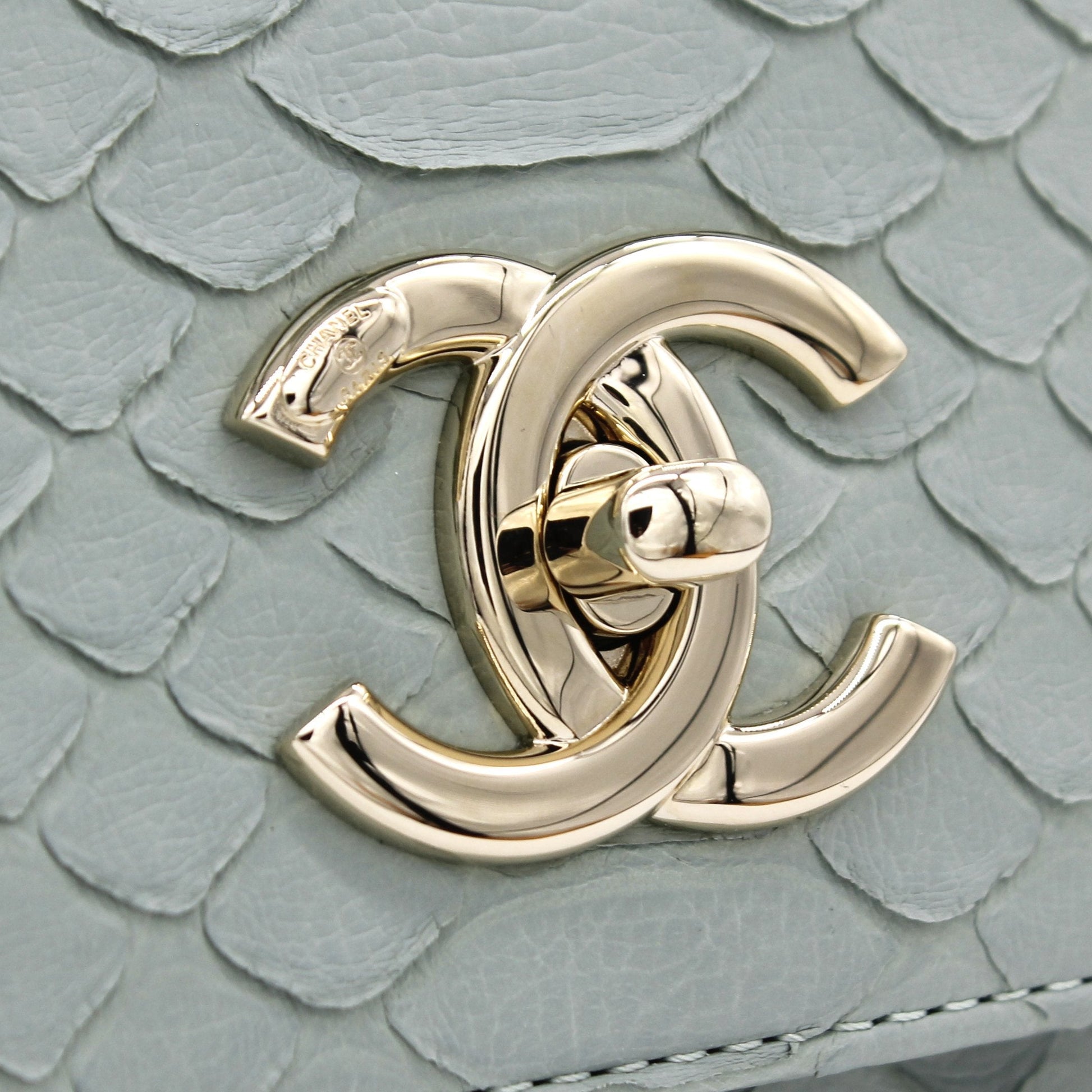 | This stylish handbag is crafted of diamond snack leather in a mint green. The refined bag features a reinforced leather top handle with gold links, a gold chain leather threaded shoulder strap with a shoulder pad and a gold Chanel plate. . These open to a mint green leather interior with a zipper and patch pocket. | Exterior Material: Snack leather exterior with snack leather top handle, a gold chain leather threaded shoulder strap and a gold CHANEL plate. Interior Material: Mint green leather lining with two main compartment, a zipper pocket and patch pockets. Accessories: Receipt; Card; Dust Bag; Bought Year: 2018 | ![]() |