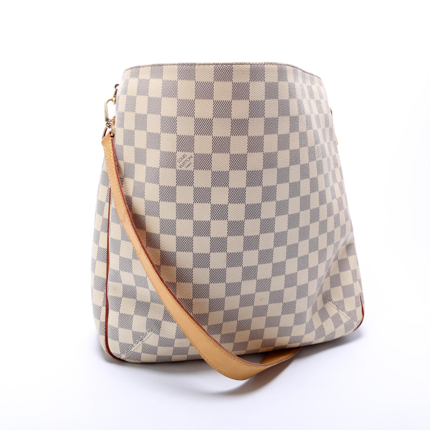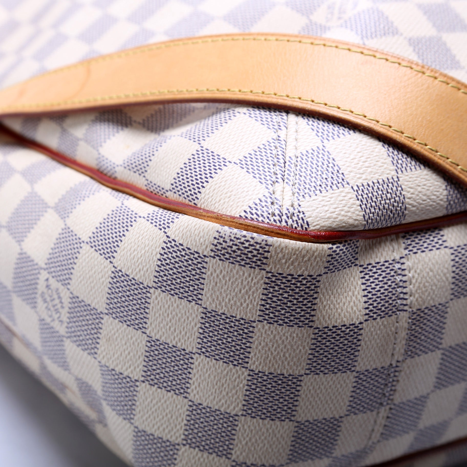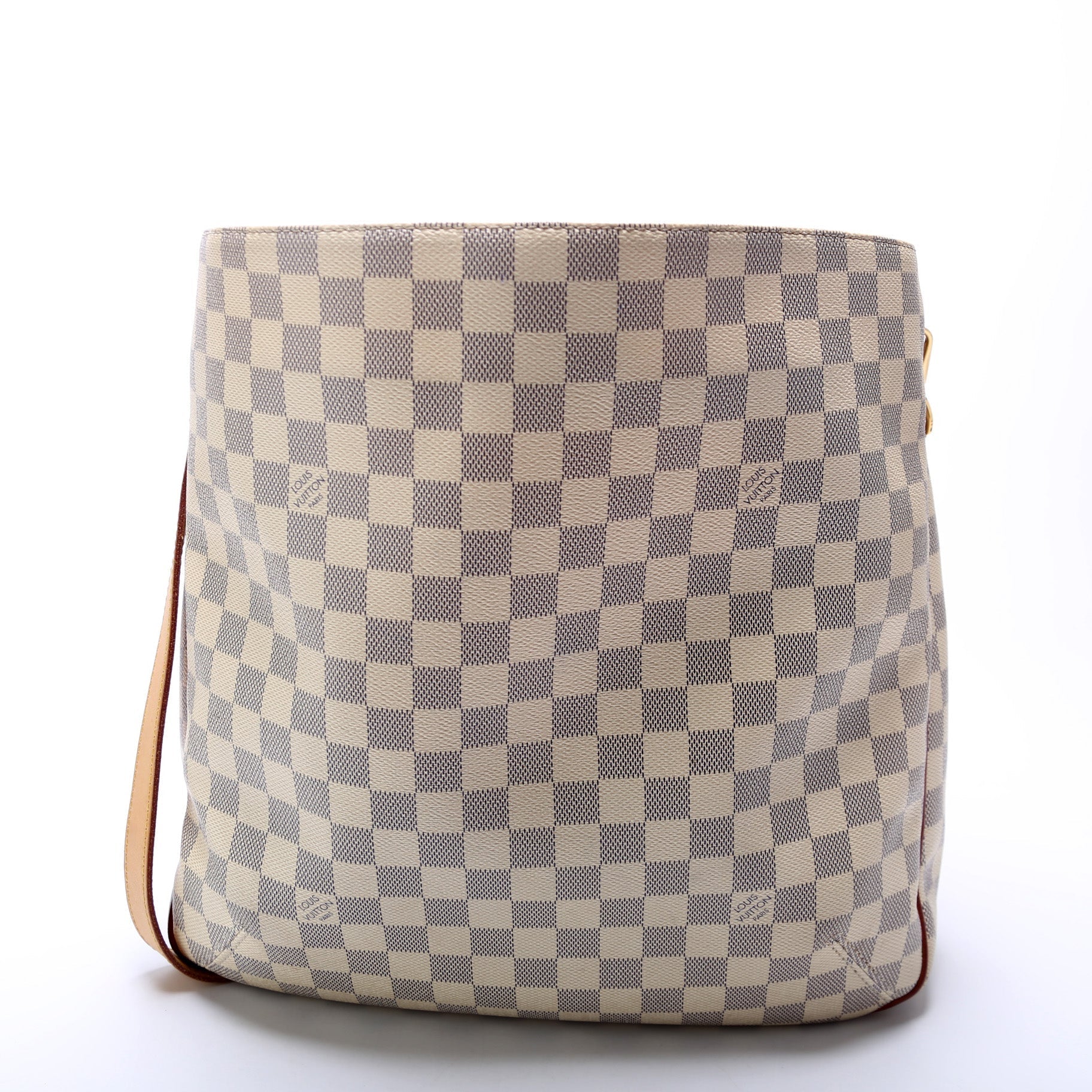 This Louis Vuitton Soffi is d 100% . The exterior is in the Louis Vuitton Damier Azur coated canvas.