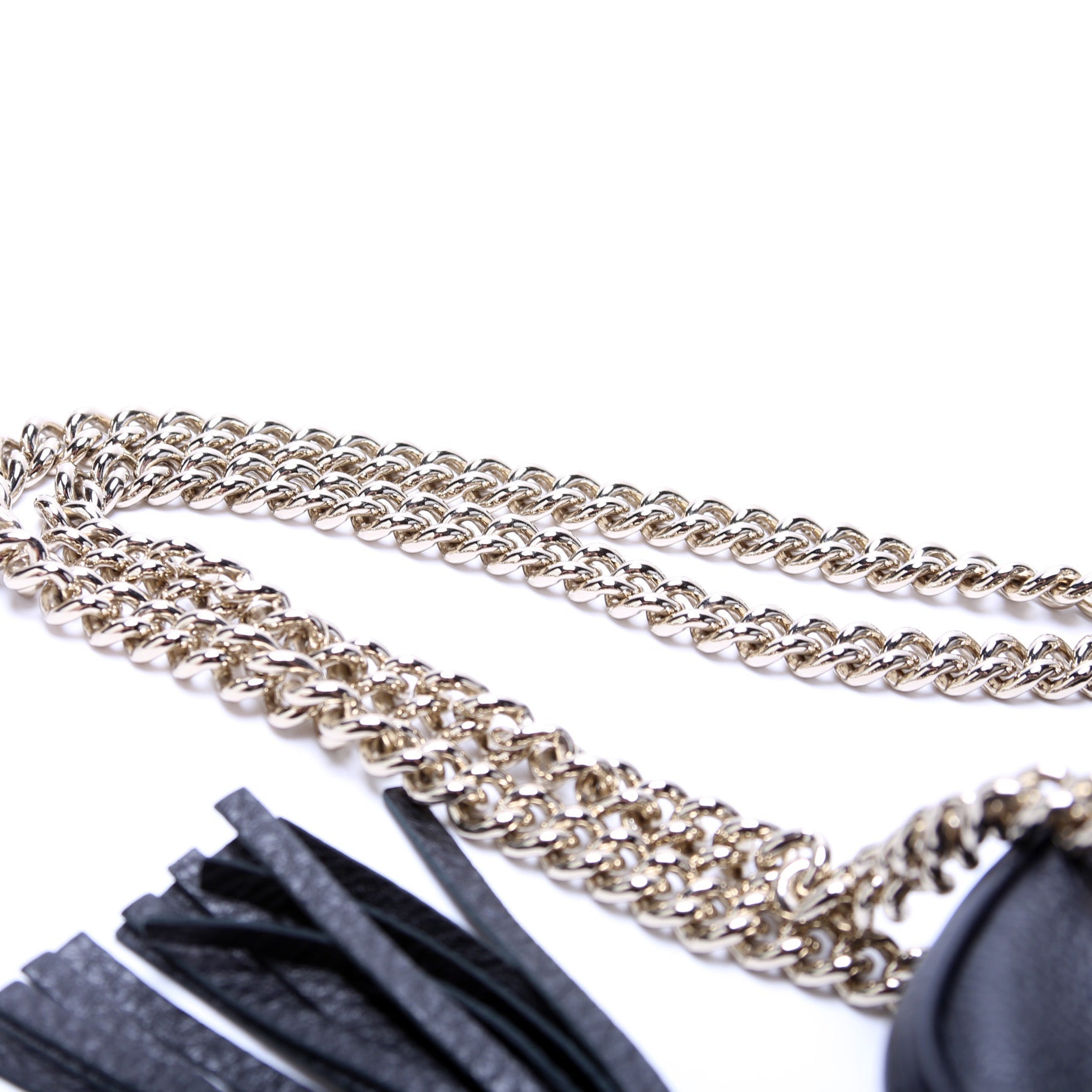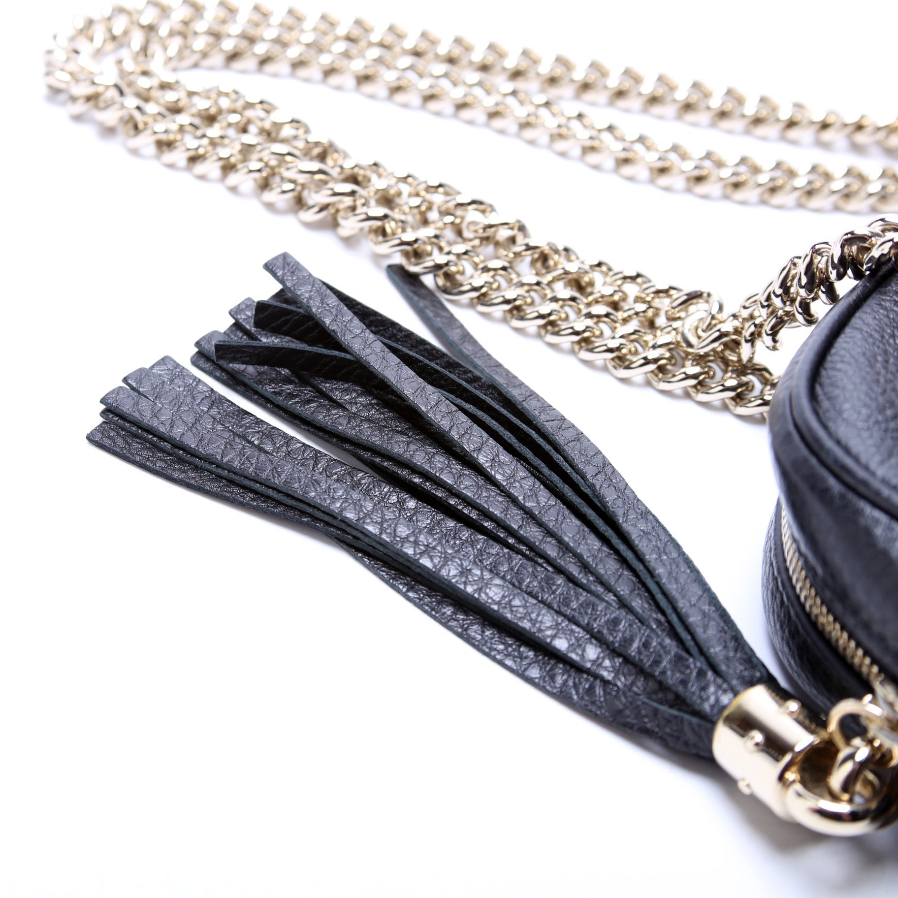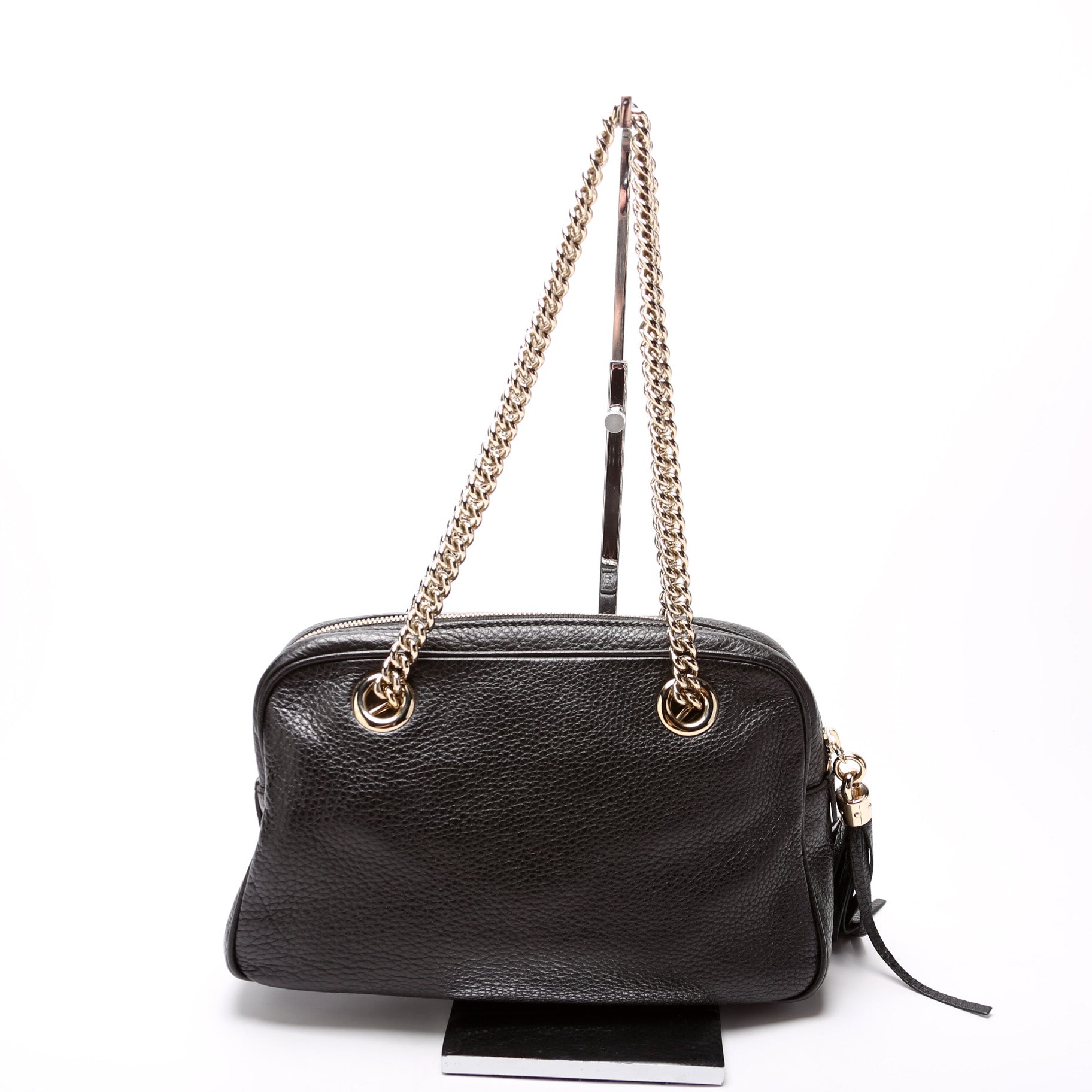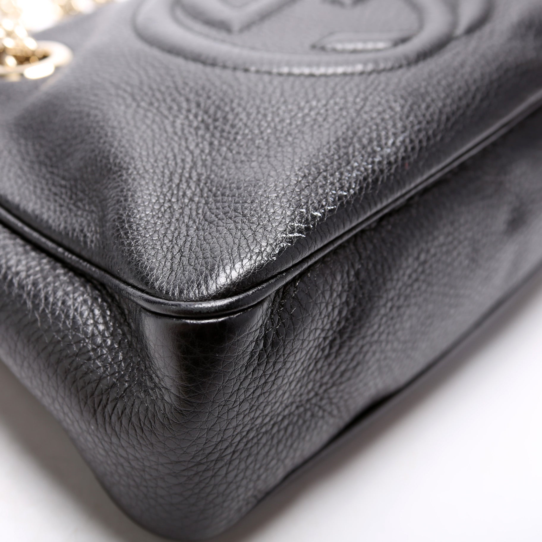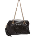 This Gucci Soho Chain Shoulder Bagis eye catching bag. The exterior is in the classic Gucci Soho leather.