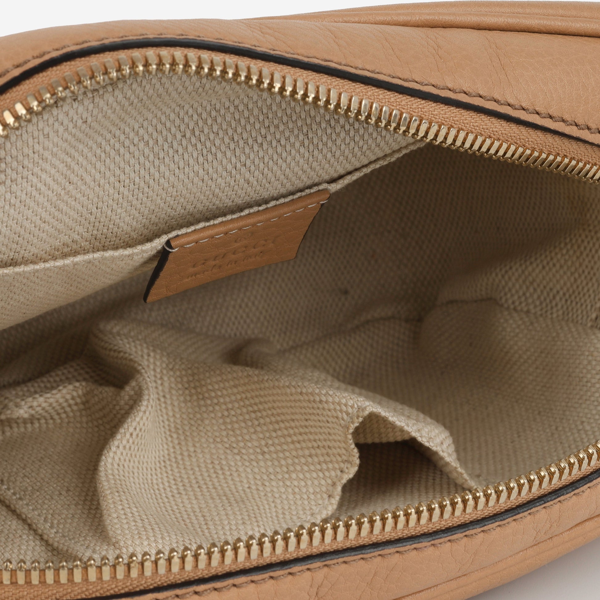 The Soho Disco bag from Gucci quickly became a brand classic upon its debut. A coveted, must have bag, the Disco crossbody is crafted from black grained leather and features champagne gold tone hardware. Diverse and versatile, this stunning bag is spacious enough for all your essentials, making it a perfect everyday companion.