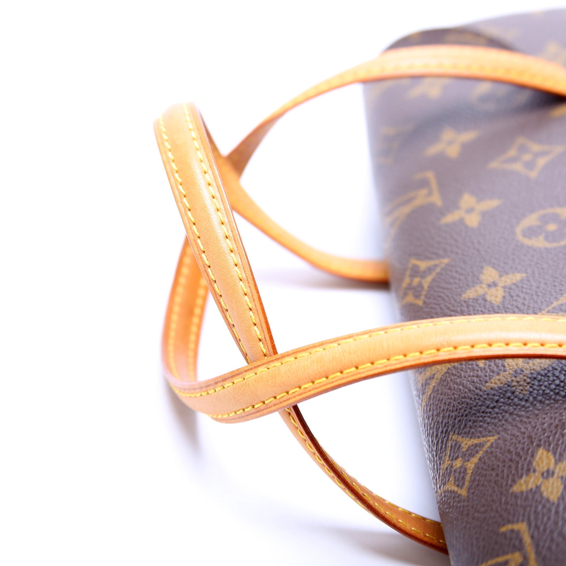 Handle: The leather handles have minor discoloration.