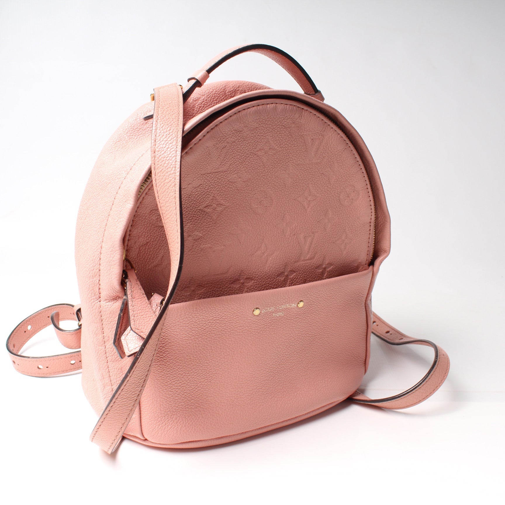 This Louis Vuitton Sorbonne Backpackis eye catching bag. The exterior is in the classic Empreinte leather.