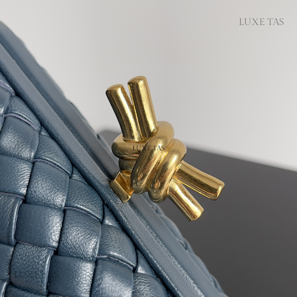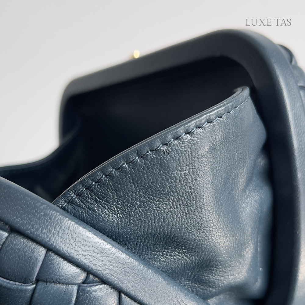 Introducing our stunning Minaudière clutch, meticulously crafted from soft padded Intreccio leather, complete with our signature knot detail! This exquisite accessory combines luxurious craftsmanship with timeless elegance, making it the perfect choice for any special occasion. With its sleek design and impeccable attention to detail, it's sure to make a statement wherever you go. Elevate your ensemble with our Minaudière clutch and add a touch of sophistication to your look!