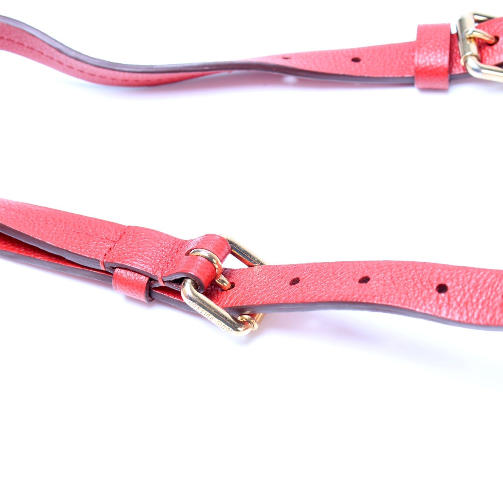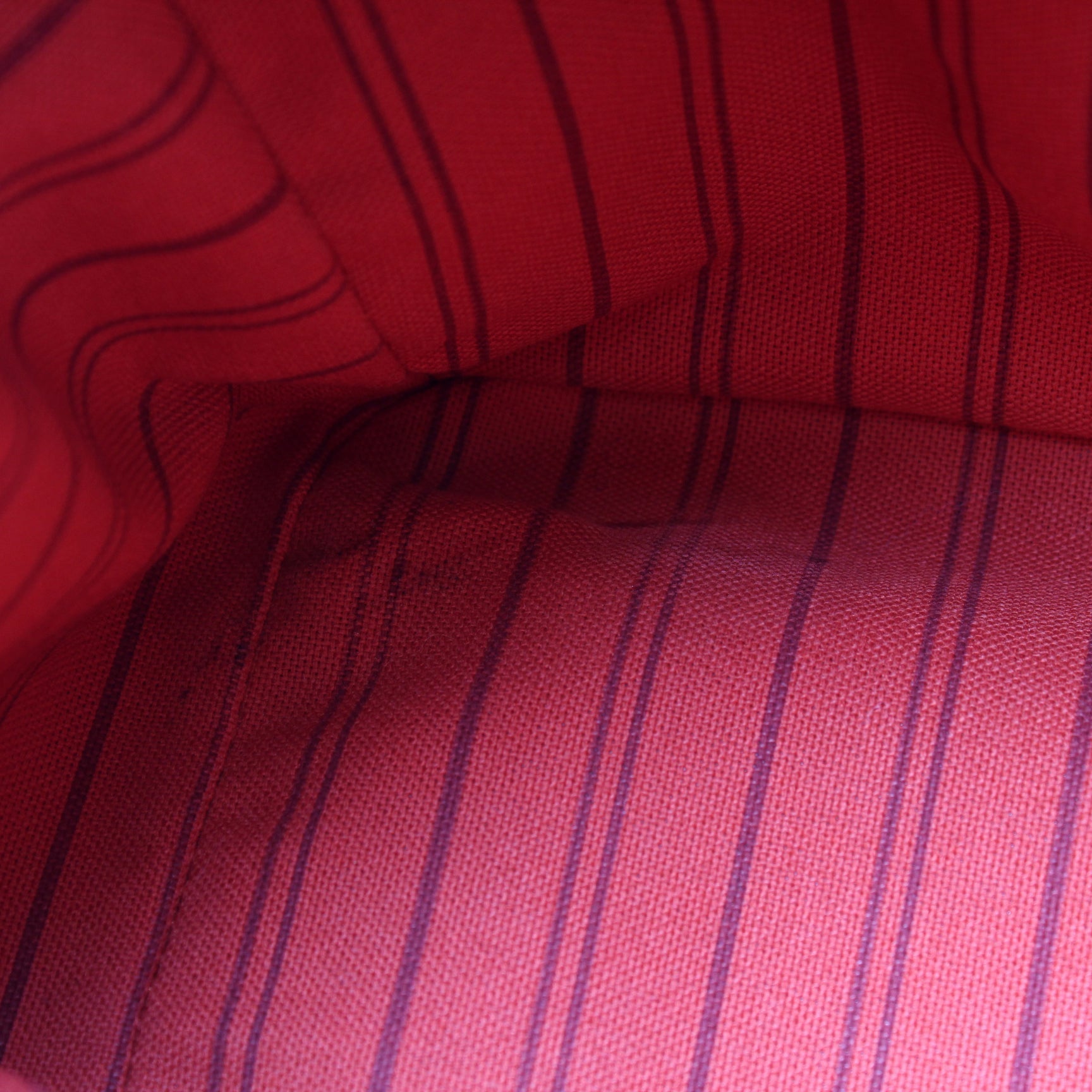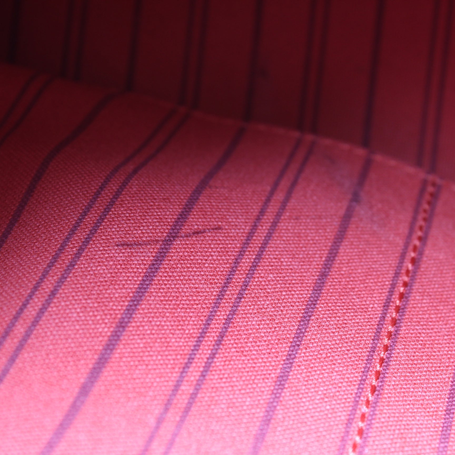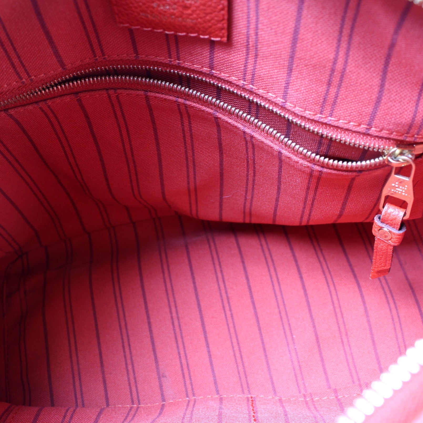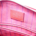 Interior: The interior is clean and free of rips or tears. The interior features one zipper and two open pockets. The interior shows minor stains.