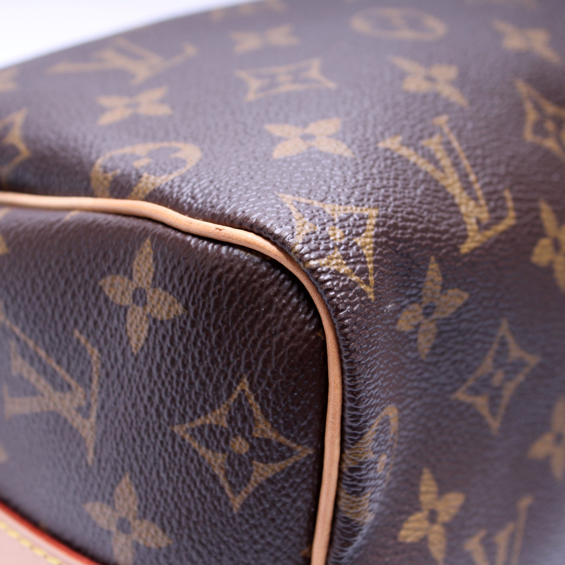This Louis Vuitton Speedy 25 Bandouliereis eye catching bag. The exterior is in the classic Louis Vuitton Monogram coated canvas.