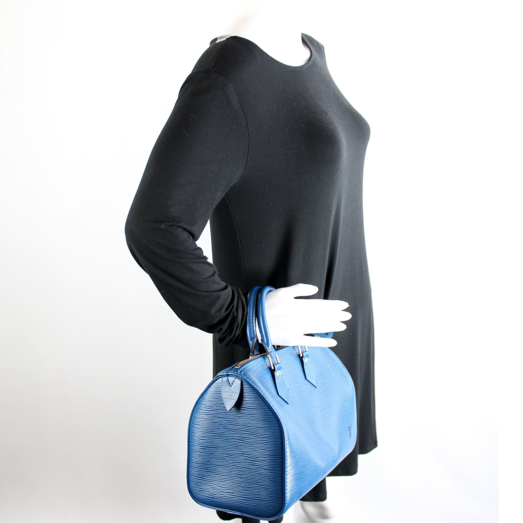 This Louis Vuitton Speedy 25is eye catching bag. The exterior is in the classic Louis Vuitton Epi Leather.