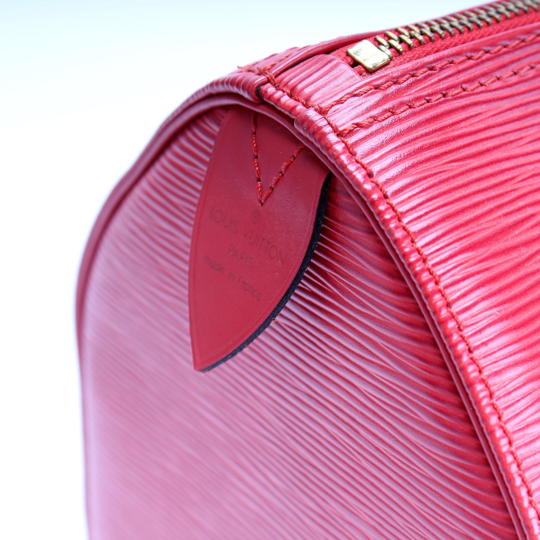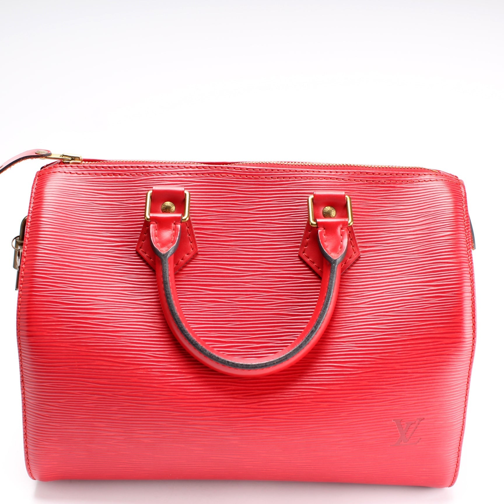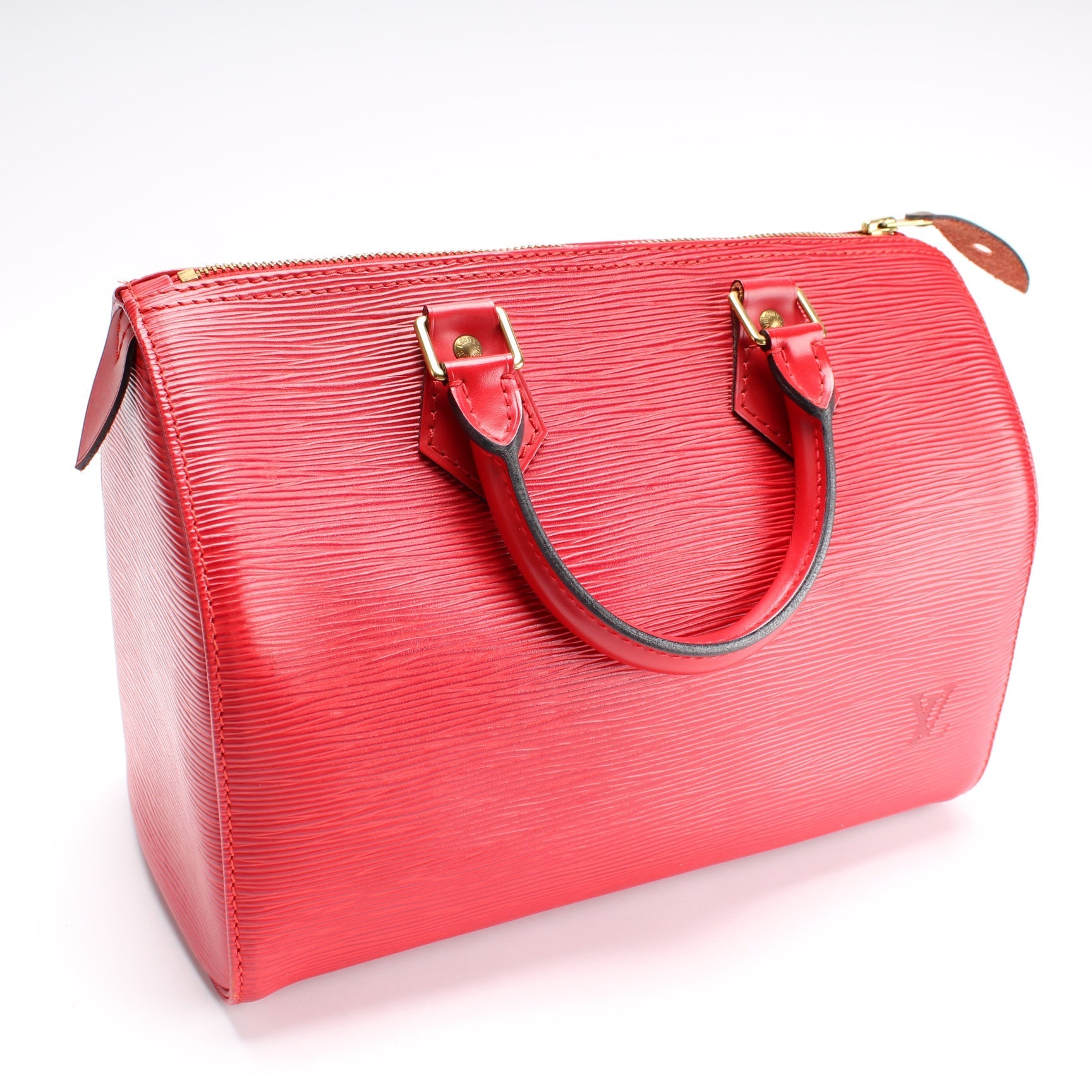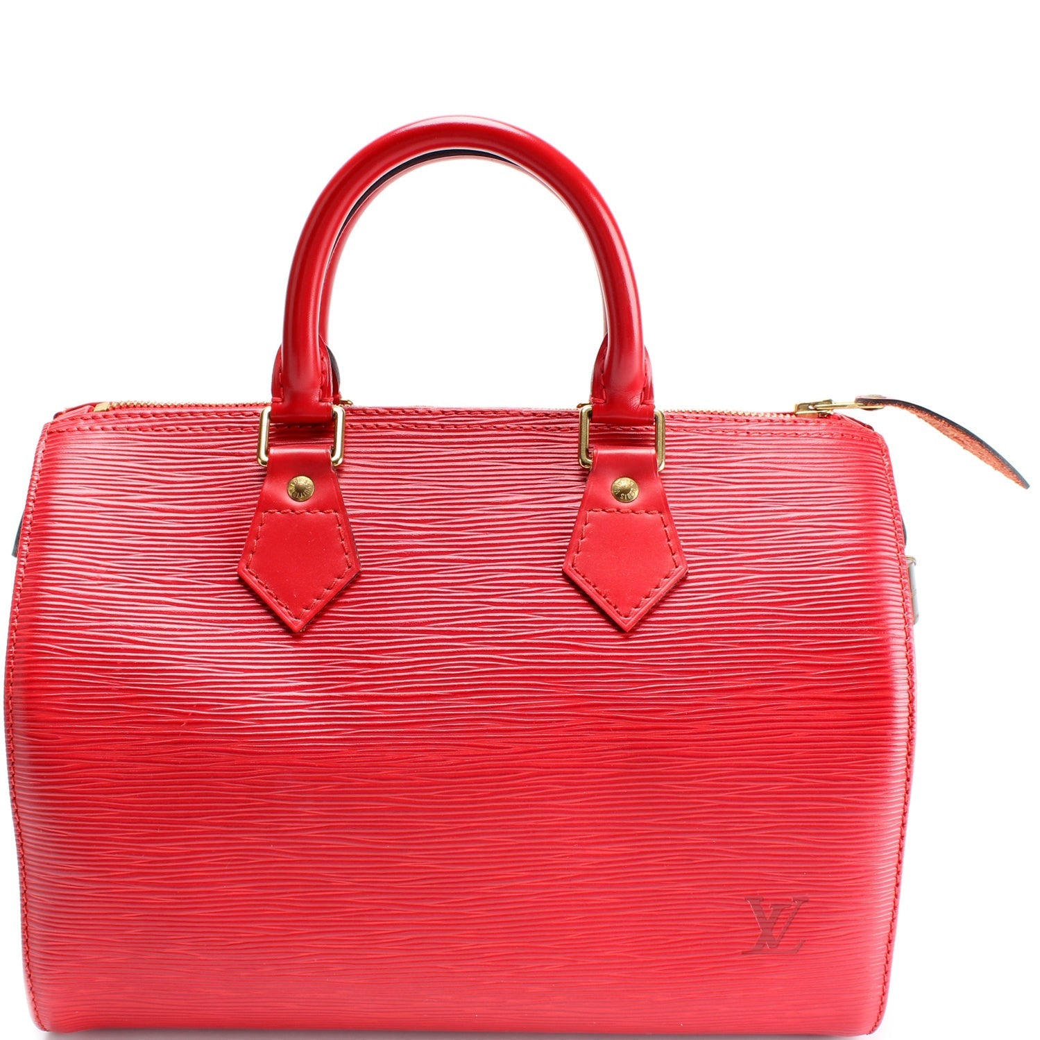This Louis Vuitton Speedy 25is eye catching bag. The exterior is in the classic Louis Vuitton Epi Leather.
