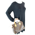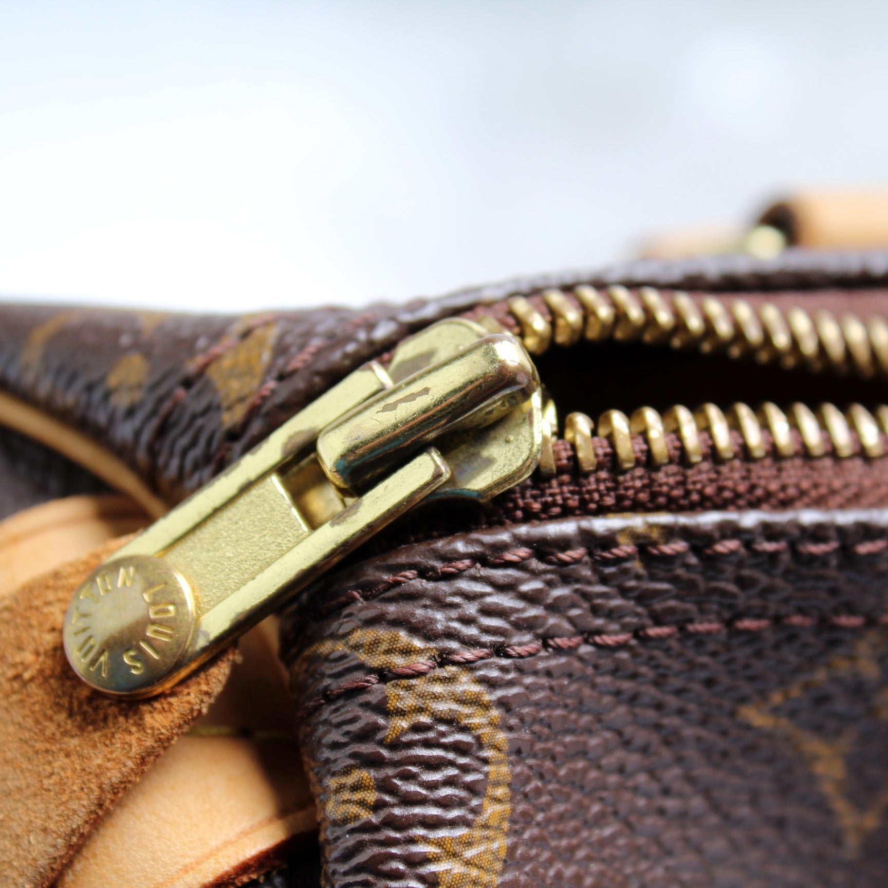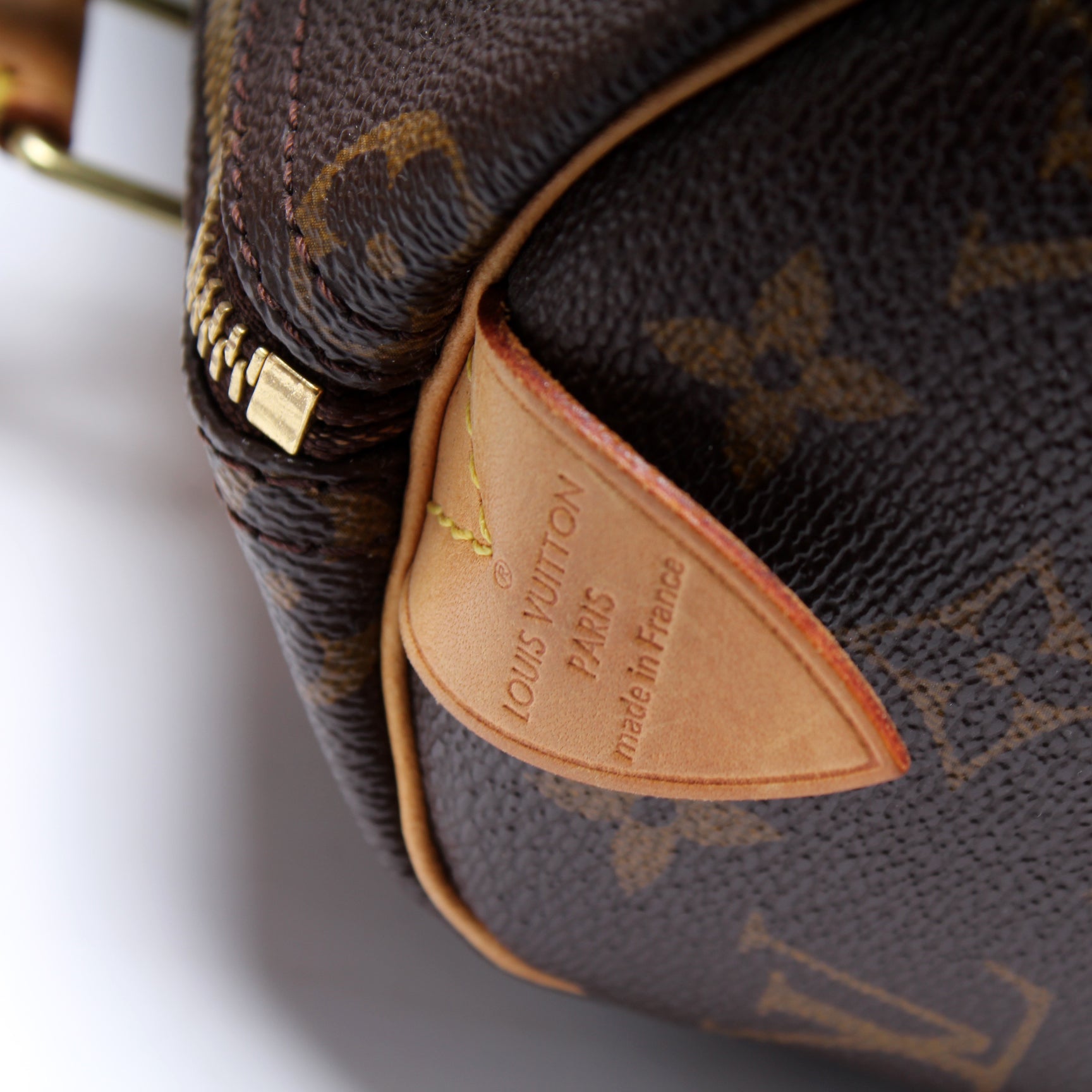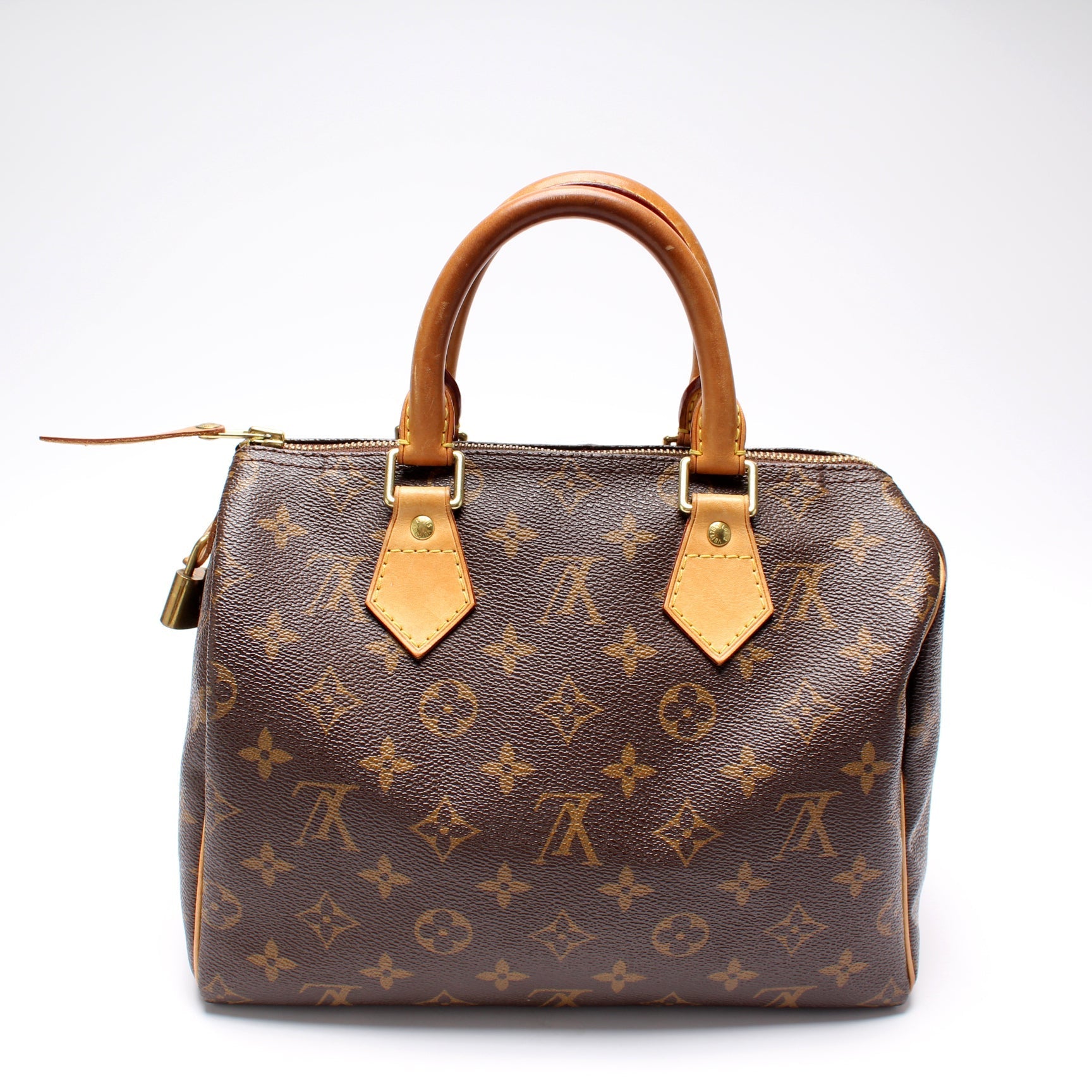 This Louis Vuitton Speedy 25is eye catching bag. The exterior is in the classic Louis Vuitton Monogram coated canvas.