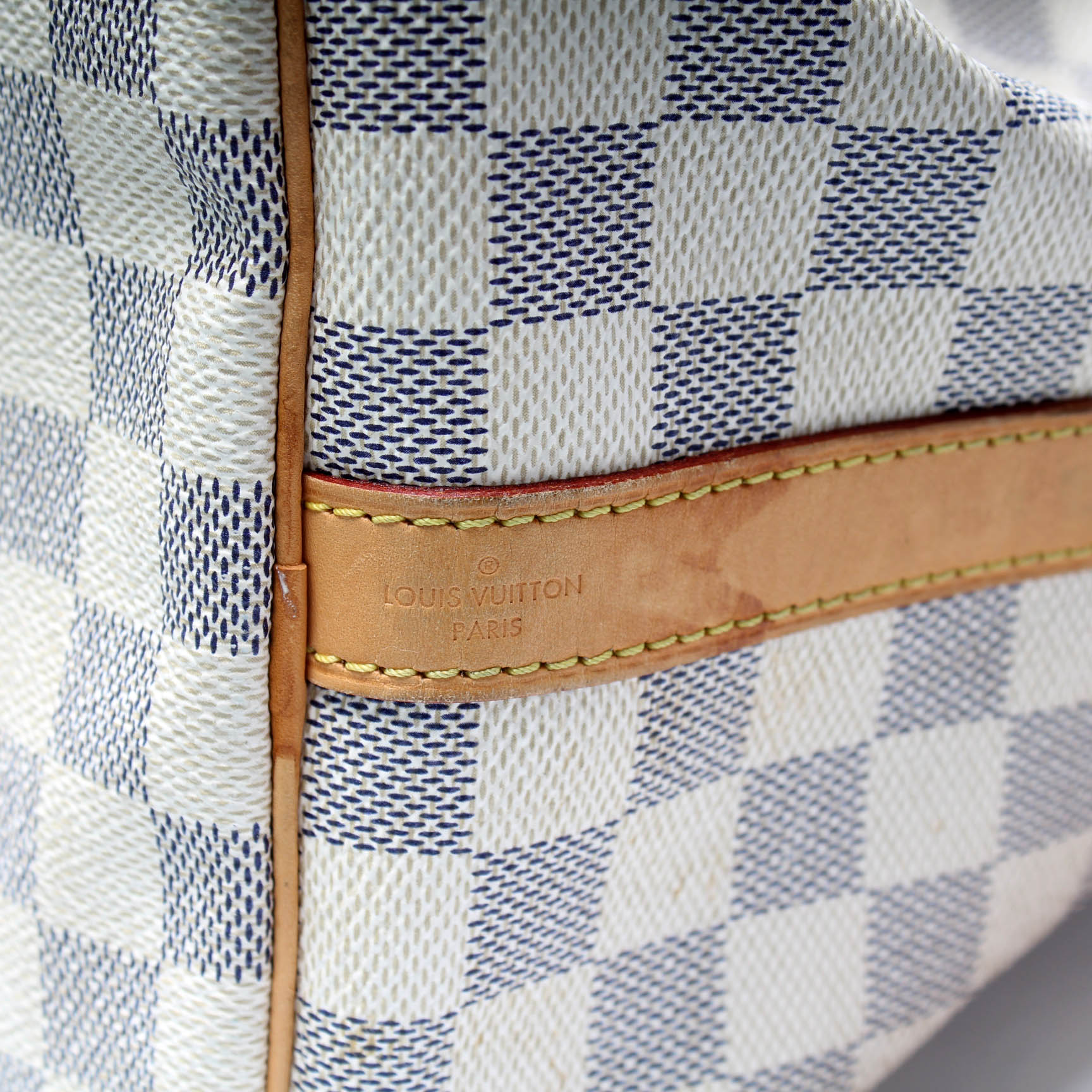 Handle: The leather handles have minor discoloration.