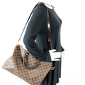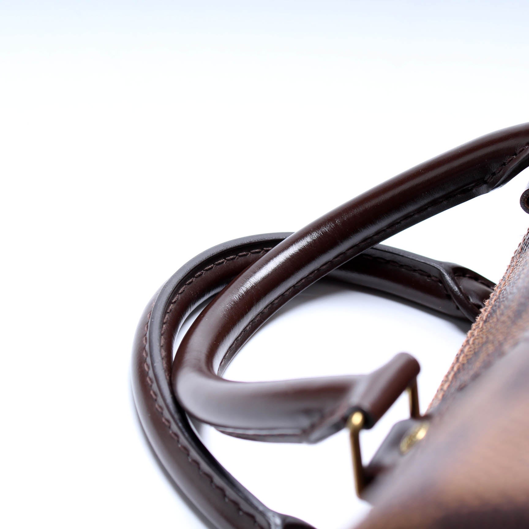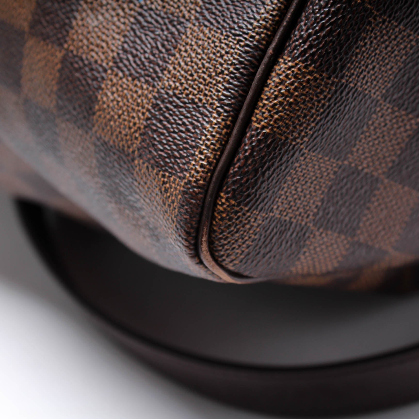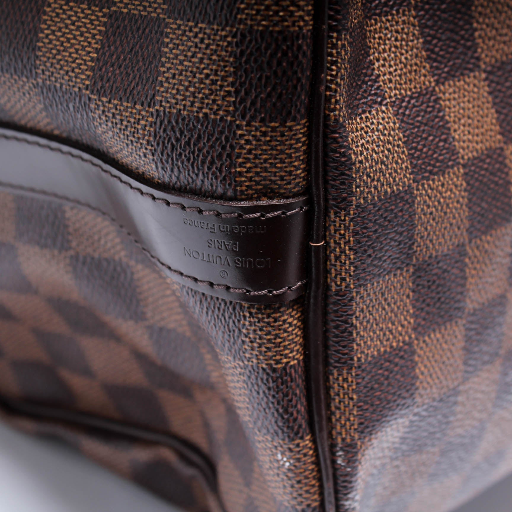 This Louis Vuitton Speedy 30 Bandouliereis eye catching bag. The exterior is in the classic Louis Vuitton Damier Ebene coated canvas.