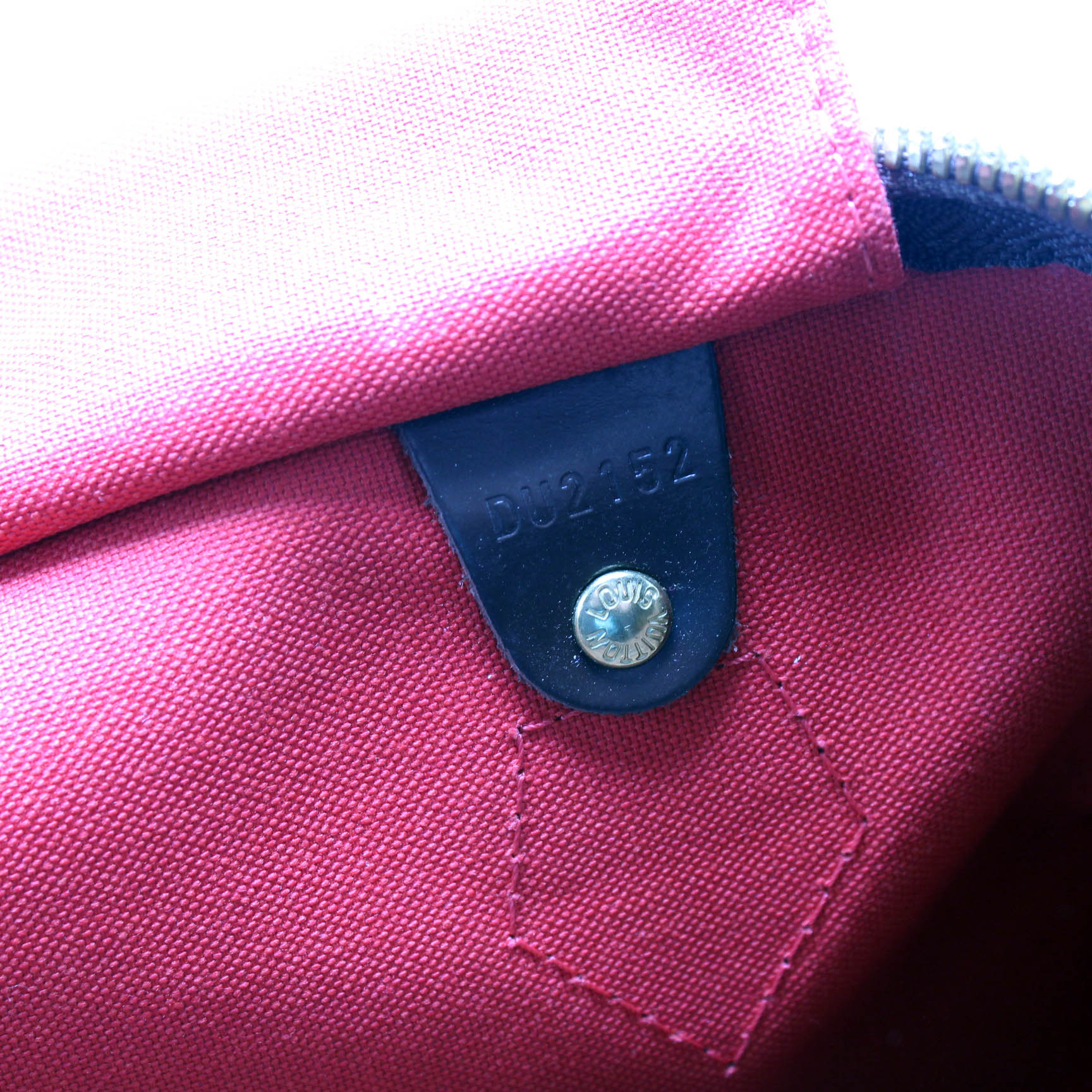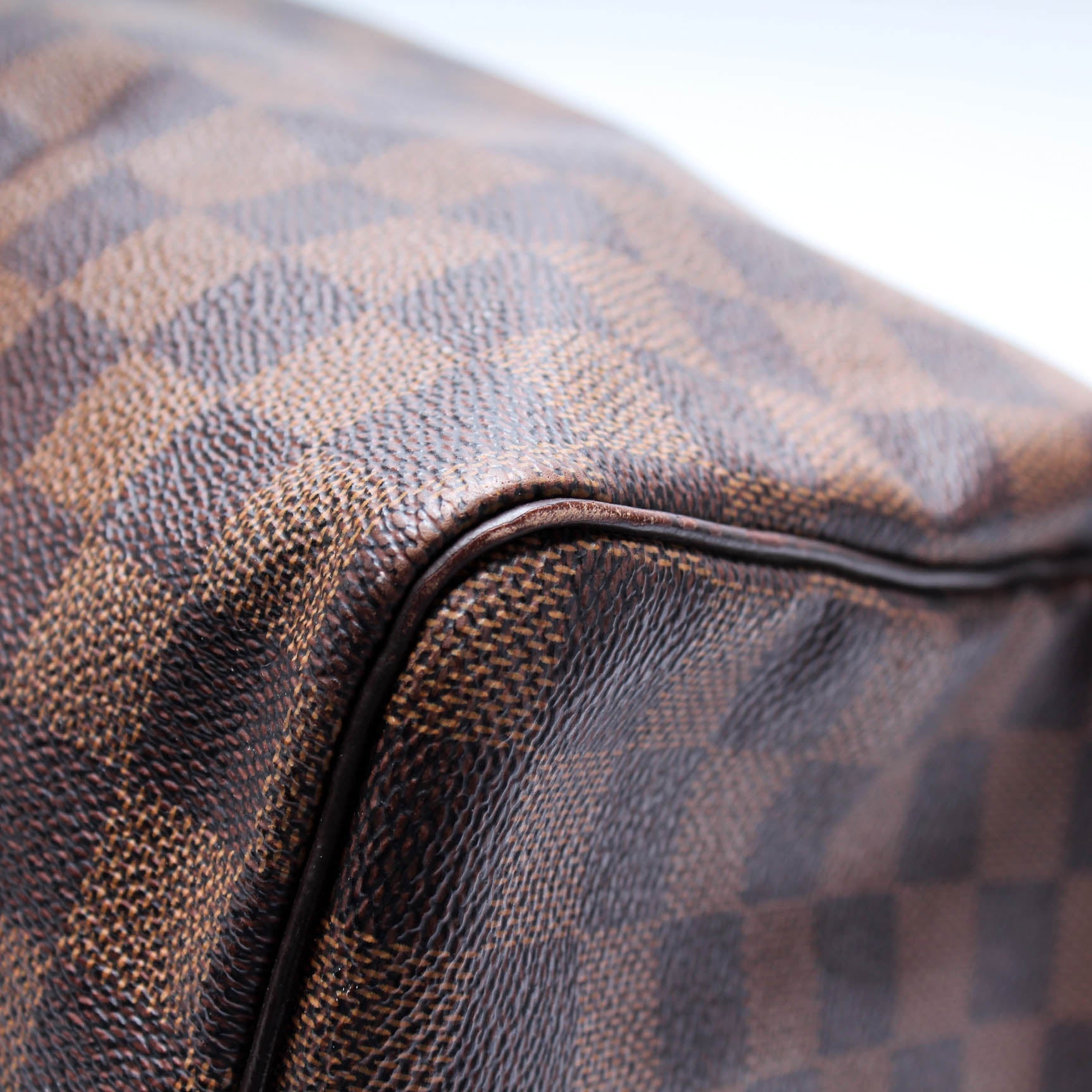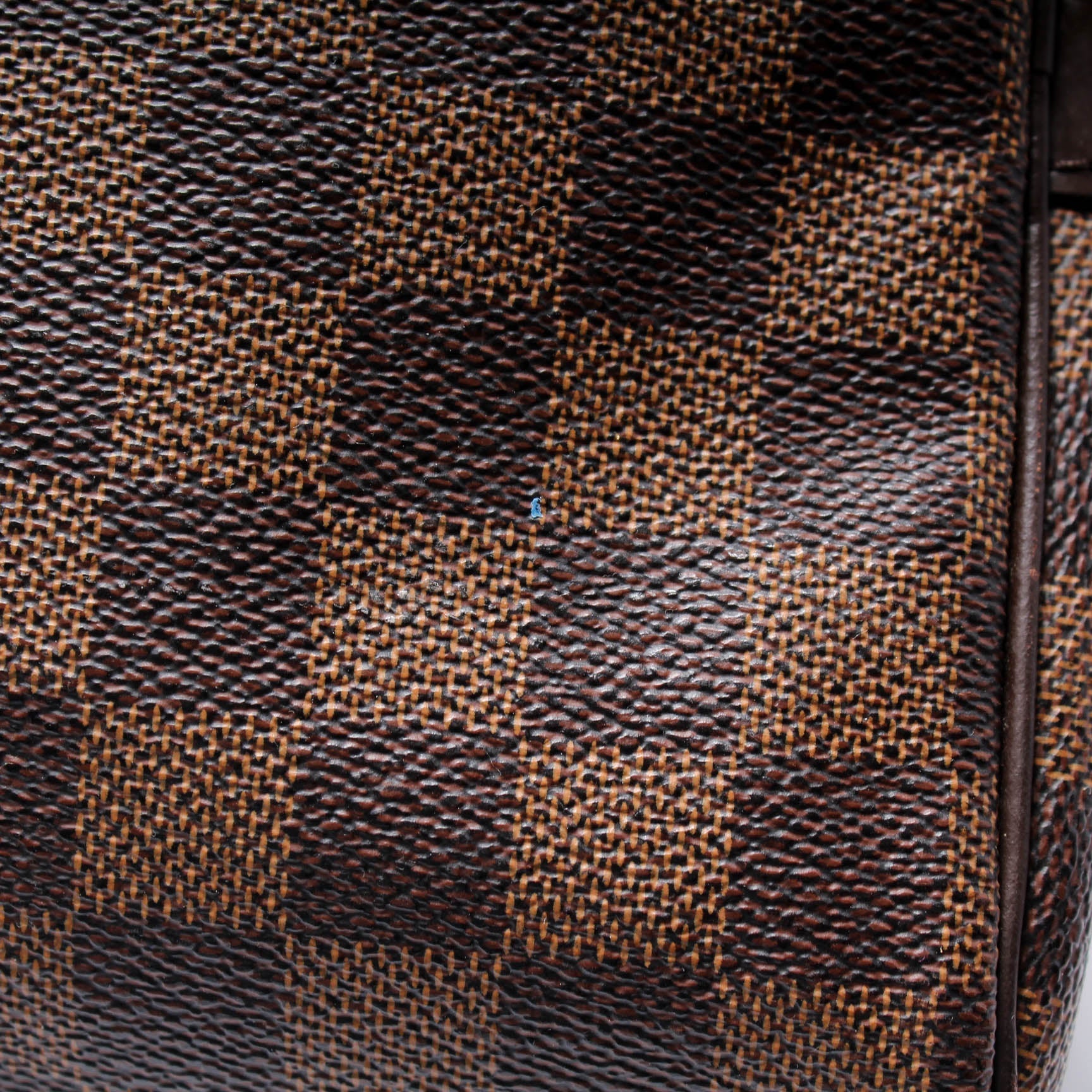 Exterior: The exterior canvas is free of any cracking, there are light marks throughout. The corners show heavy rubbing. The leather trim shows minor wear throughout.