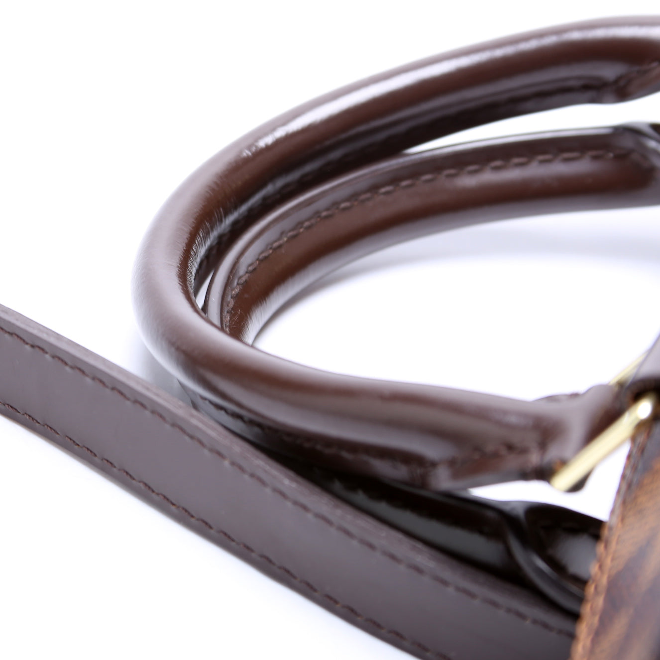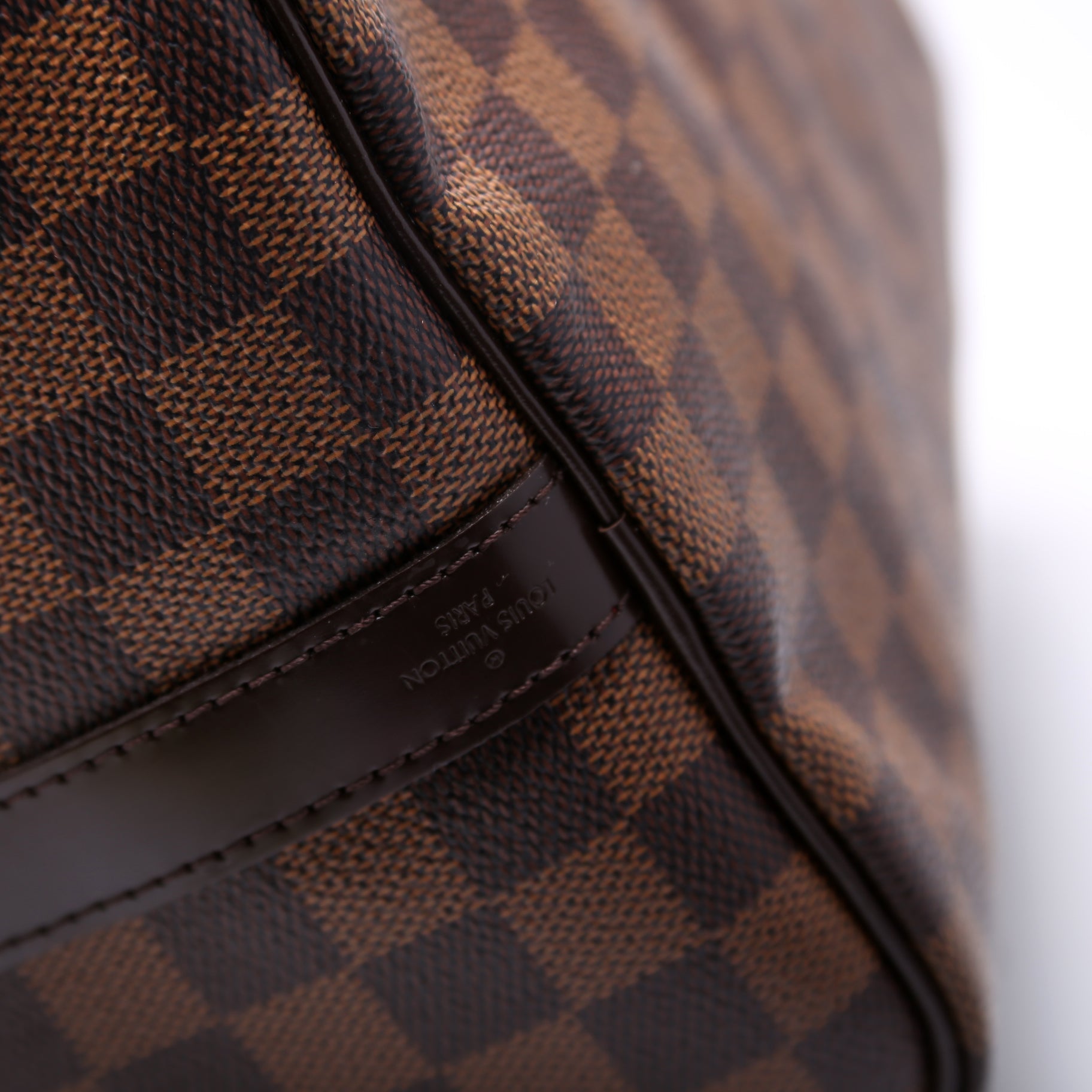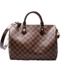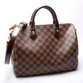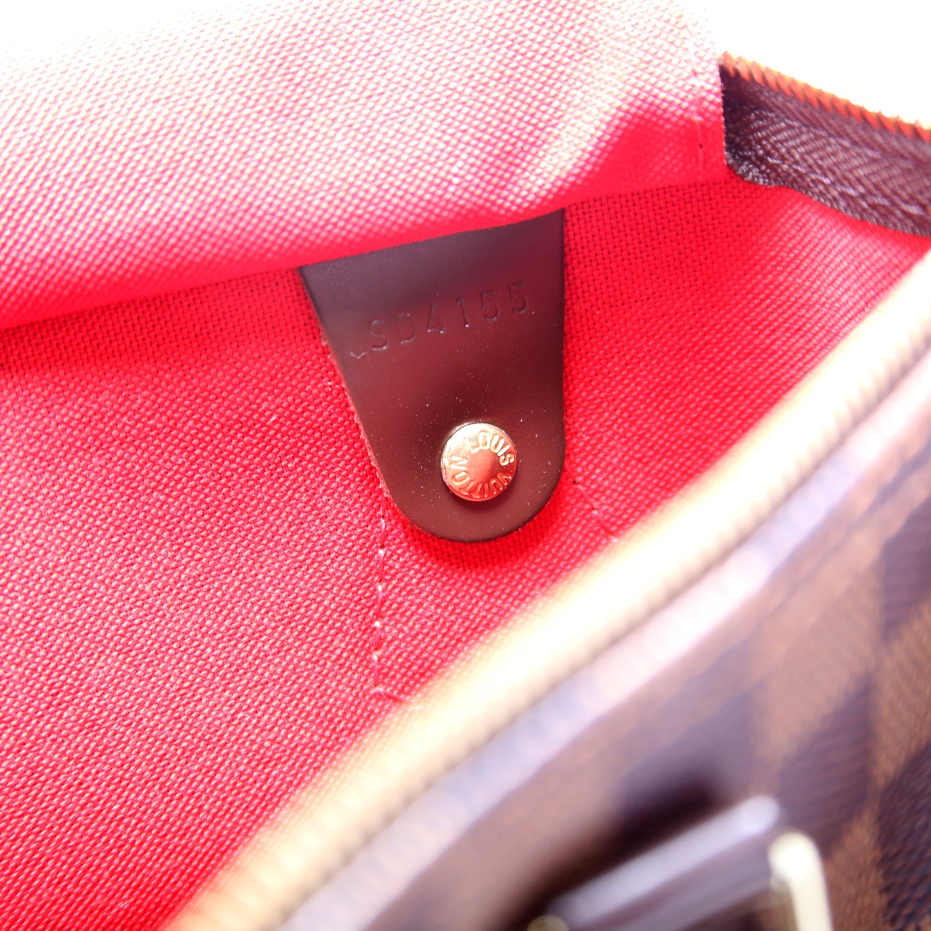 This Louis Vuitton Speedy 30 Bandouliereis eye catching bag. The exterior is in the classic Damier Ebene coated canvas.