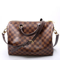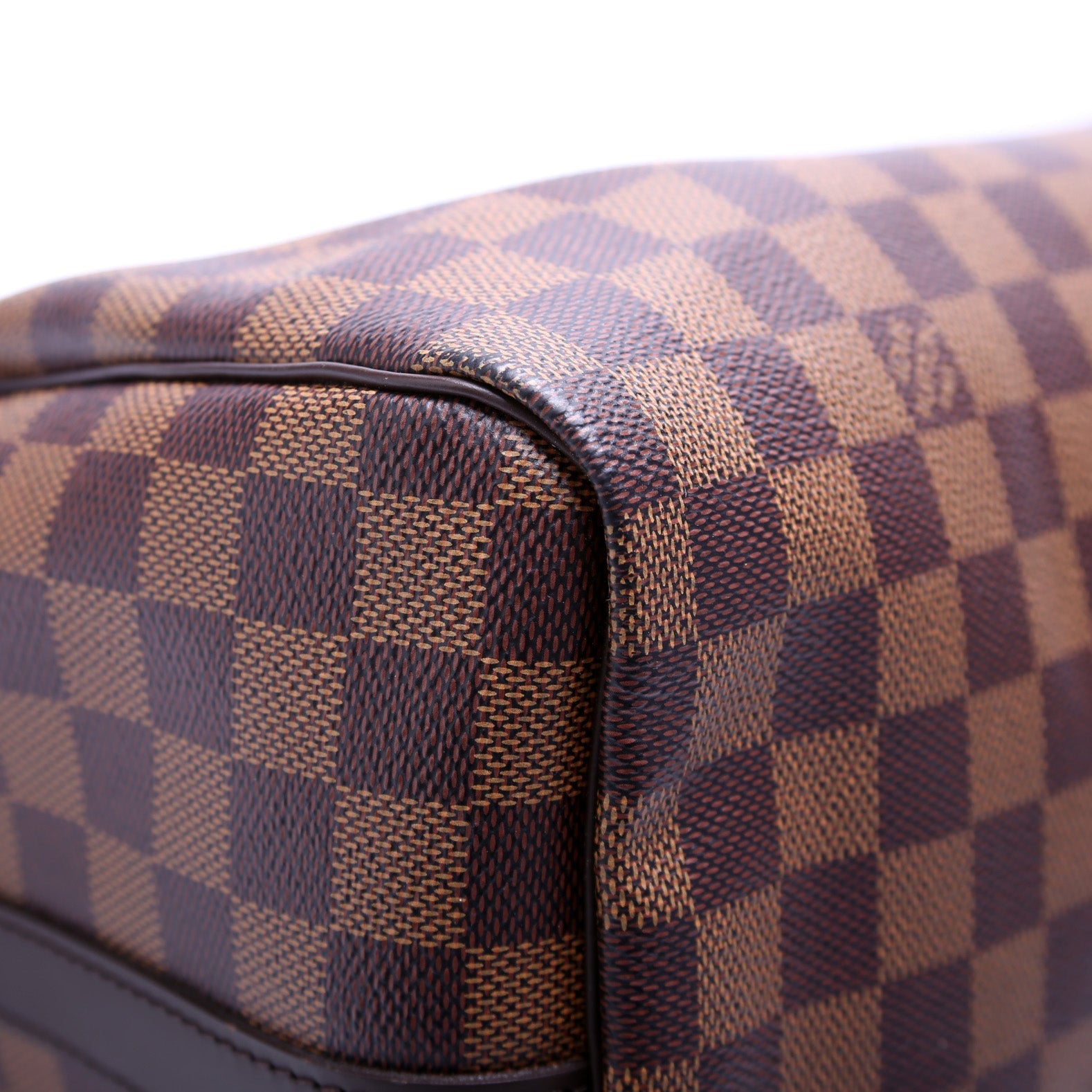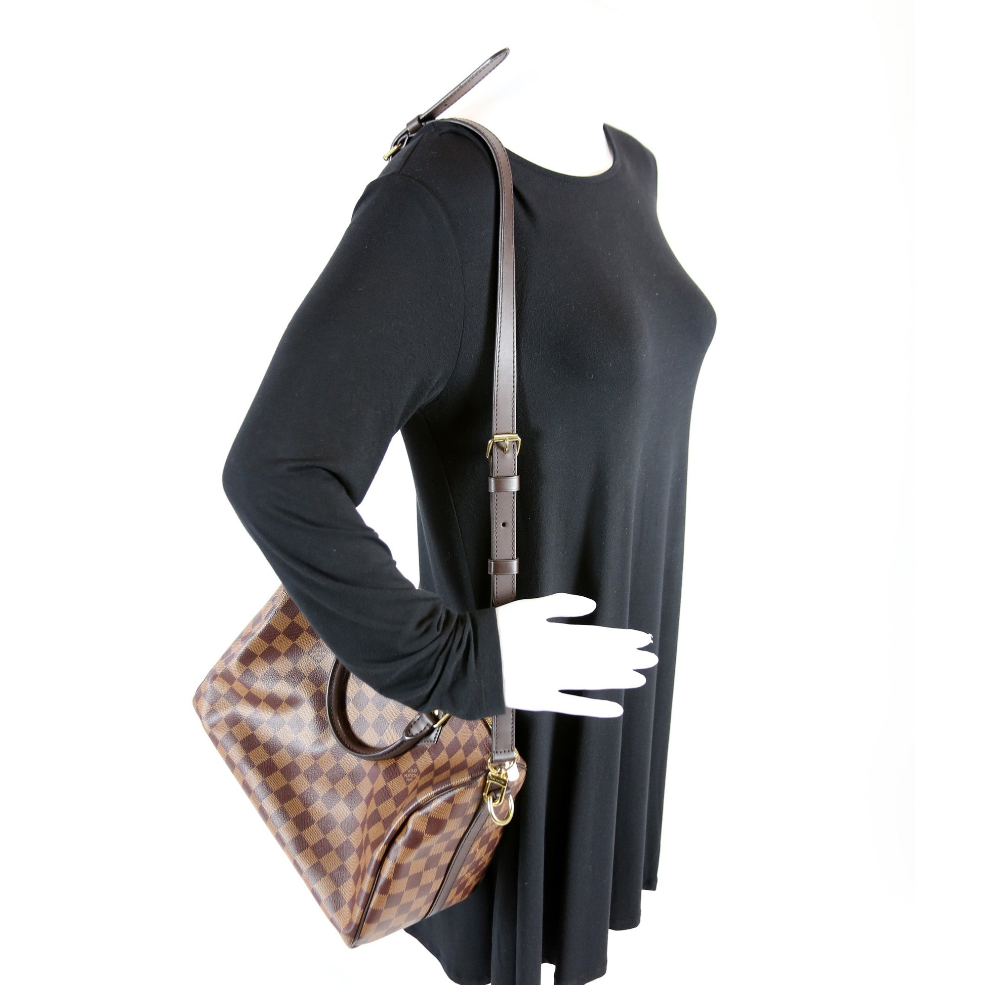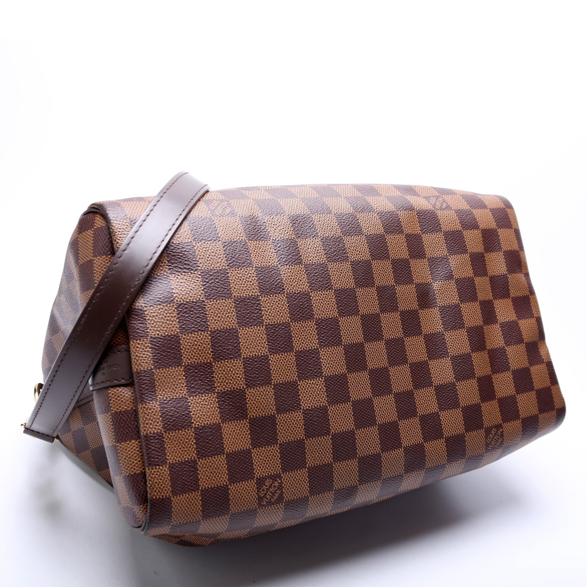 This Louis Vuitton Speedy 30is eye catching bag. The exterior is in the classic Louis Vuitton Damier Ebene coated canvas.